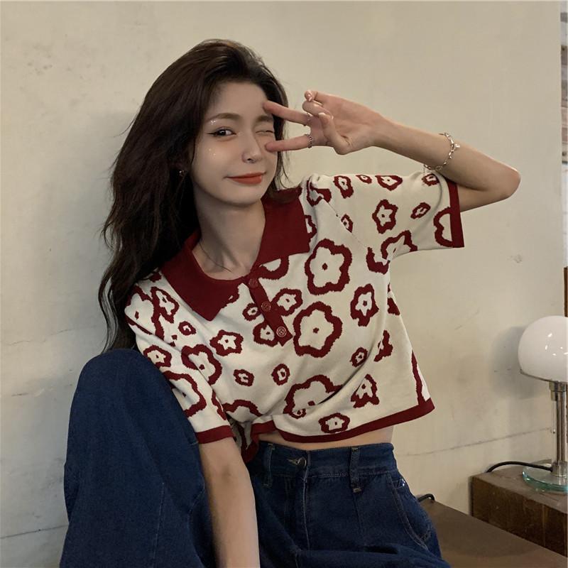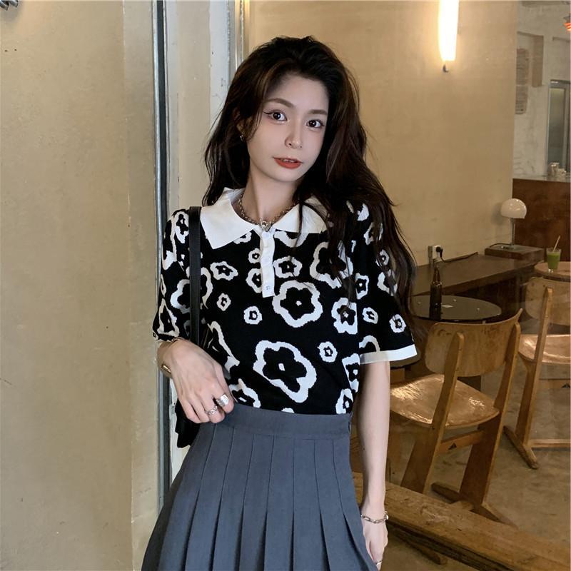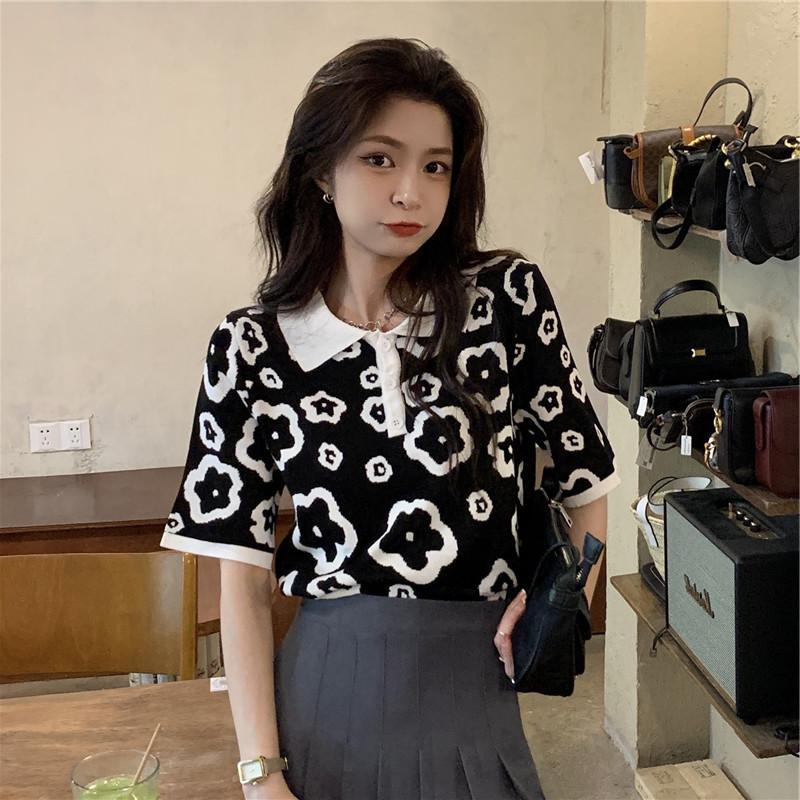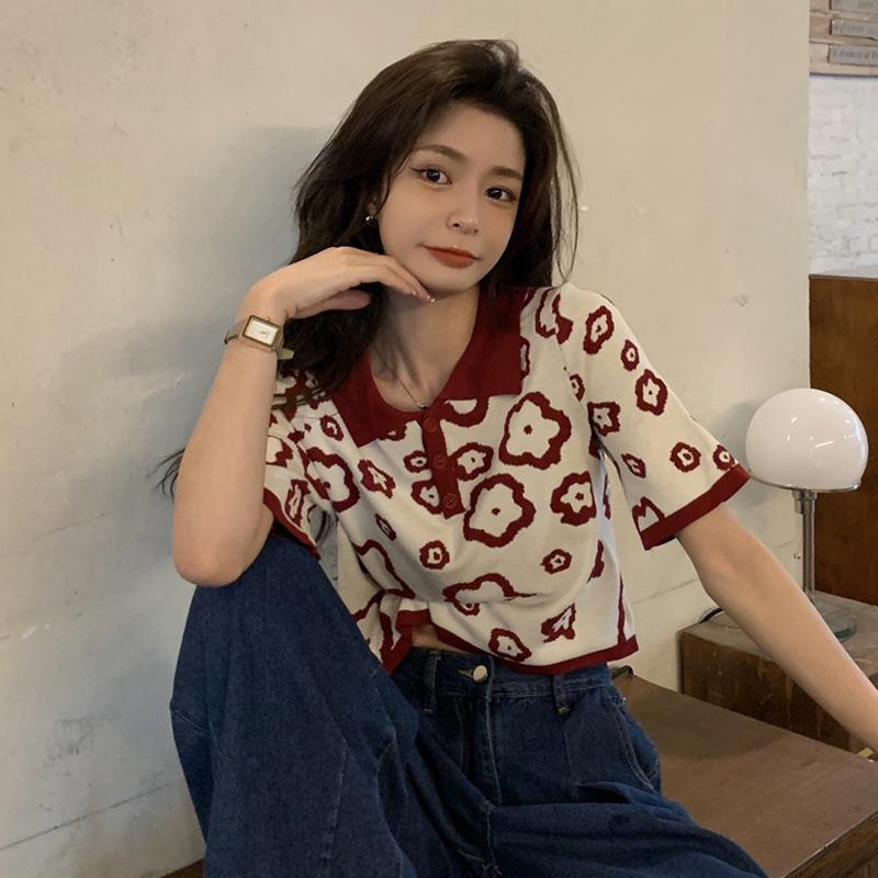 Polo de Verano Estilo Comercio Exterior, Camiseta de Fondo de Punto Estilo Suave para Mujer, Top Delgado de Manga Corta Holgado para Uso Exterior