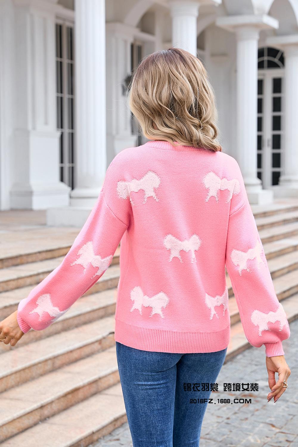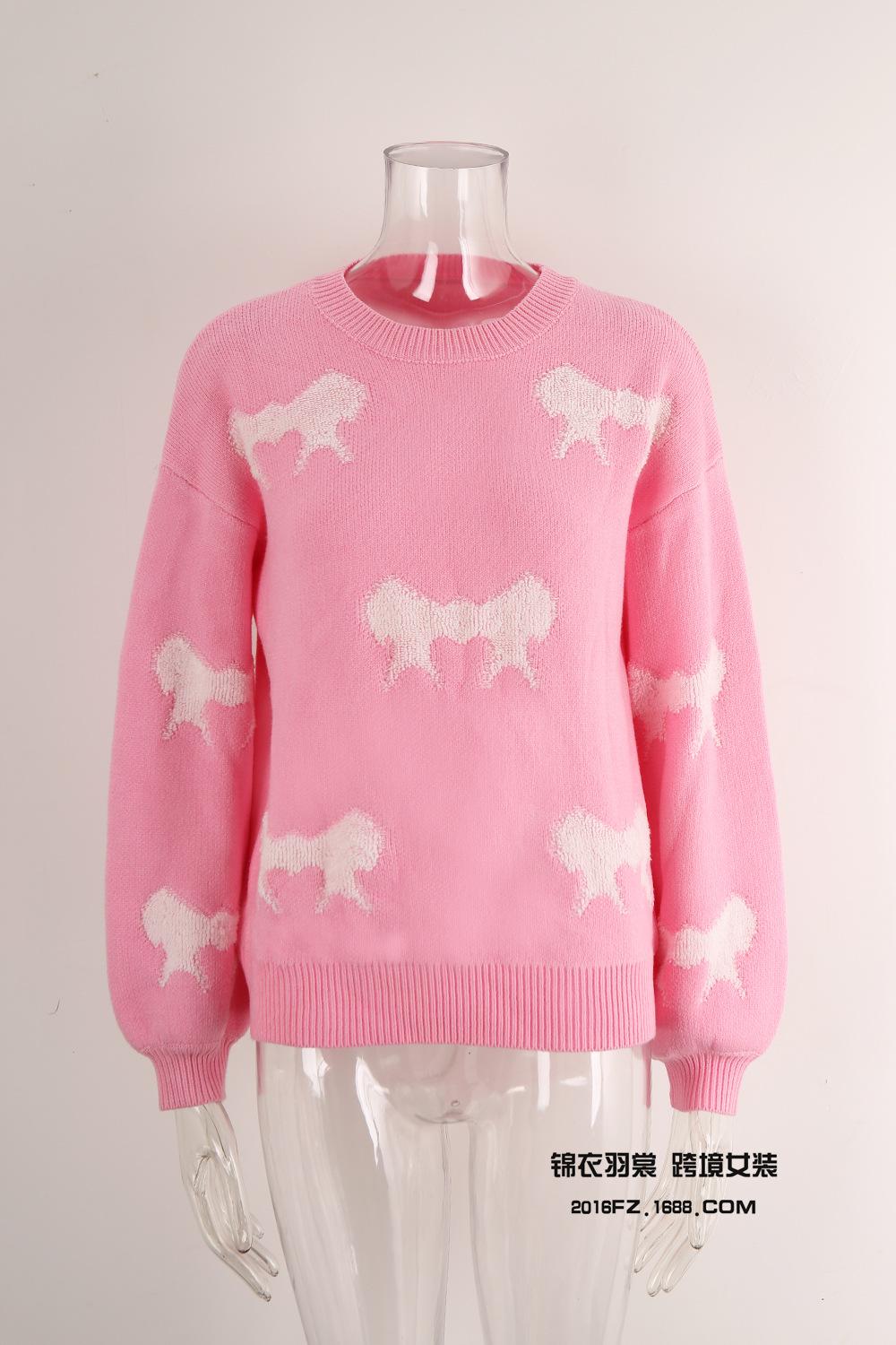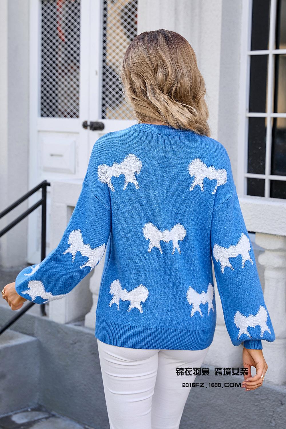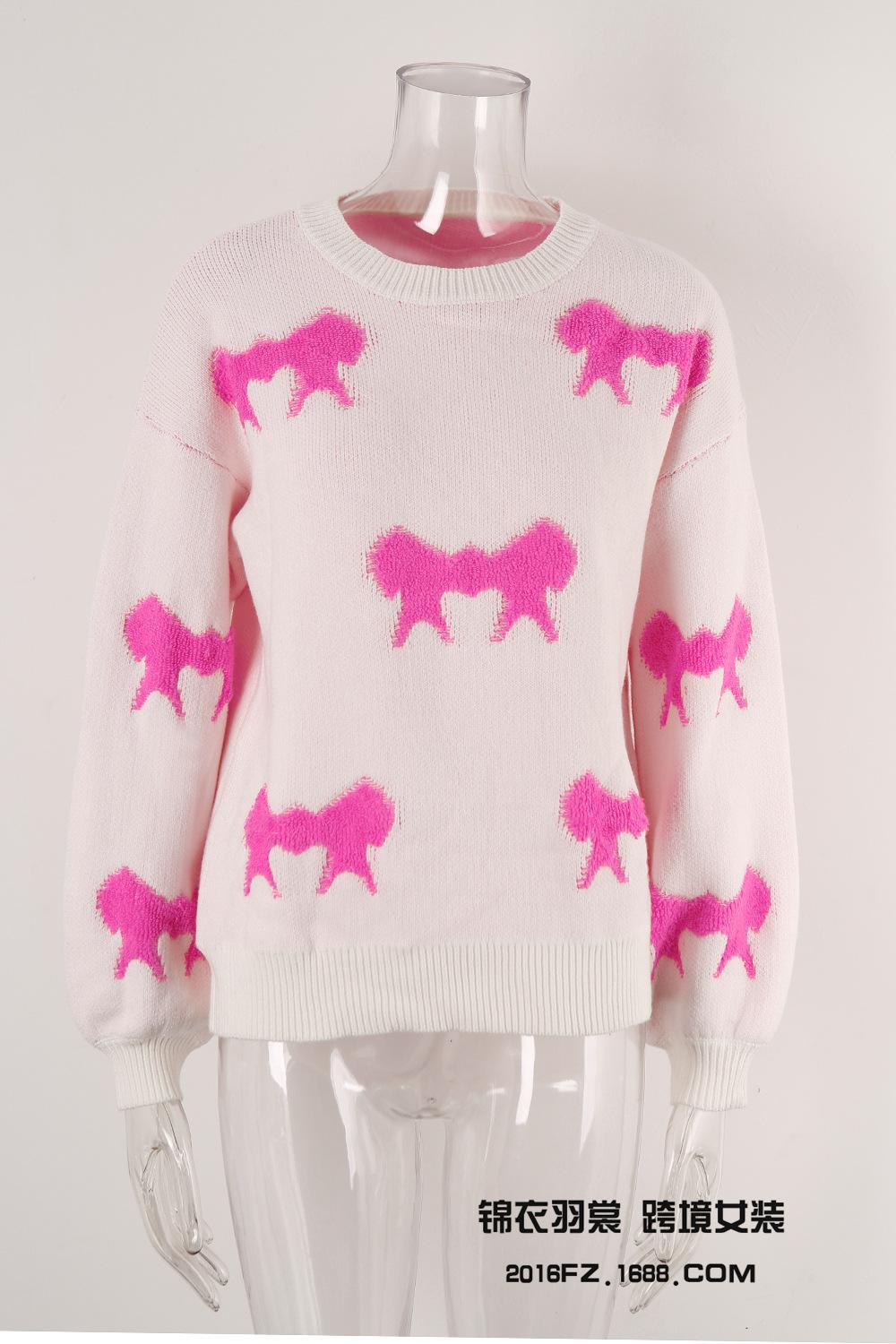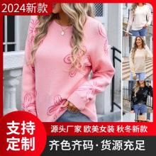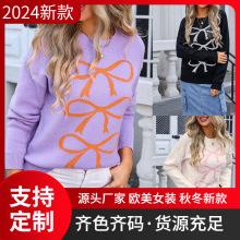 2025 Invierno Nuevo Ropa Europea y Americana Exportación Popular Amazon Cuello Redondo Manga Larga Tejido de Punto Lazo Tejido de Punto Trendy