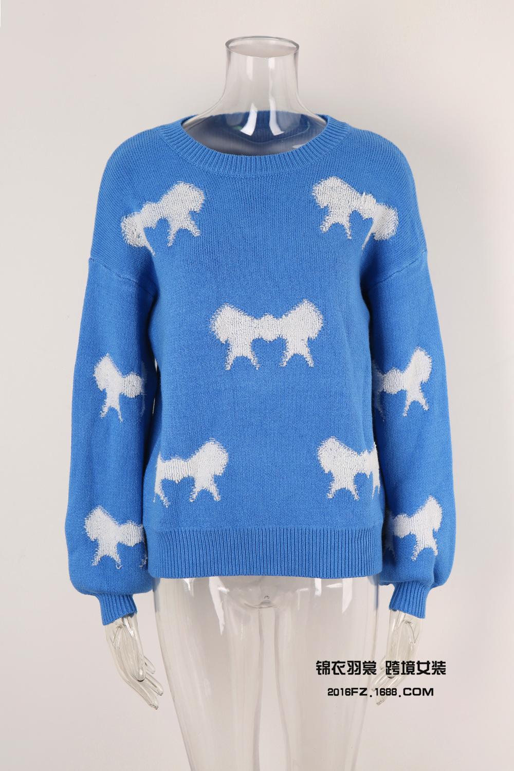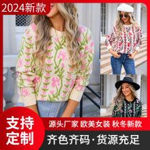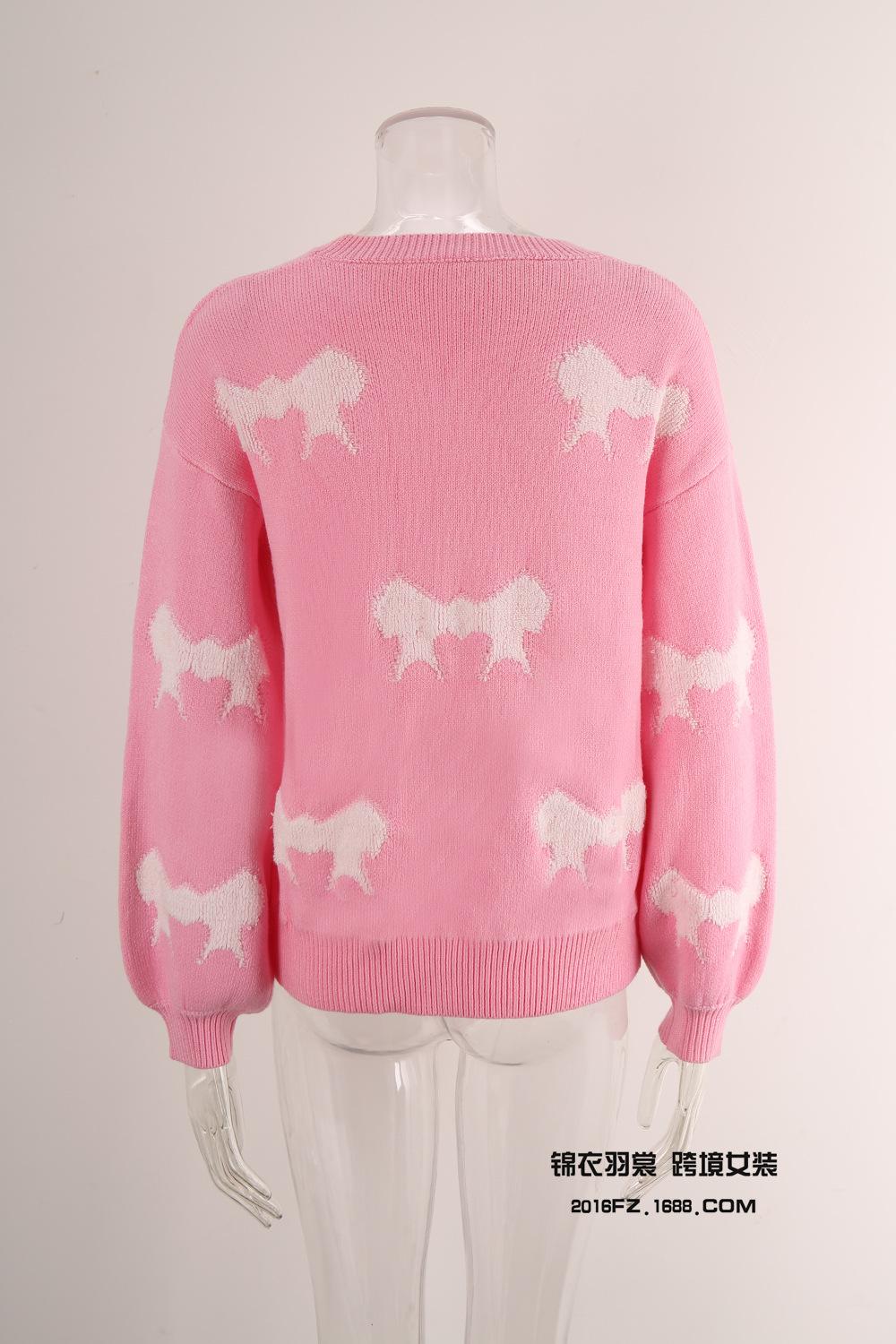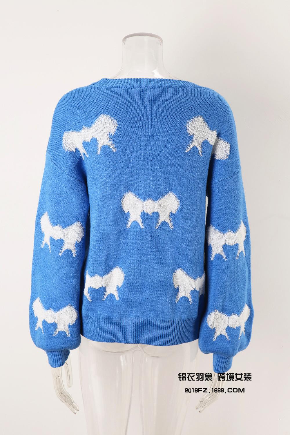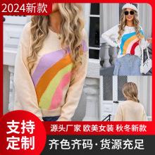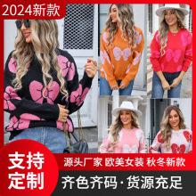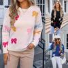 2025 Invierno Nuevo Ropa Europea y Americana Exportación Popular Amazon Cuello Redondo Manga Larga Tejido de Punto Lazo Tejido de Punto Trendy
