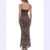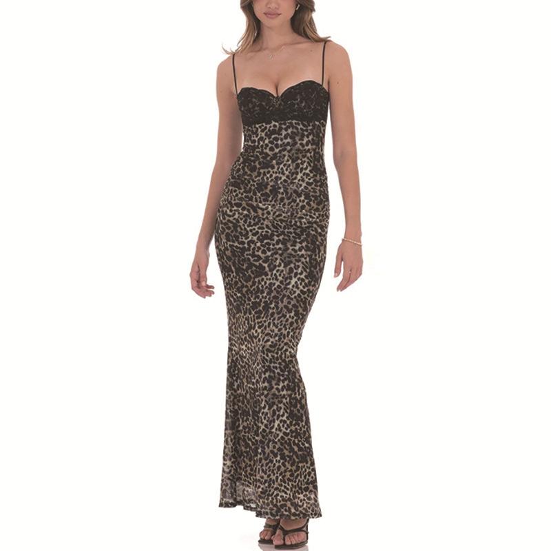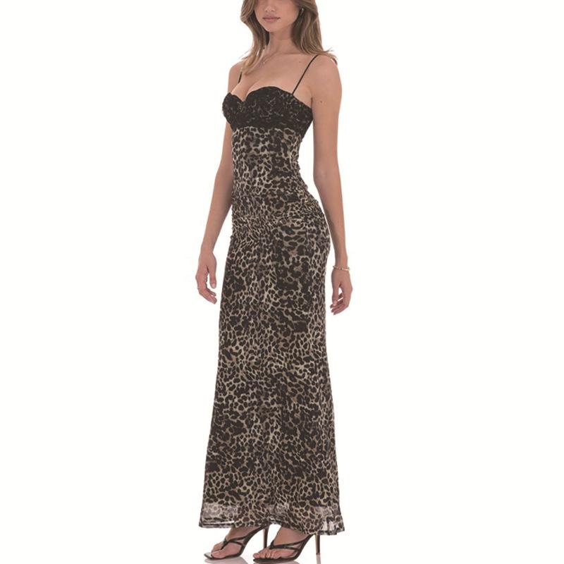 Vestido ajustado de cintura alta con estampado de leopardo y costuras de encaje sexy para mujer, estilo europeo y americano transfronterizo 2025