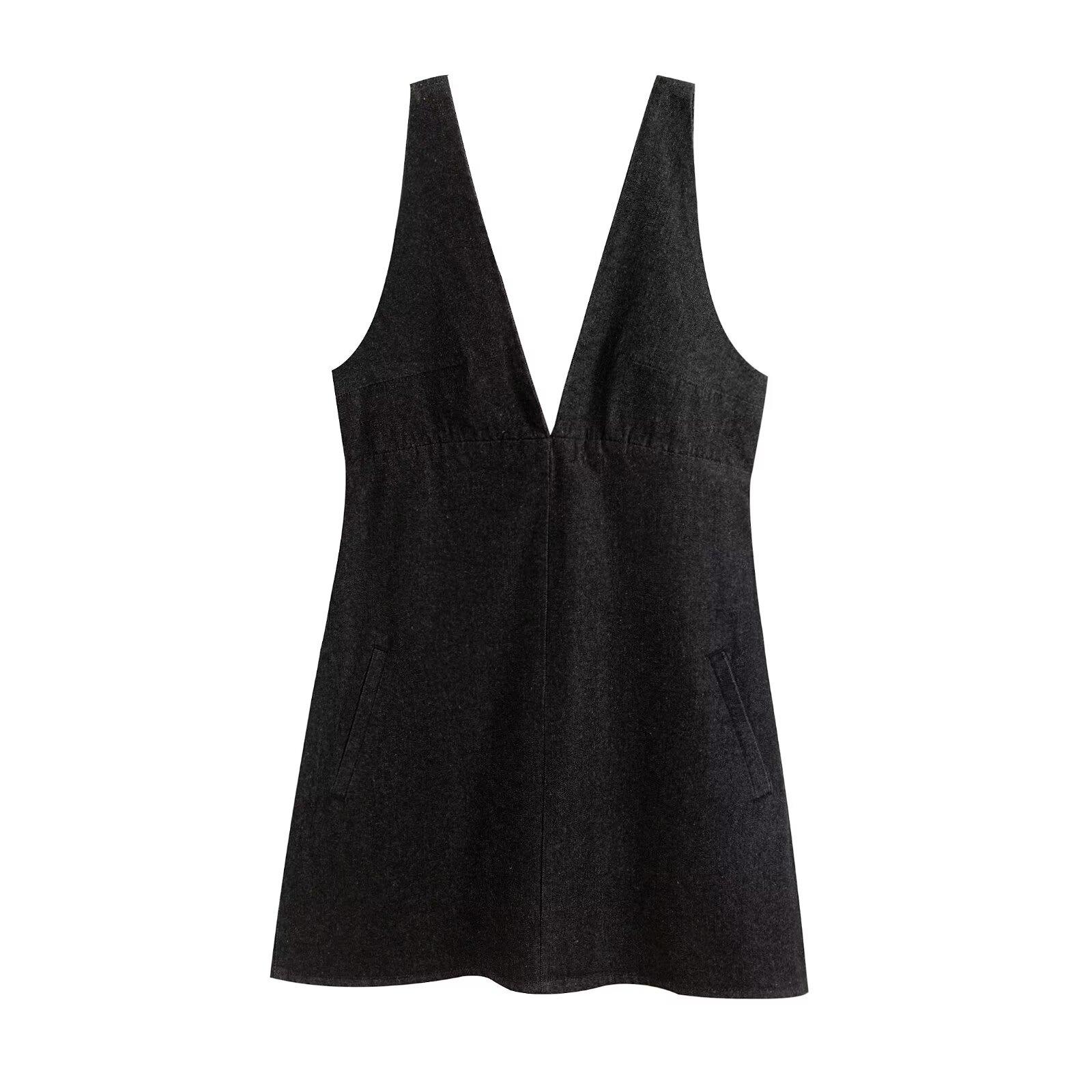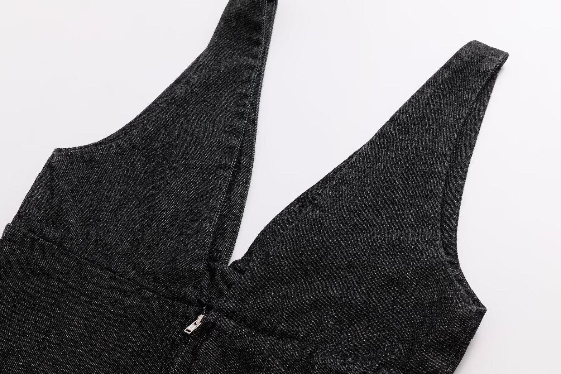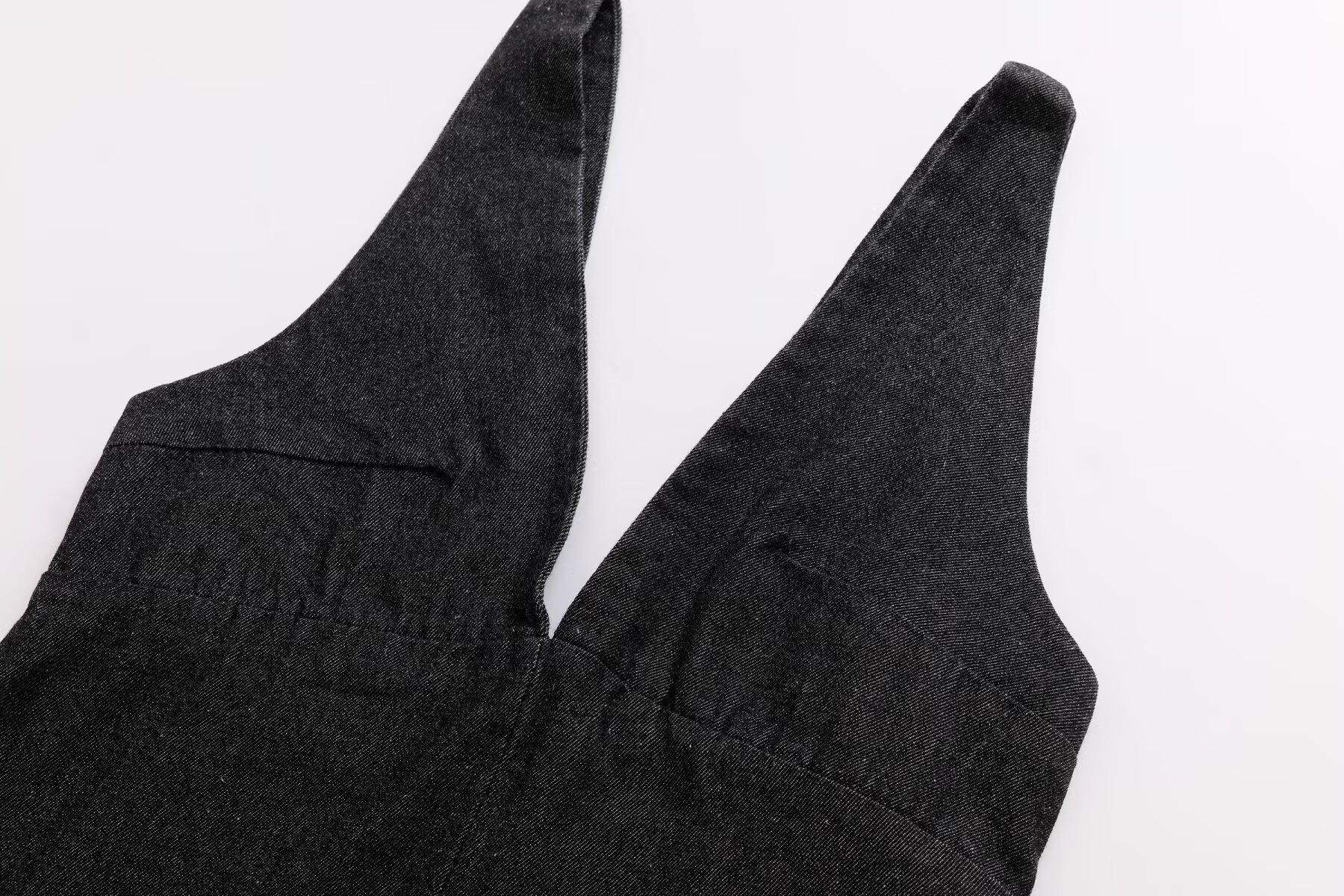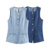 2025 primavera nuevo ropa de mujer transfronteriza europea y americana moda callejera cuello en V sin espalda falda chaleco de mezclilla w015 25295