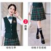 Women's blue vest + overskirt, Women's green vest + plaid skirt, Women's blue vest + overskirt + shirt, Women'...