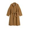 Abrigo de Lana Camel de Doble Vista para Mujer Invierno 2025 Pequeño Mediano Largo Estilo Holgado Perezoso Cuello Mao