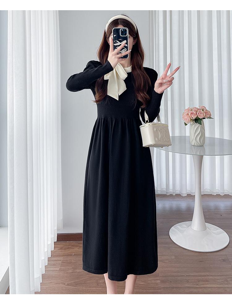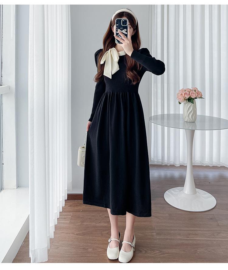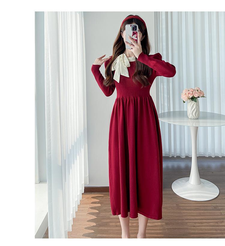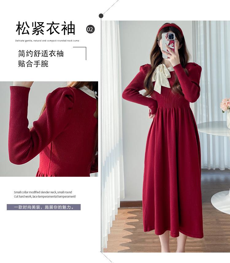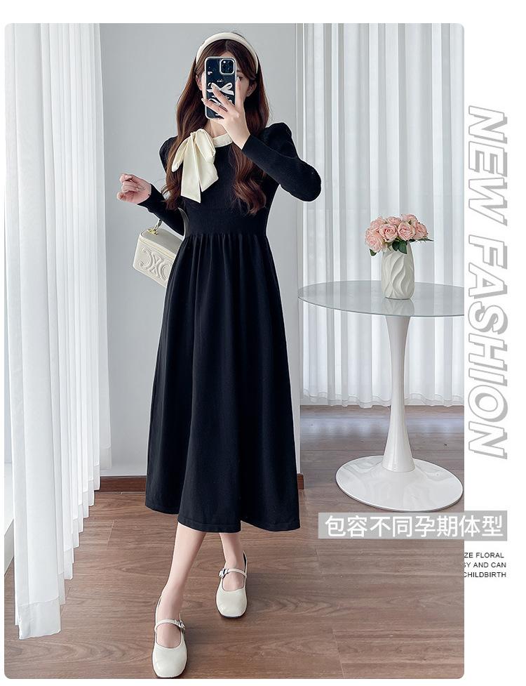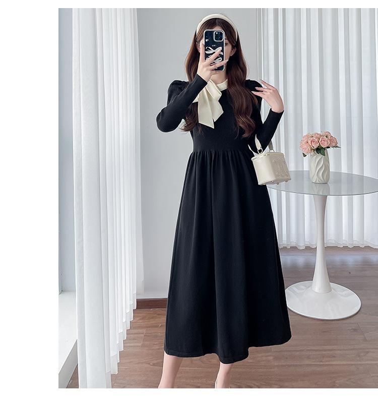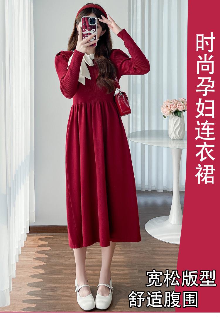 Ropa de Maternidad Otoño e Invierno 2024 Nuevo Suéter Versátil Tejido Dulce que Reduce la Edad Vestido de Maternidad Suelto de Largo Medio