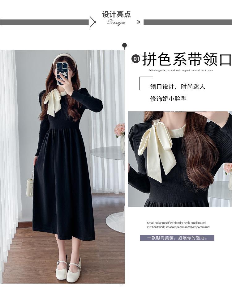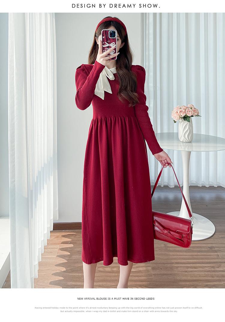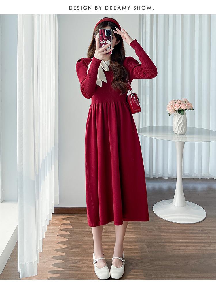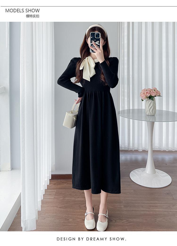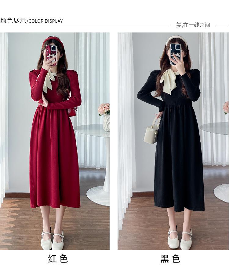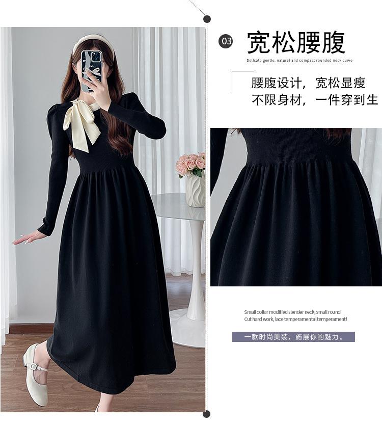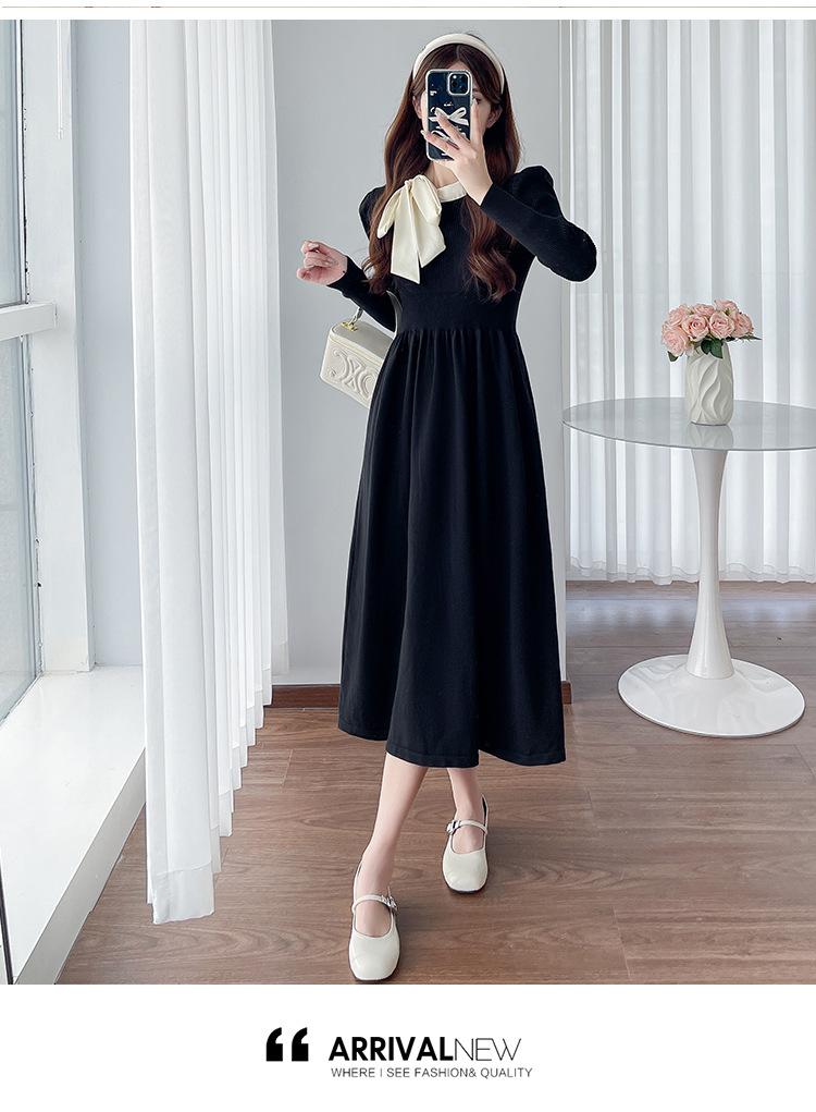 Ropa de Maternidad Otoño e Invierno 2024 Nuevo Suéter Versátil Tejido Dulce que Reduce la Edad Vestido de Maternidad Suelto de Largo Medio