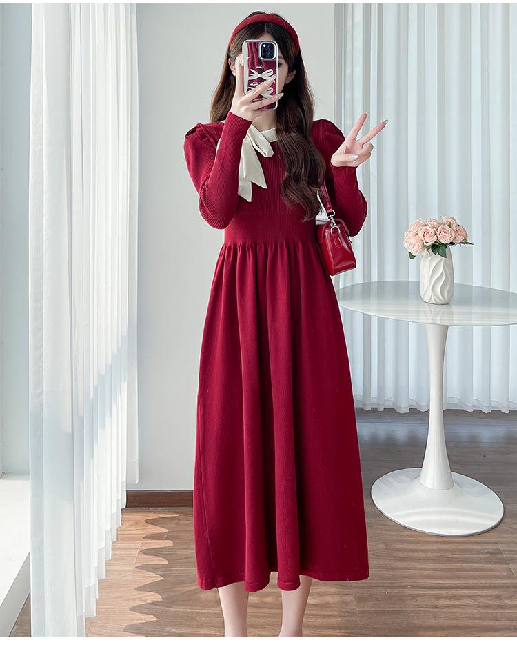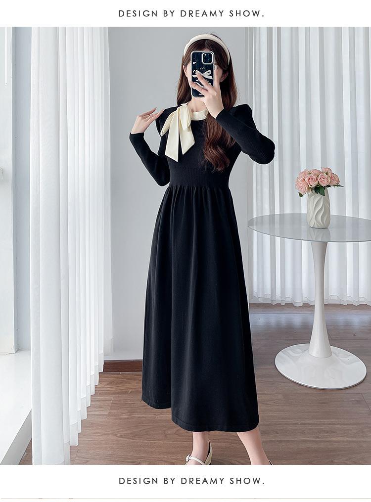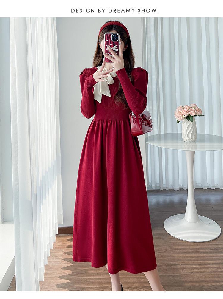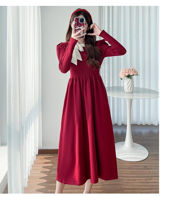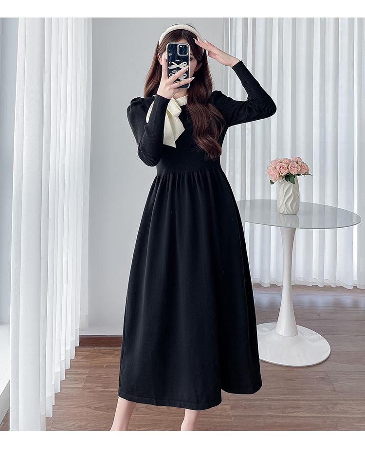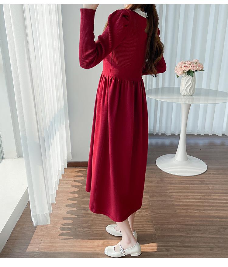 Ropa de Maternidad Otoño e Invierno 2024 Nuevo Suéter Versátil Tejido Dulce que Reduce la Edad Vestido de Maternidad Suelto de Largo Medio