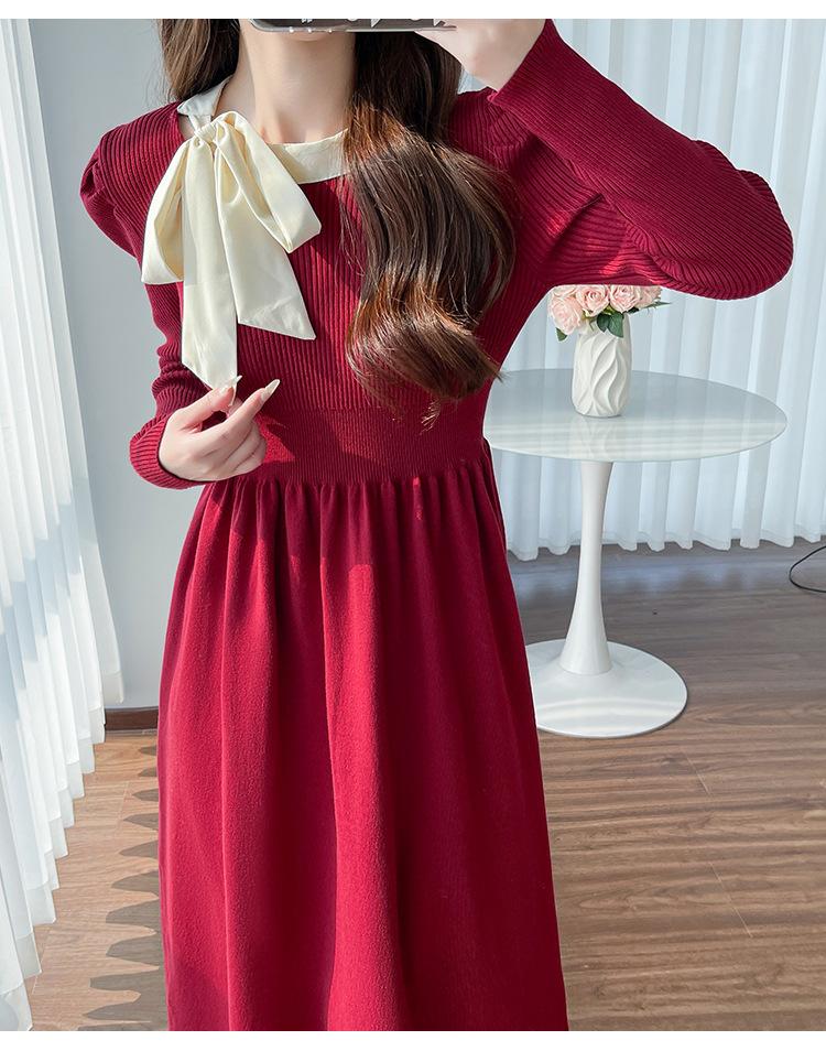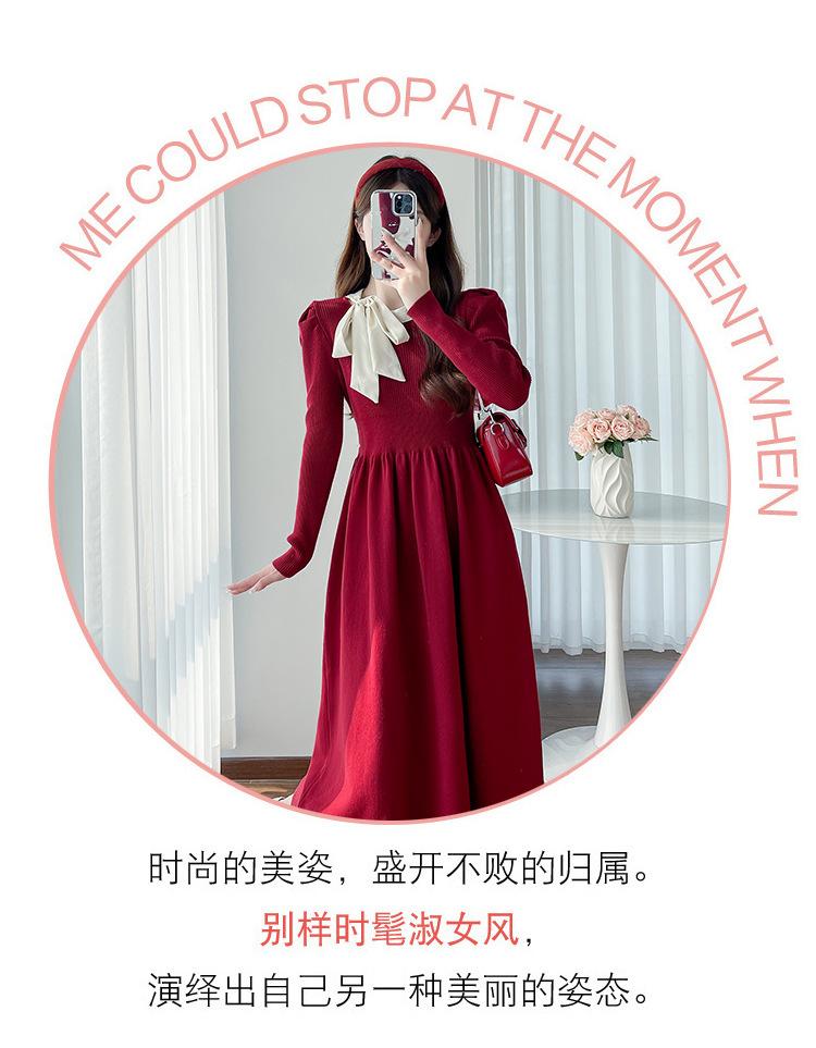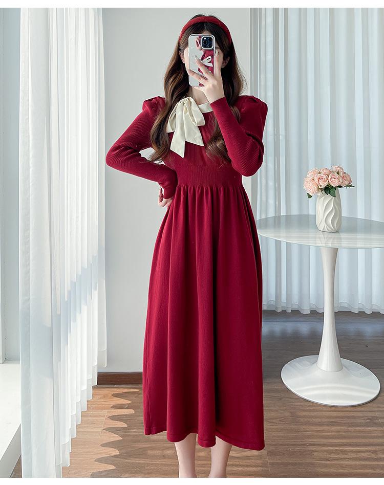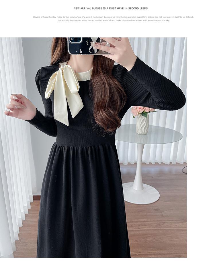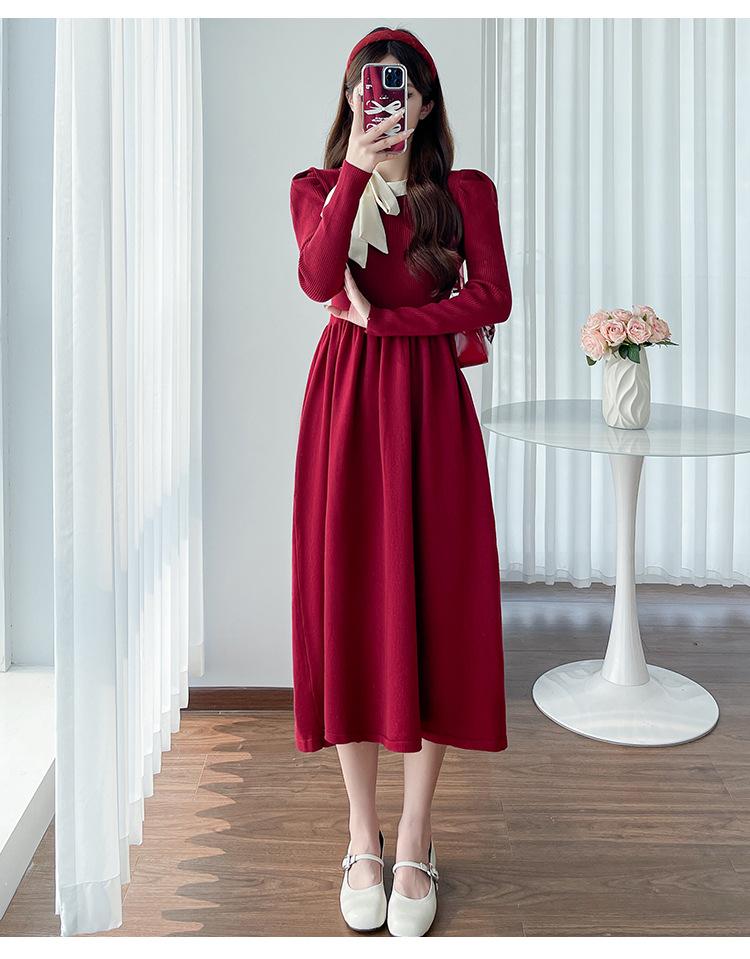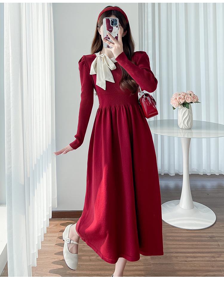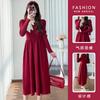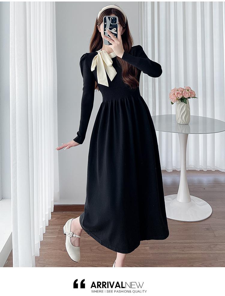 Ropa de Maternidad Otoño e Invierno 2024 Nuevo Suéter Versátil Tejido Dulce que Reduce la Edad Vestido de Maternidad Suelto de Largo Medio