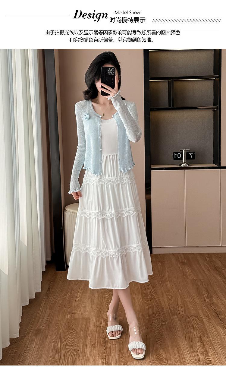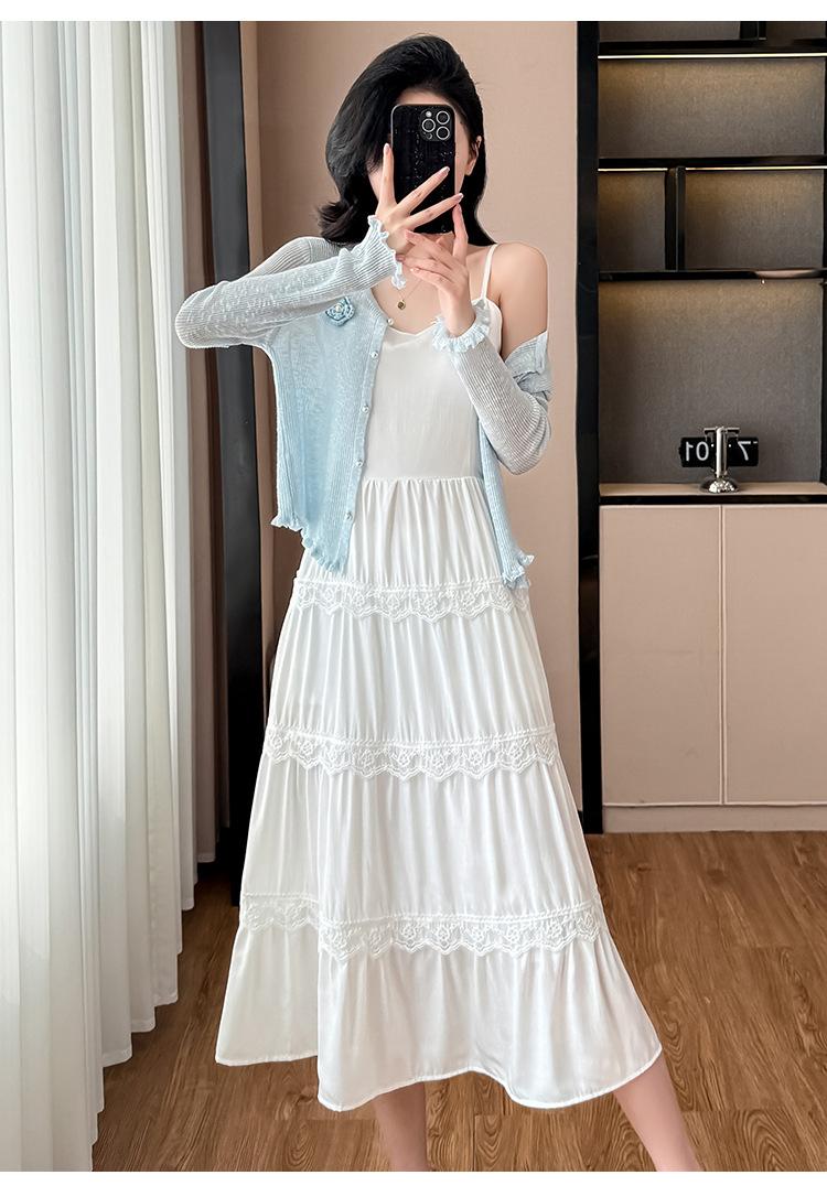 Three-dimensional flowers + wrap + patch + lace + two-piece set + solid color