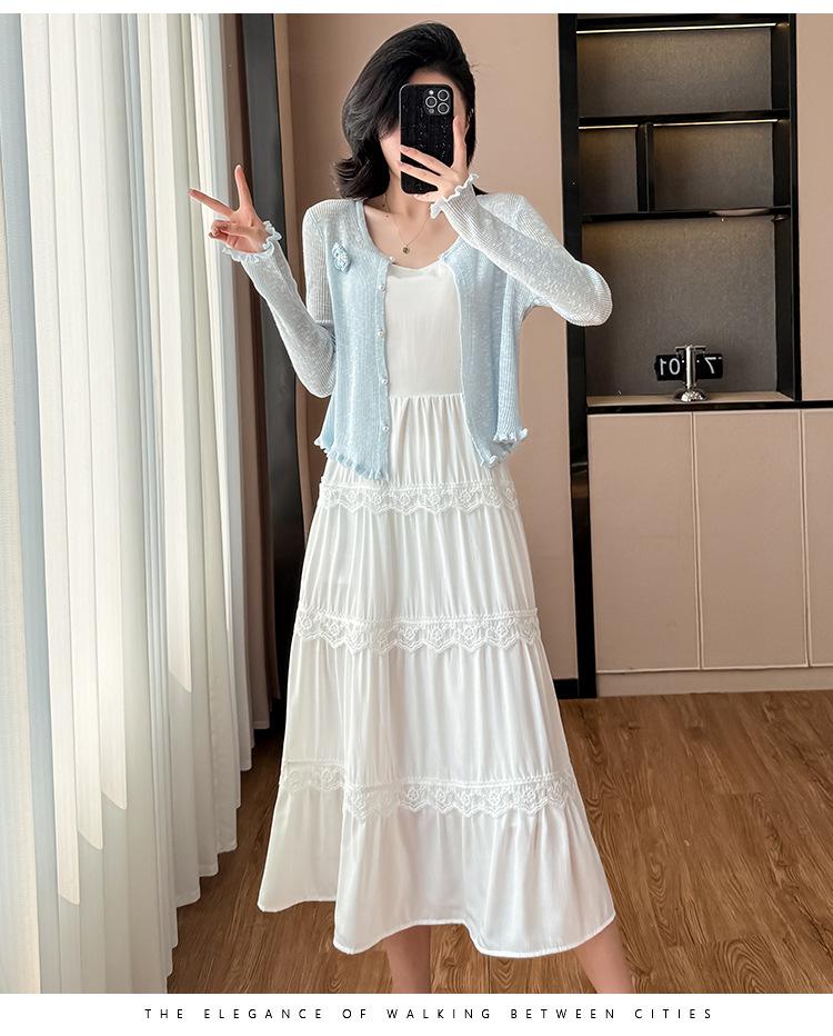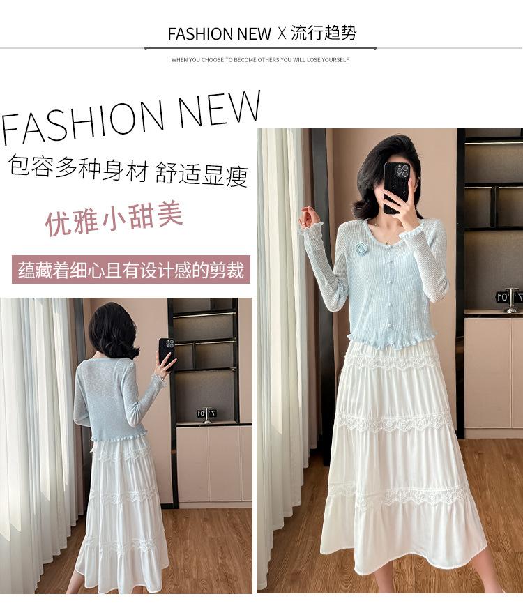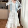Falda elegante de hada con combinación de dos piezas, chaqueta de punto, vestido de mujer, nuevo vestido de moda de primavera
