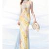 Nanyou Europeo y Americano Sexy Cuello en V Tirantes Encaje Costuras Encaje con Cordones Encaje con Cordones Vestido Grande Vestido