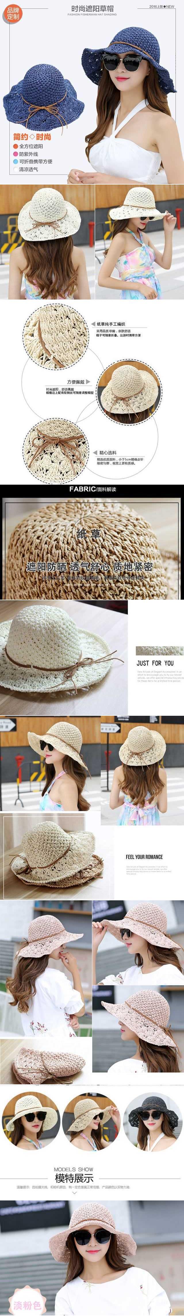 Sombrero de Paja Plegable Sombrero de Playa Sombrero de Sol de Verano para Mujer Sombrero de Protección Solar Sombrero de Sol Calado