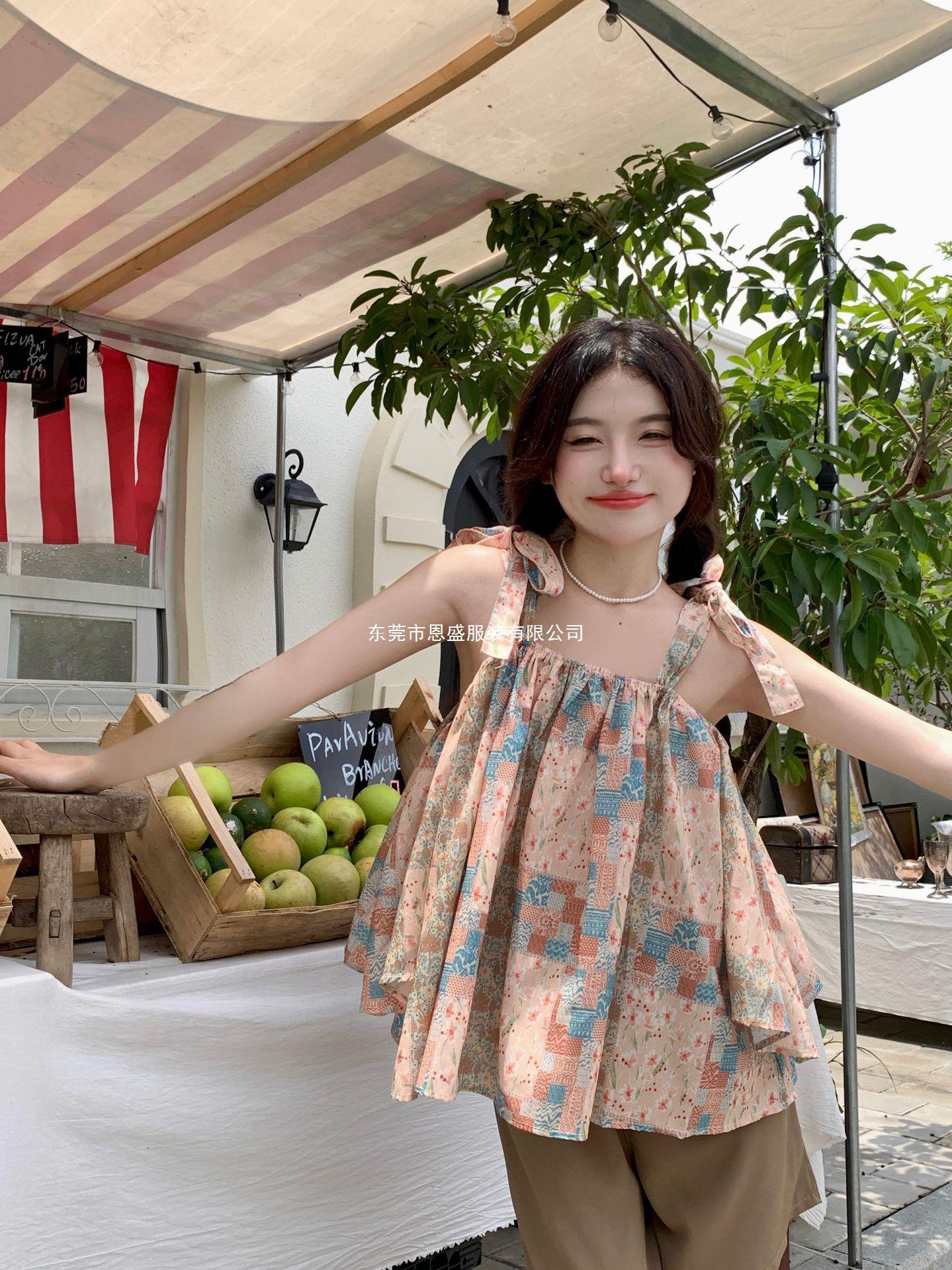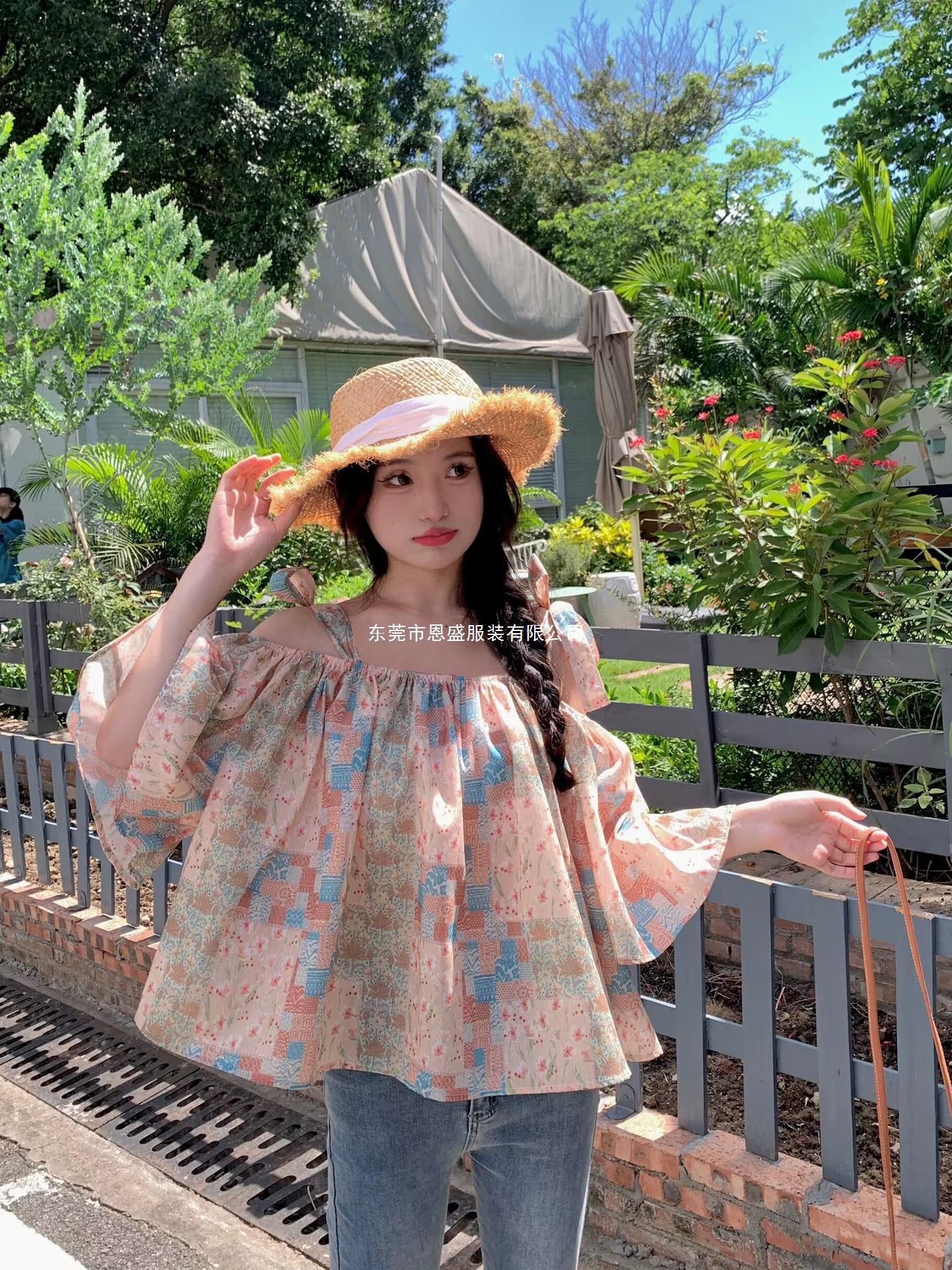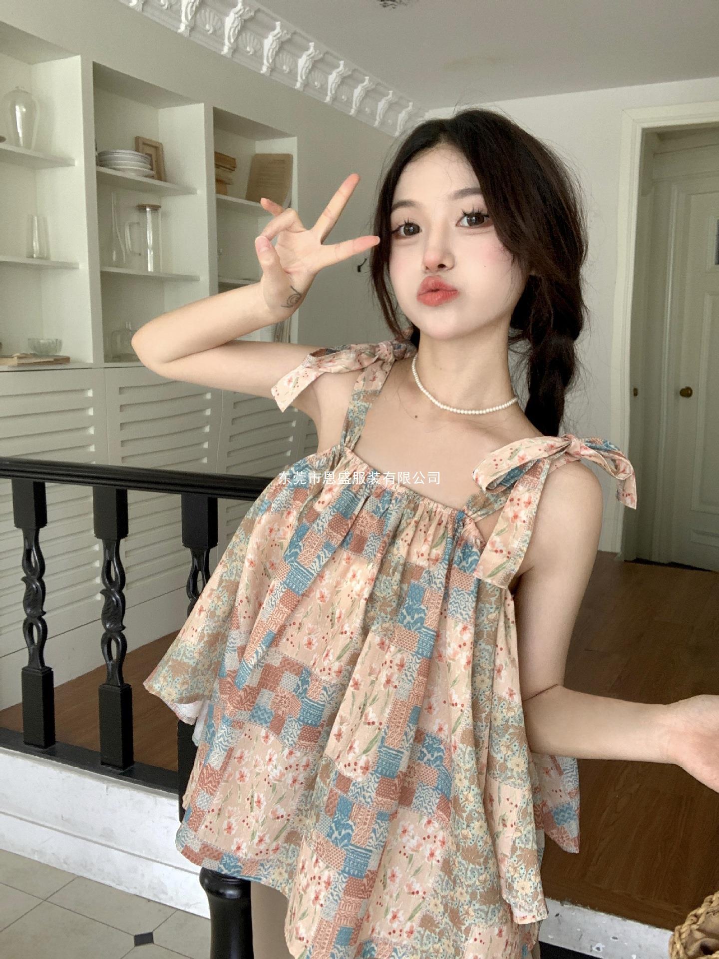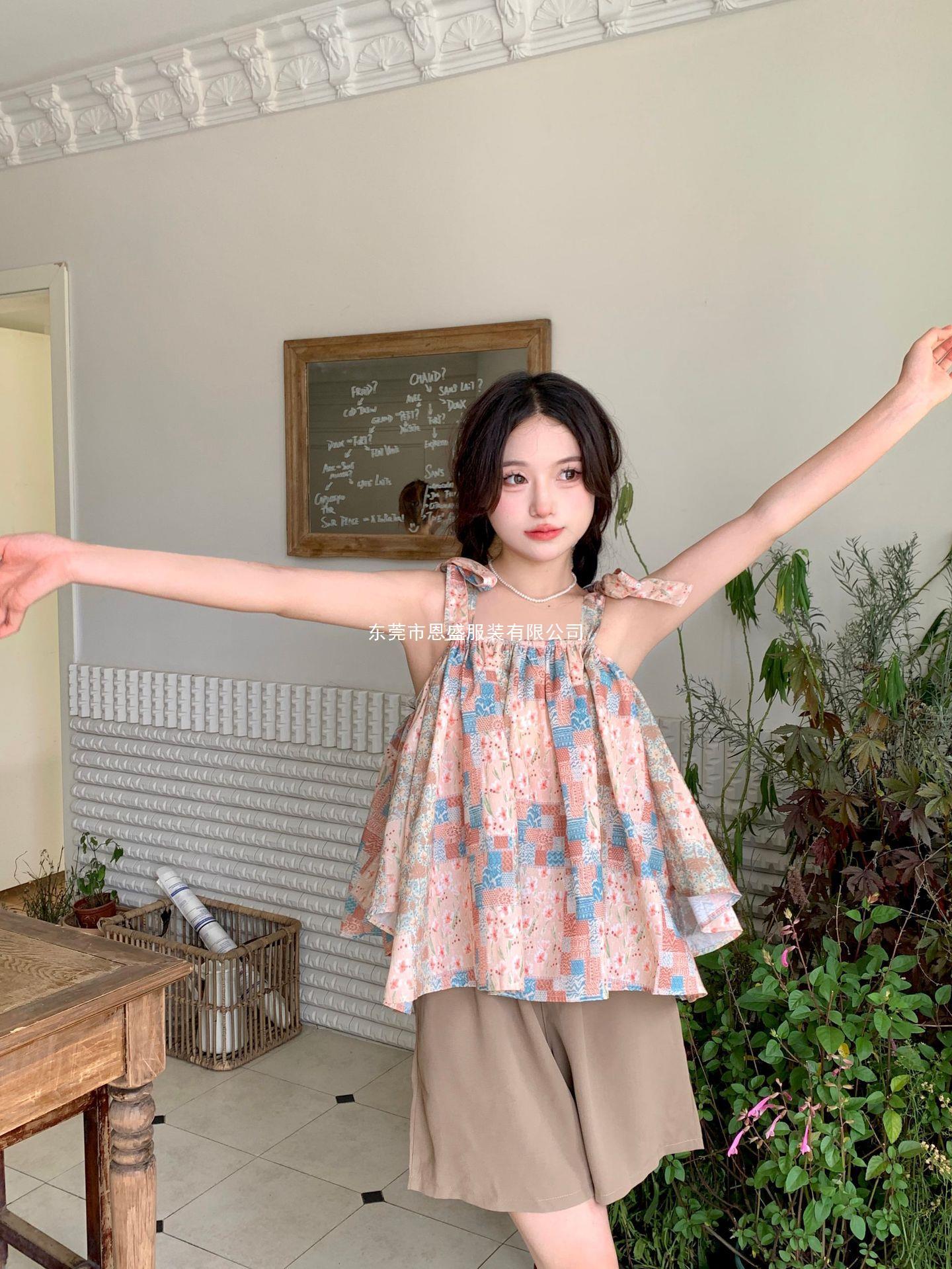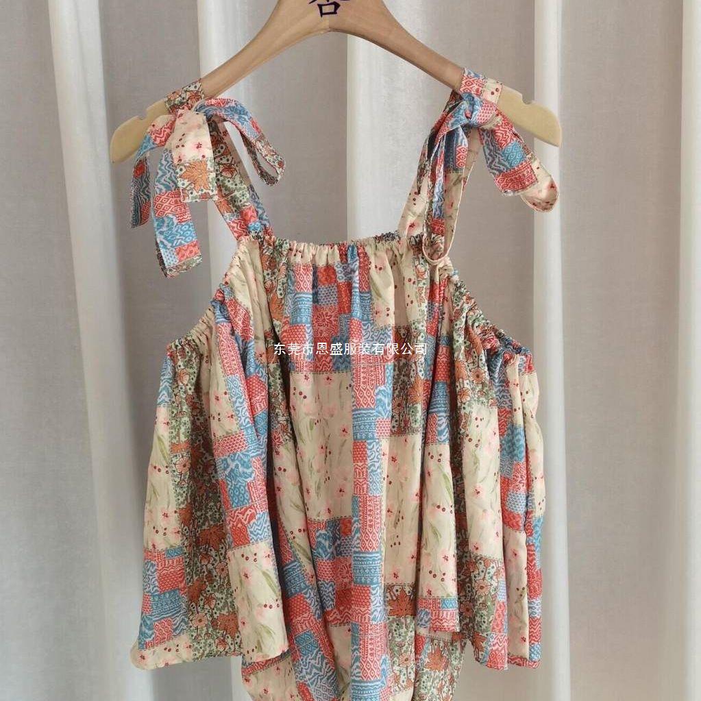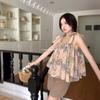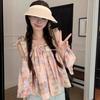 Verano 2024 Dulce y Picante Reductor de Edad Estilo Occidental Sling Delgada Hombro Camisa Francesa para Mujer Top Corto Holgado Ropa de Mujer