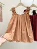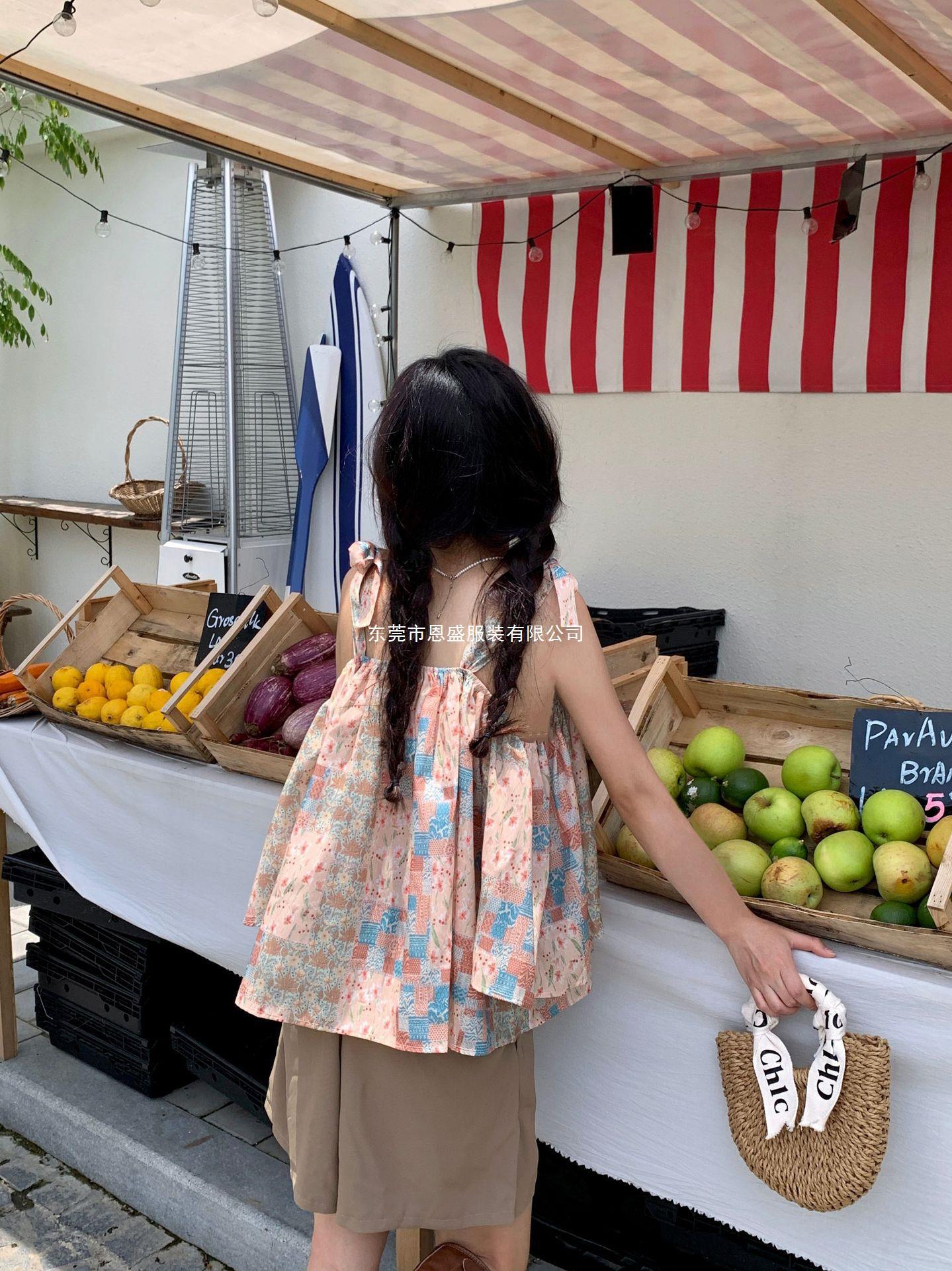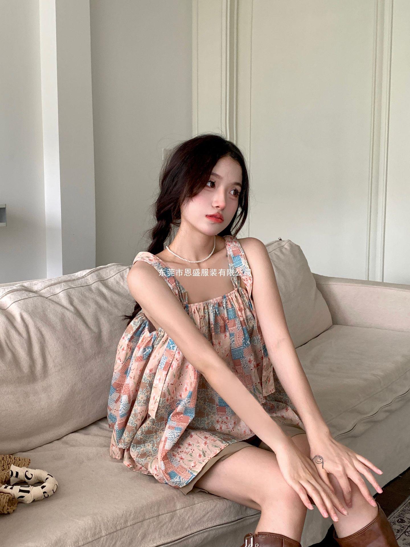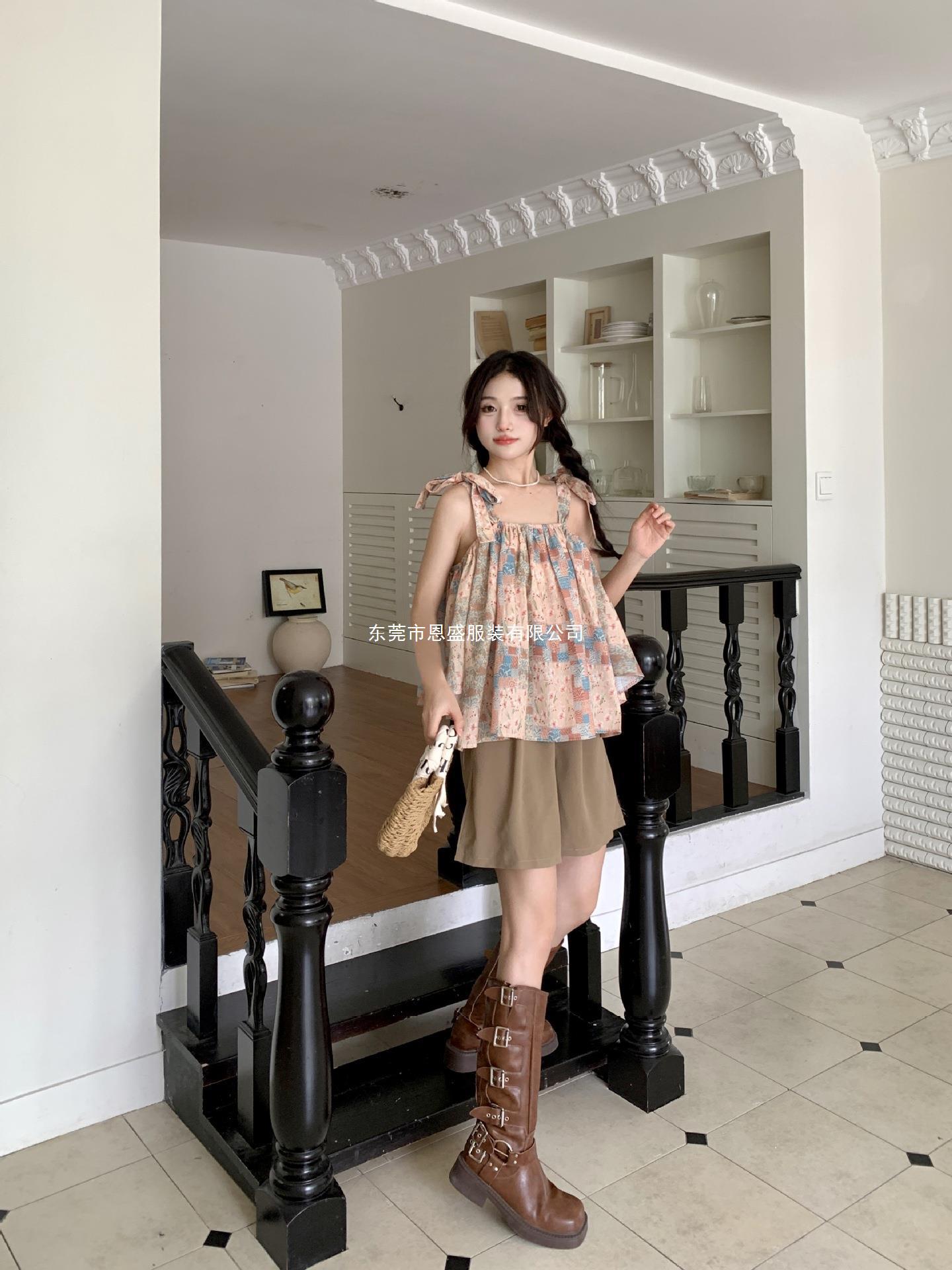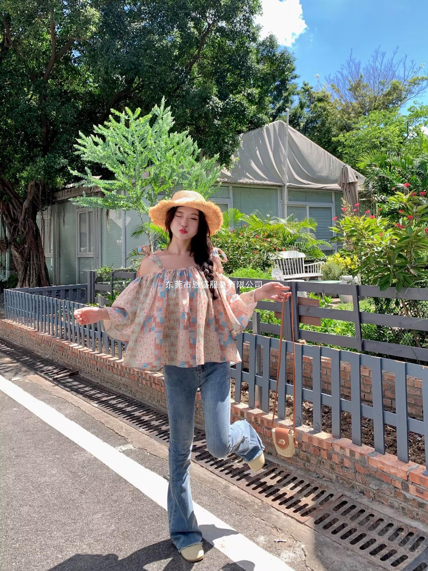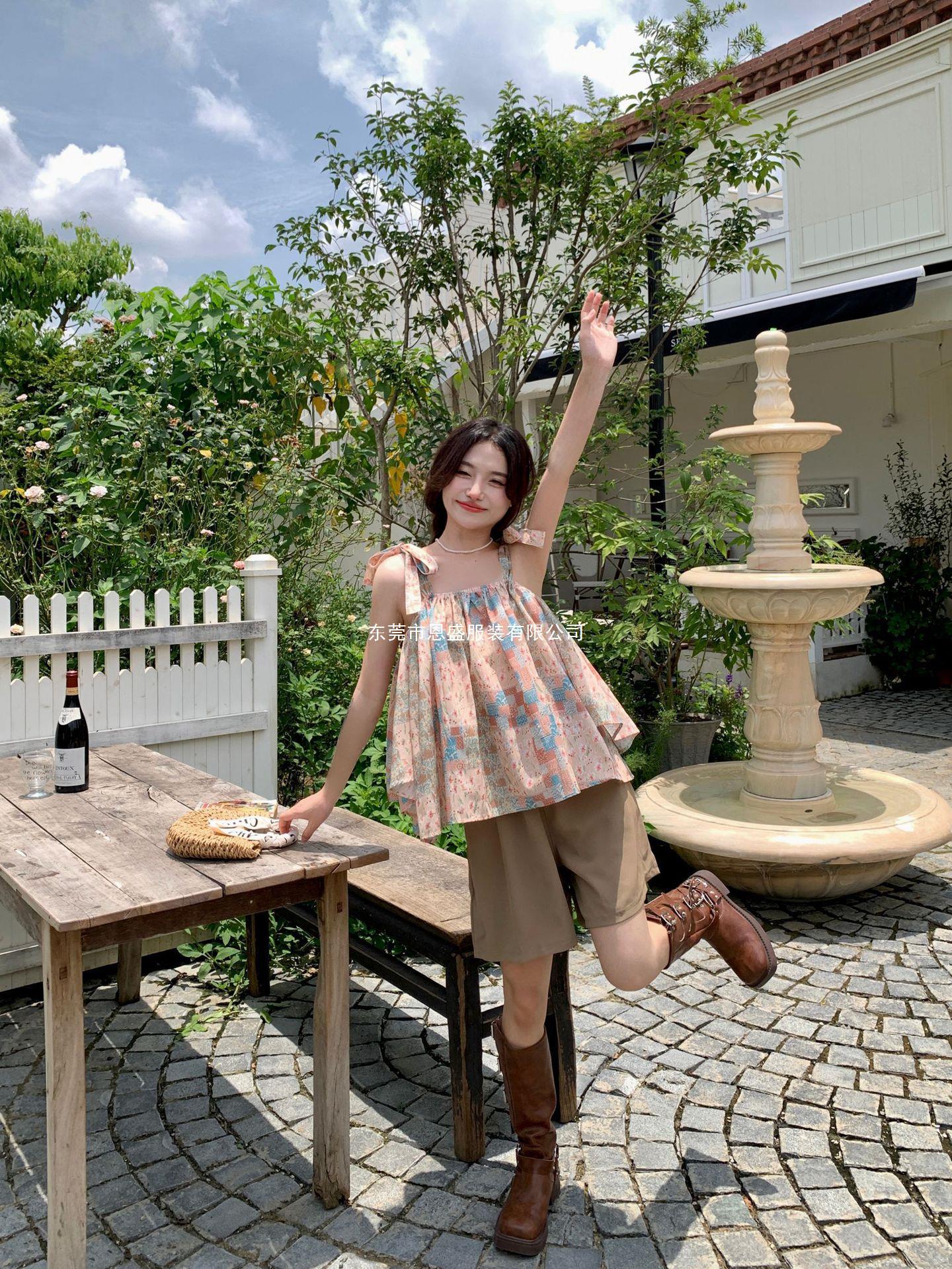 Verano 2024 Dulce y Picante Reductor de Edad Estilo Occidental Sling Delgada Hombro Camisa Francesa para Mujer Top Corto Holgado Ropa de Mujer