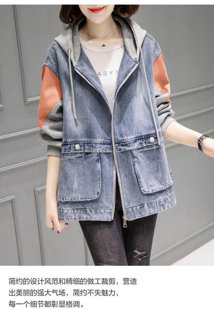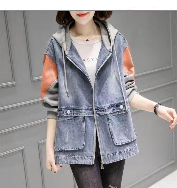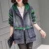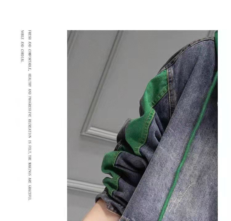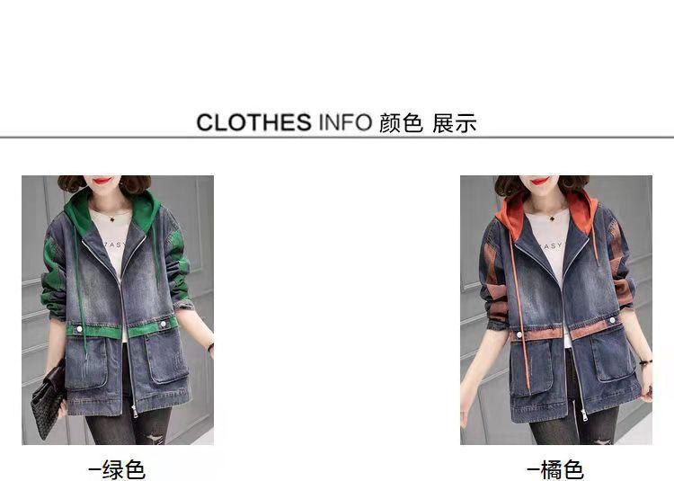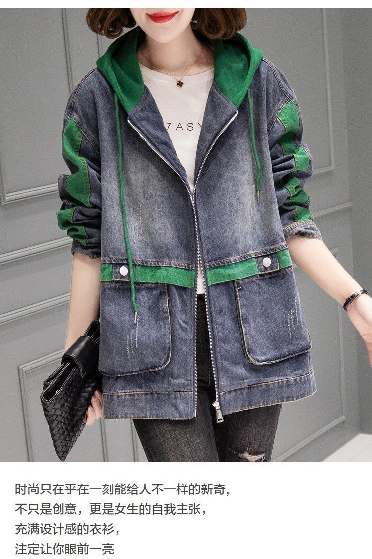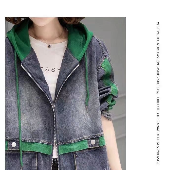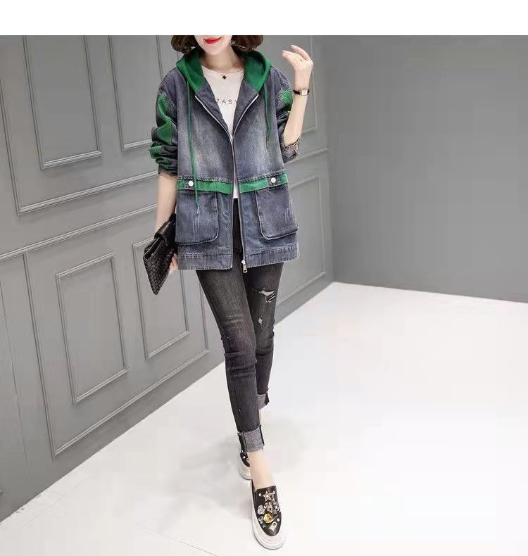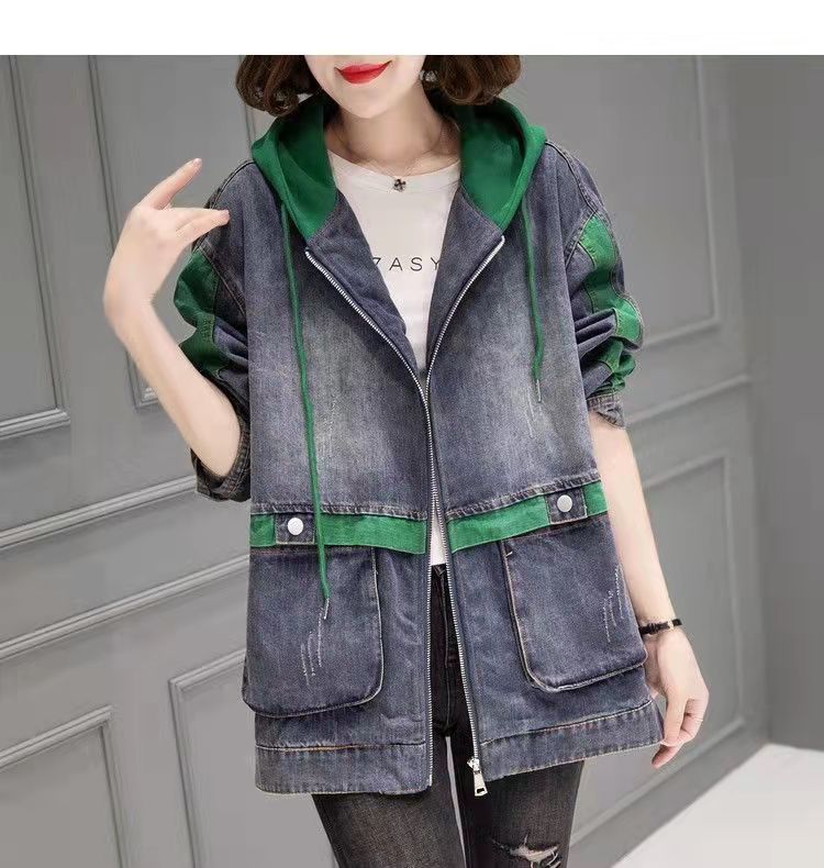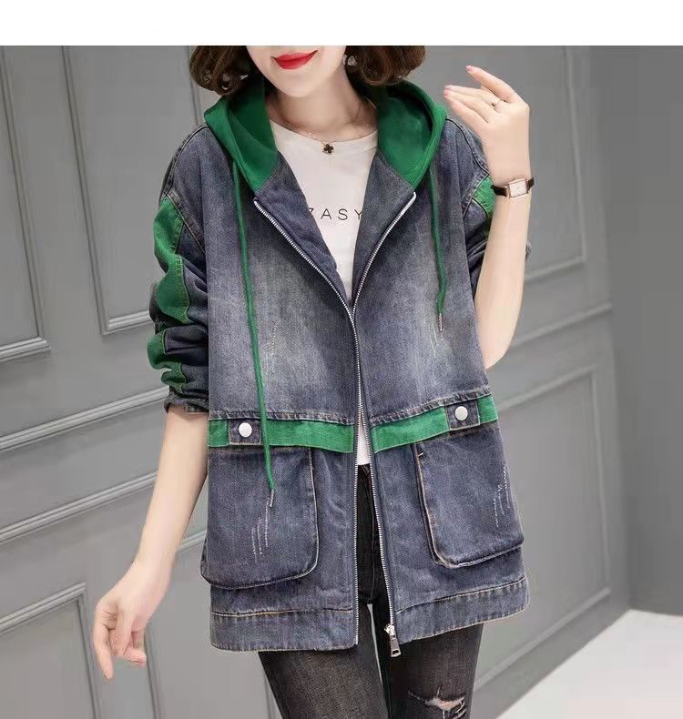 Exportación Comercio Exterior Chaqueta de Mezclilla con Capucha y Costuras Verdes para Mujer Primavera y Otoño 2021 Nuevo Top Corto Casual Otoño