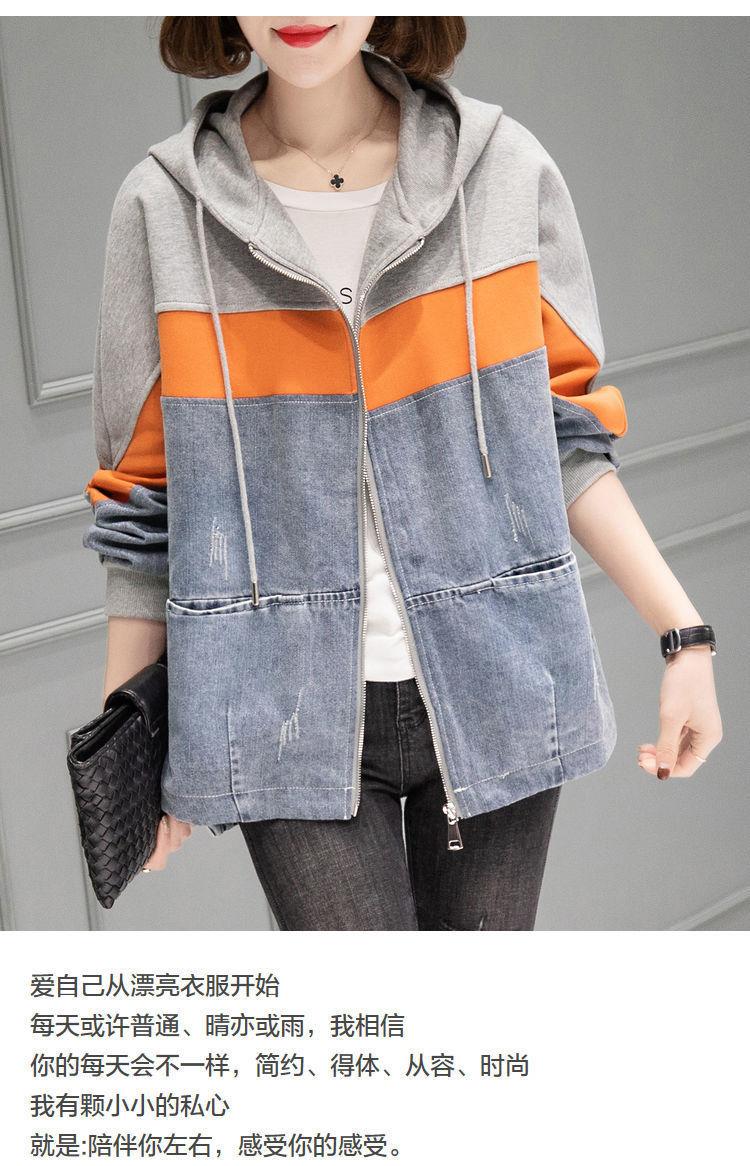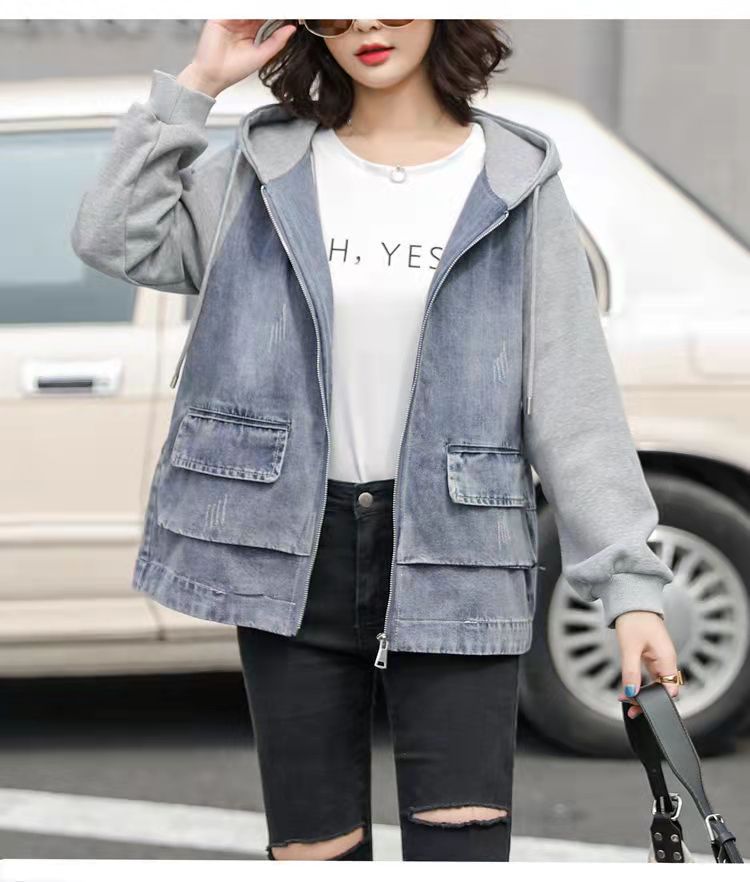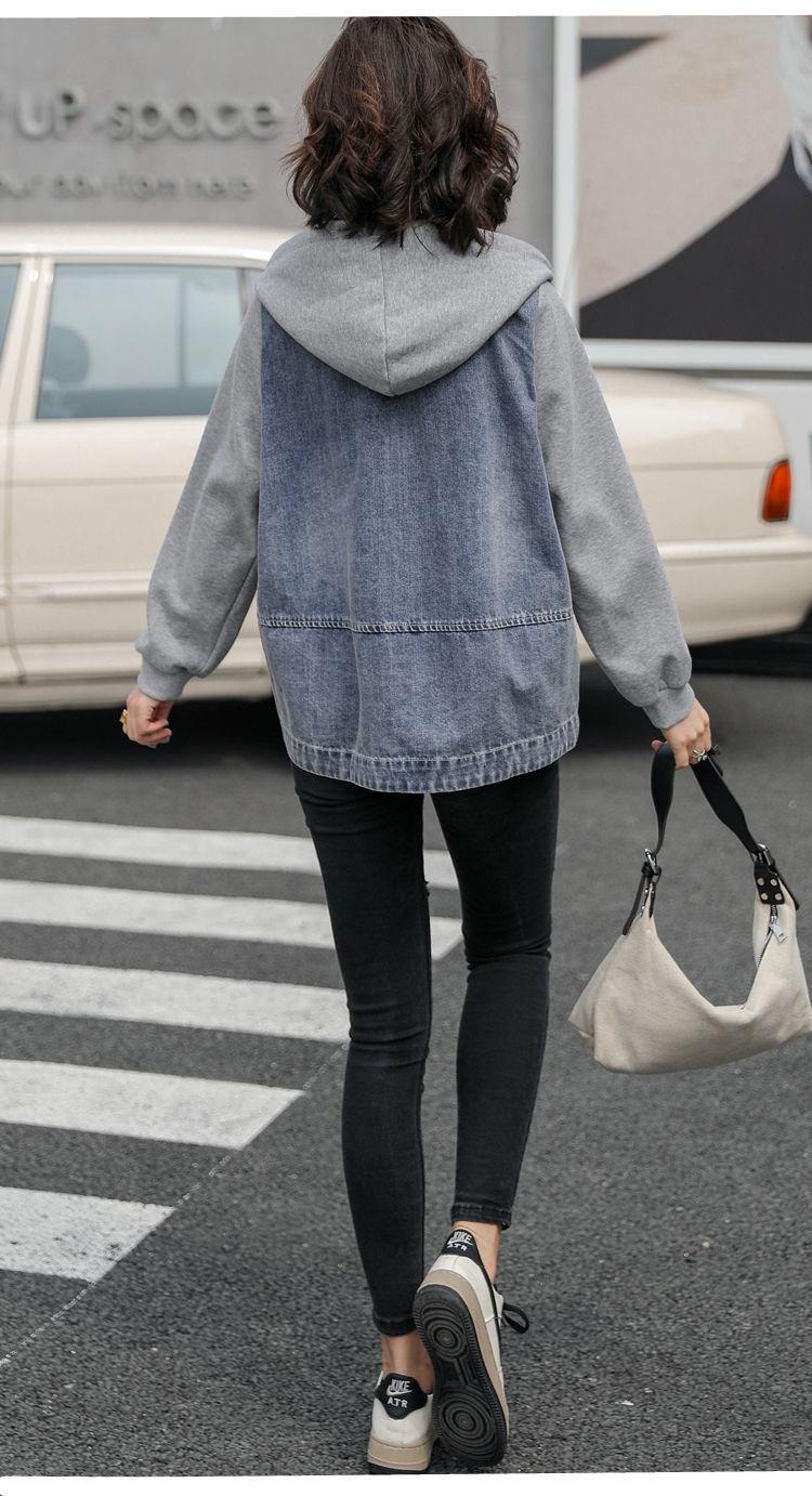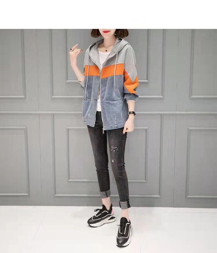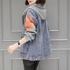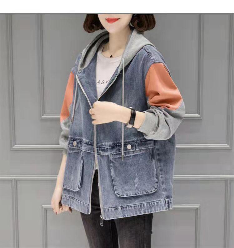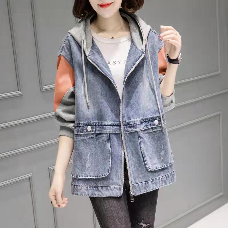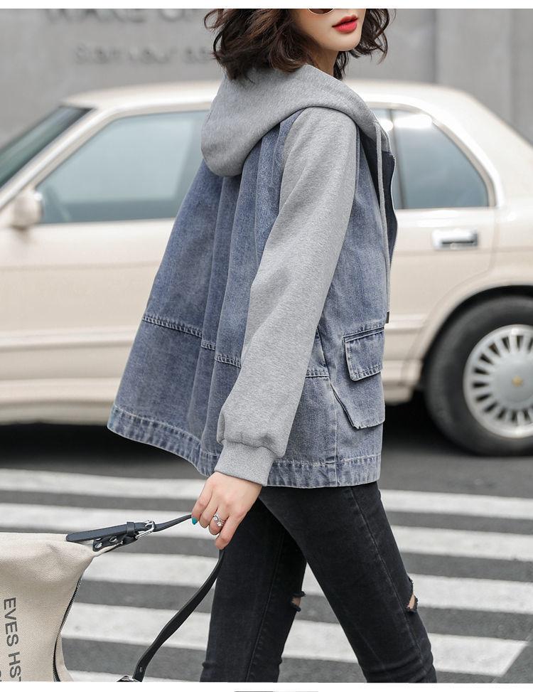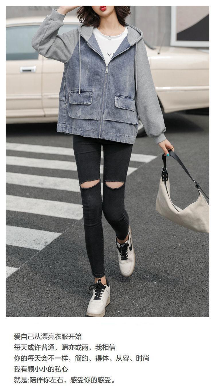Exportación Comercio Exterior Chaqueta de Mezclilla con Capucha y Costuras Verdes para Mujer Primavera y Otoño 2021 Nuevo Top Corto Casual Otoño