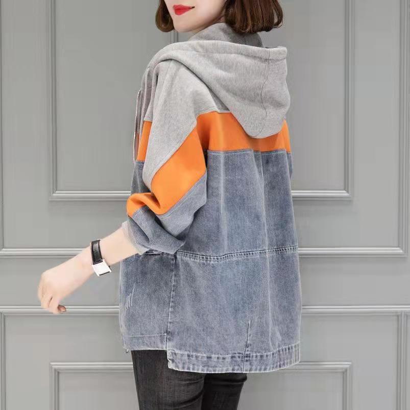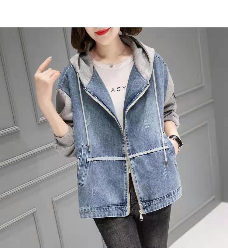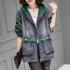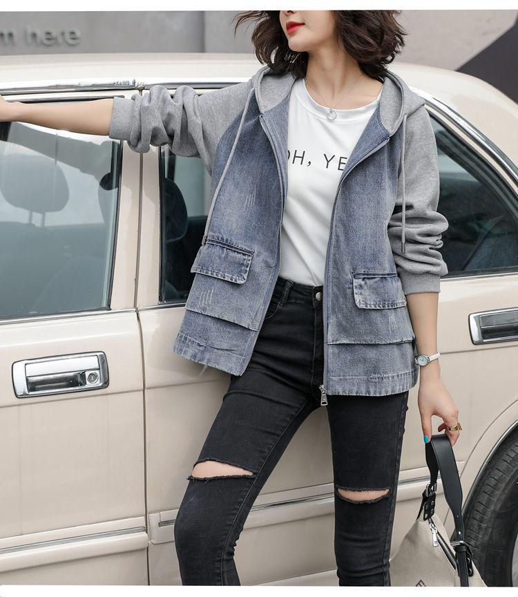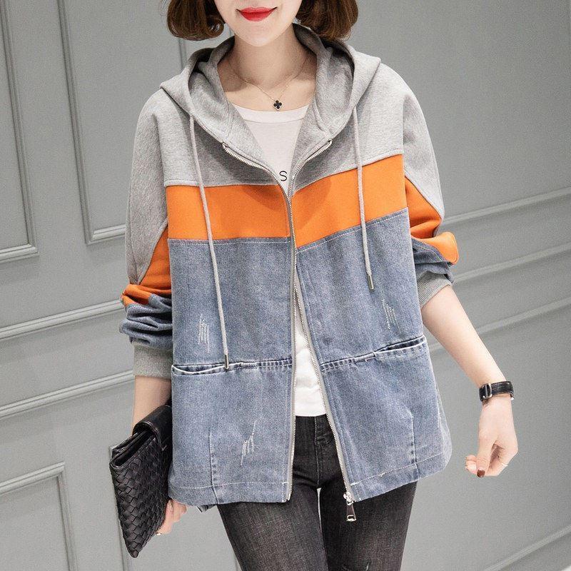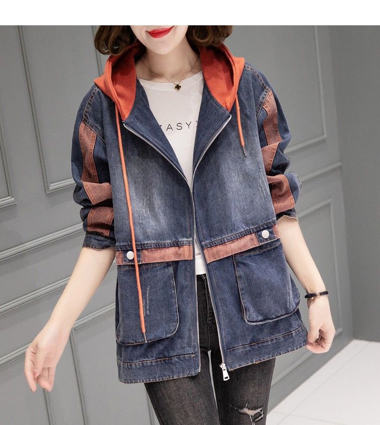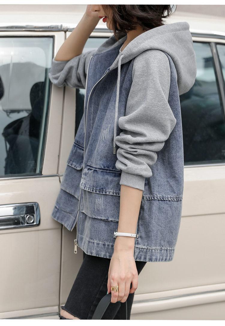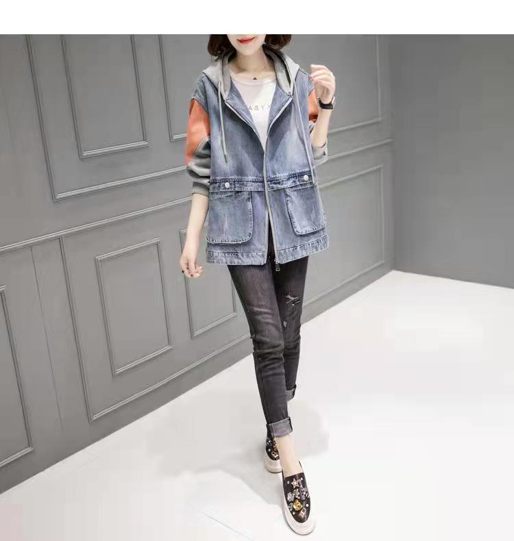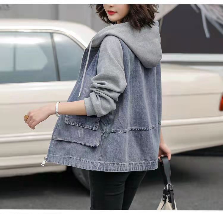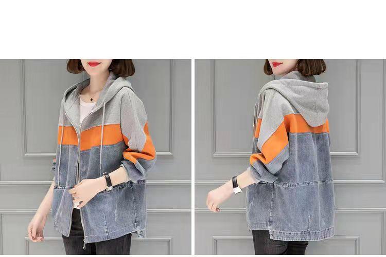Exportación Comercio Exterior Chaqueta de Mezclilla con Capucha y Costuras Verdes para Mujer Primavera y Otoño 2021 Nuevo Top Corto Casual Otoño