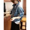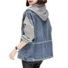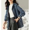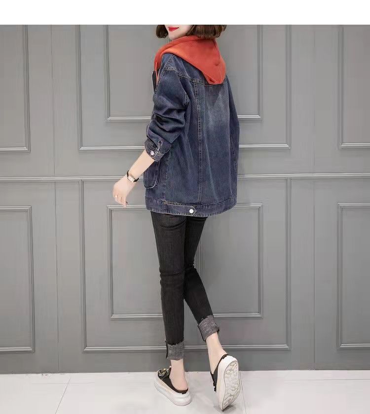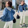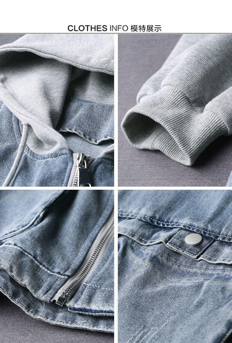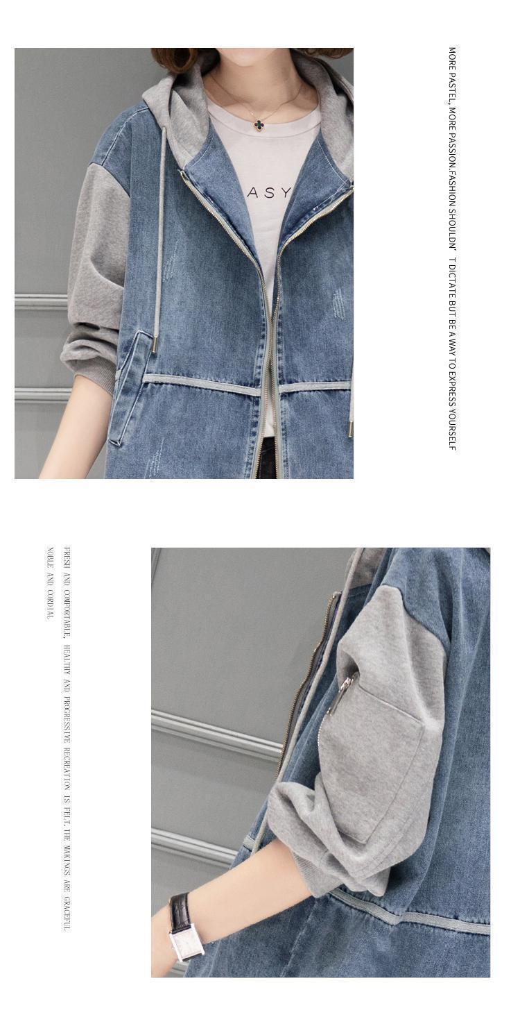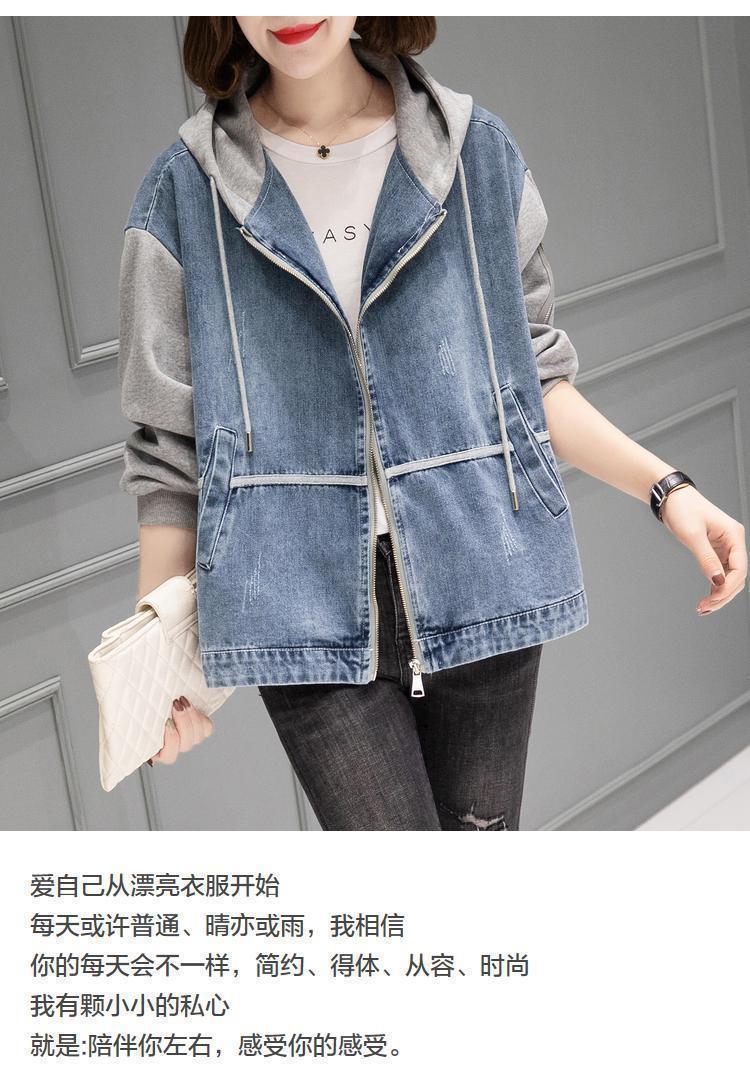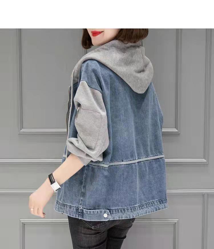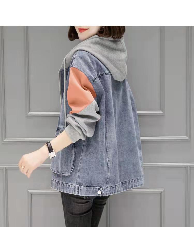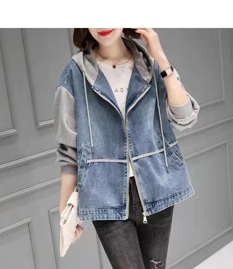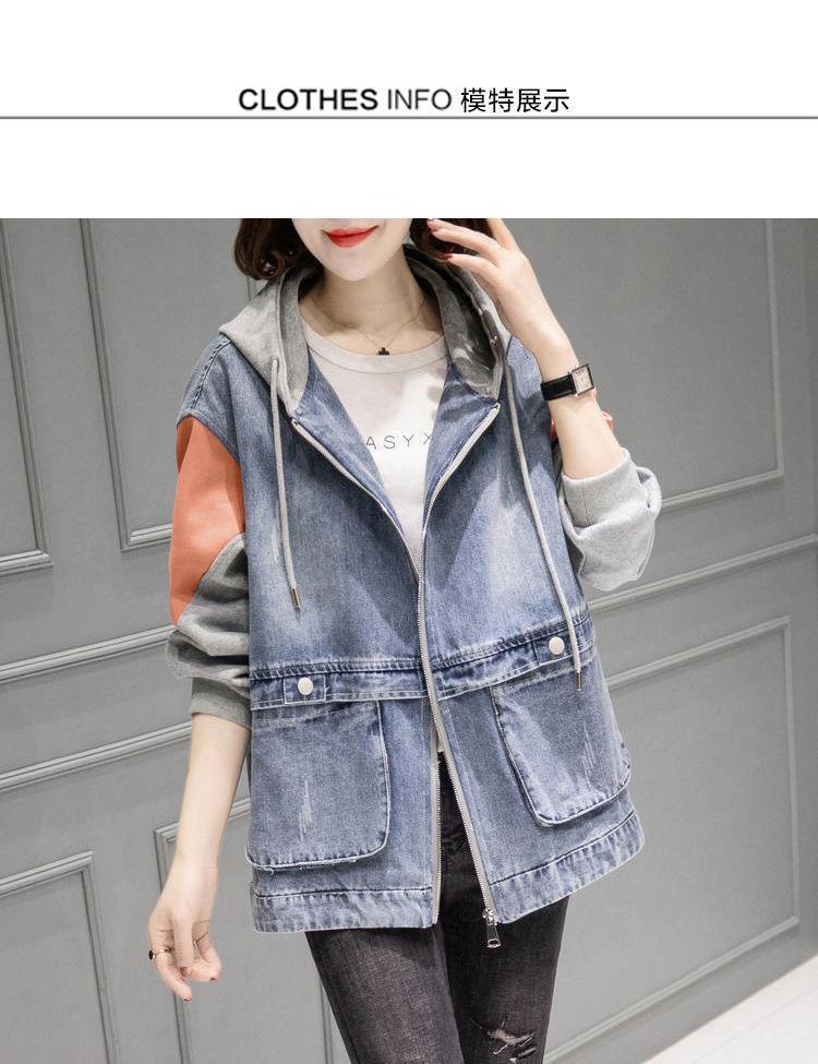 Exportación Comercio Exterior Chaqueta de Mezclilla con Capucha y Costuras Verdes para Mujer Primavera y Otoño 2021 Nuevo Top Corto Casual Otoño