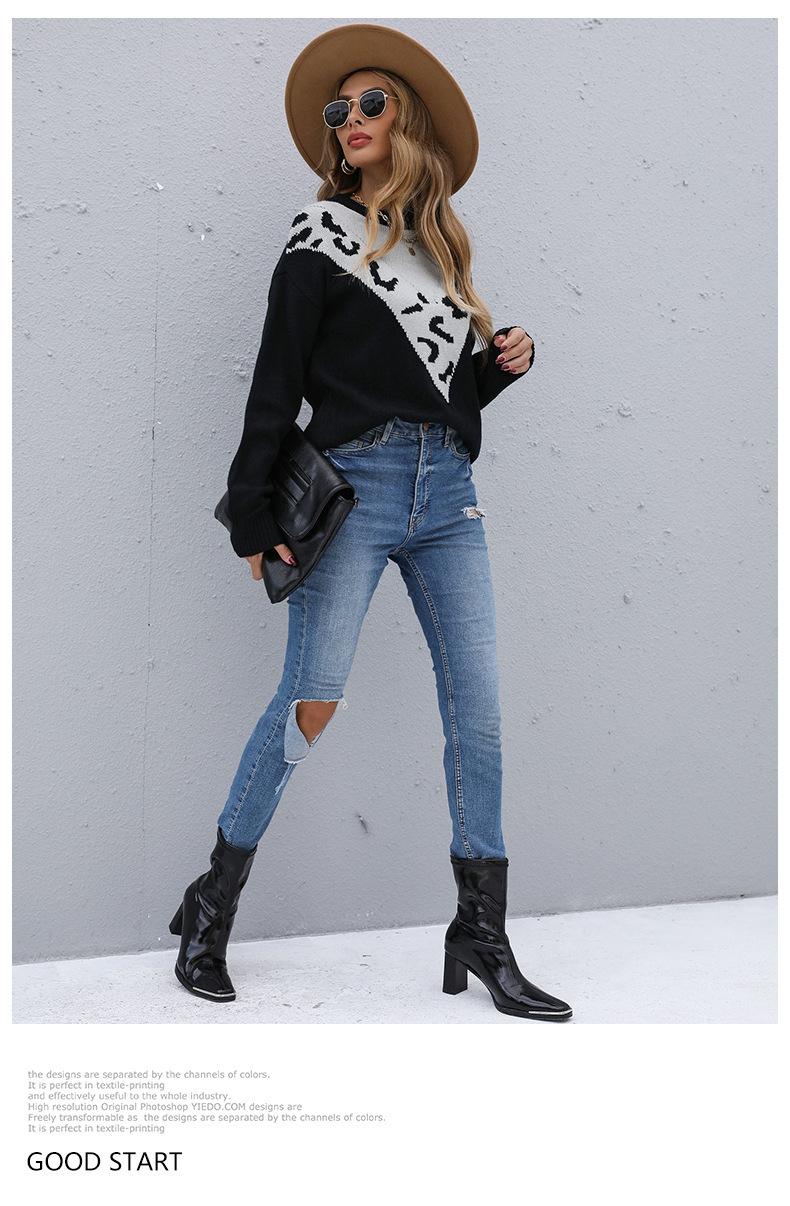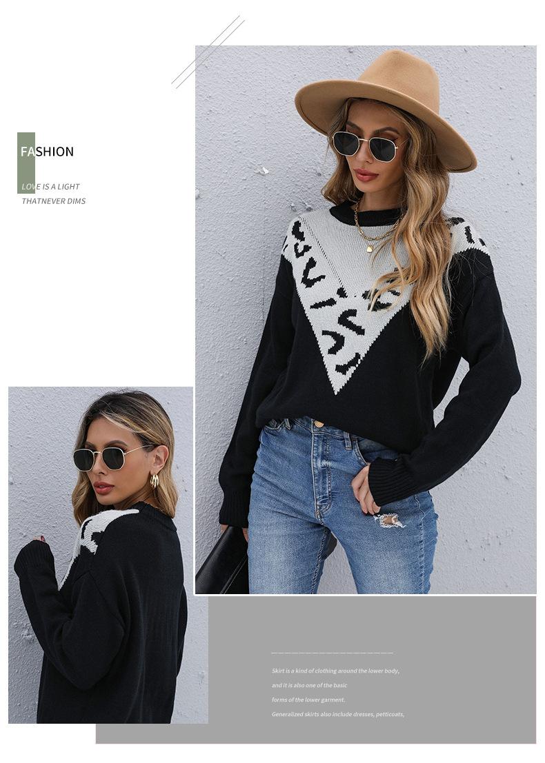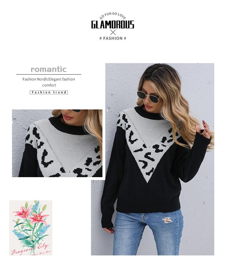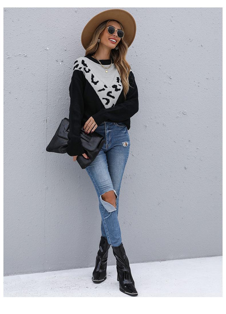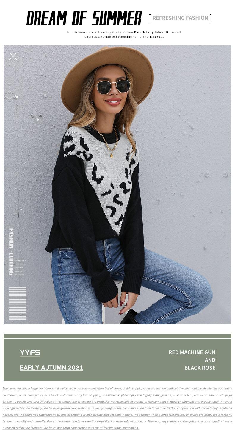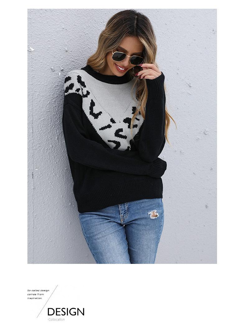 Estación independiente de Amazon transfronteriza otoño e invierno Europa y Estados Unidos comercio exterior ocio para mujer estampado de leopardo color contrastante manga larga suéter viento perezoso fino