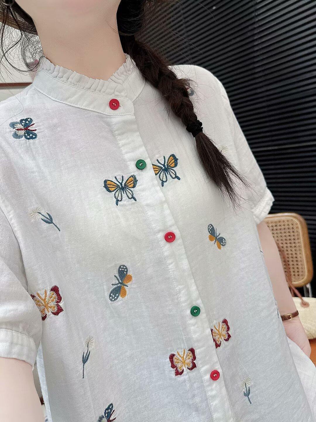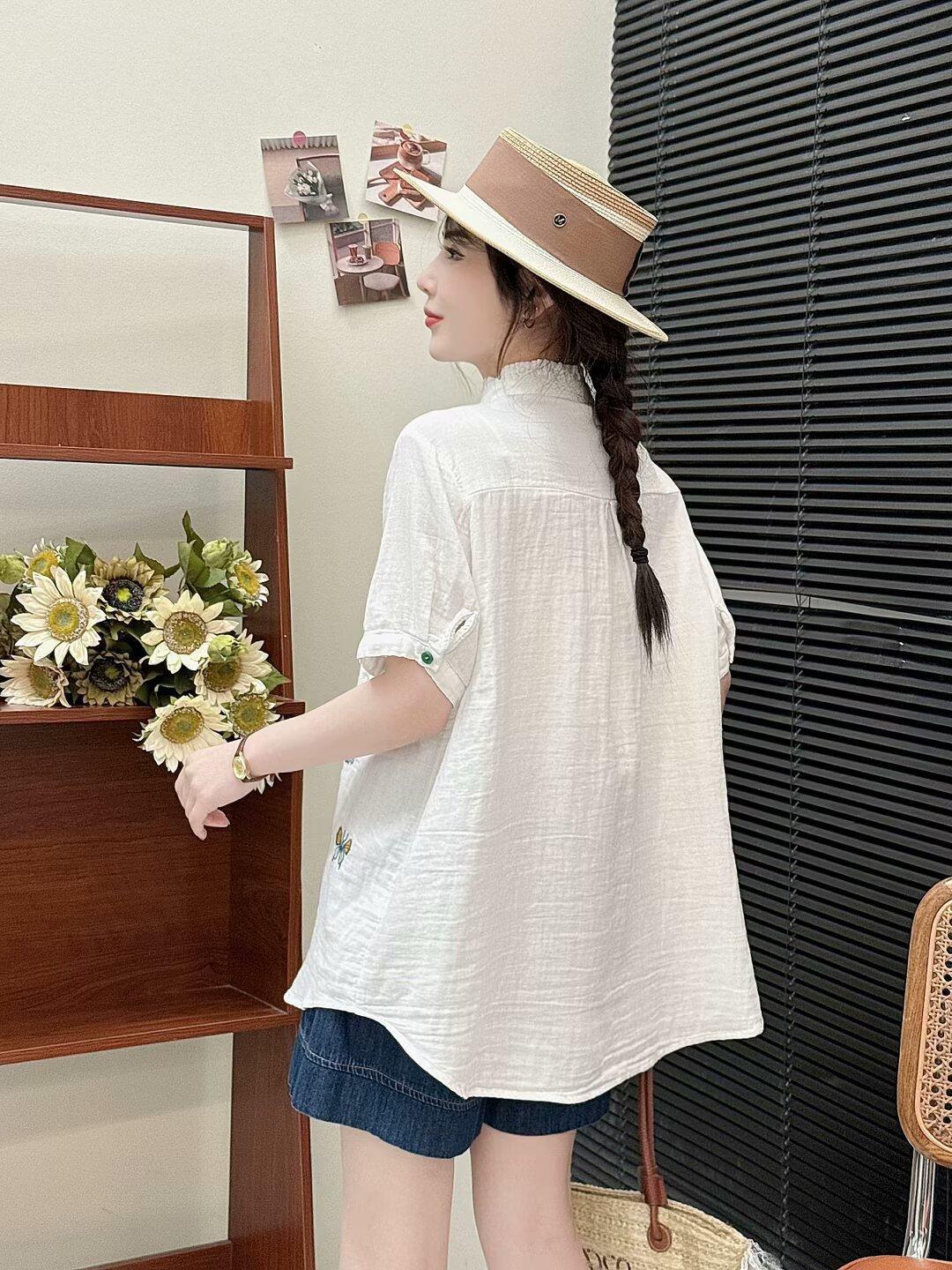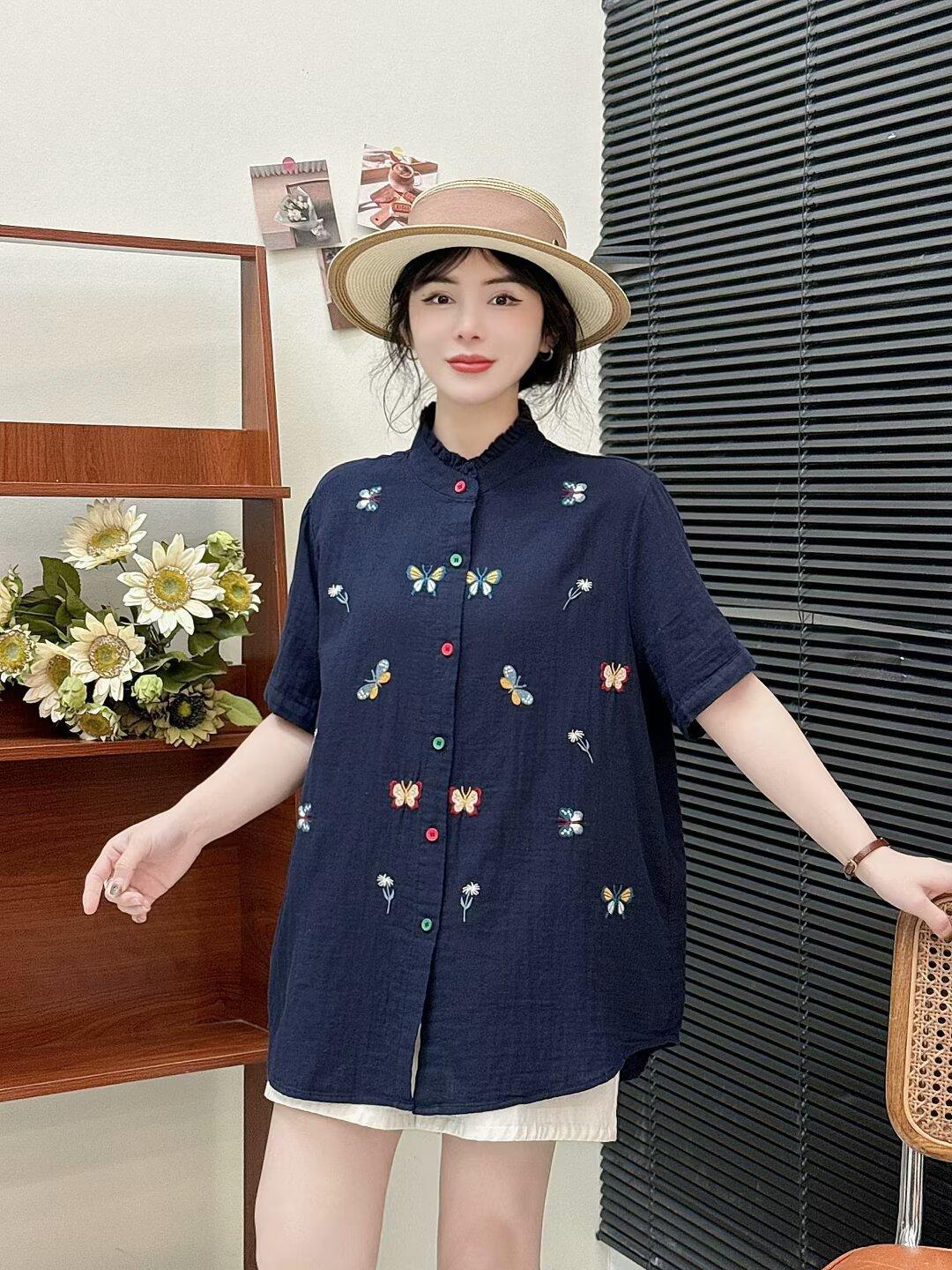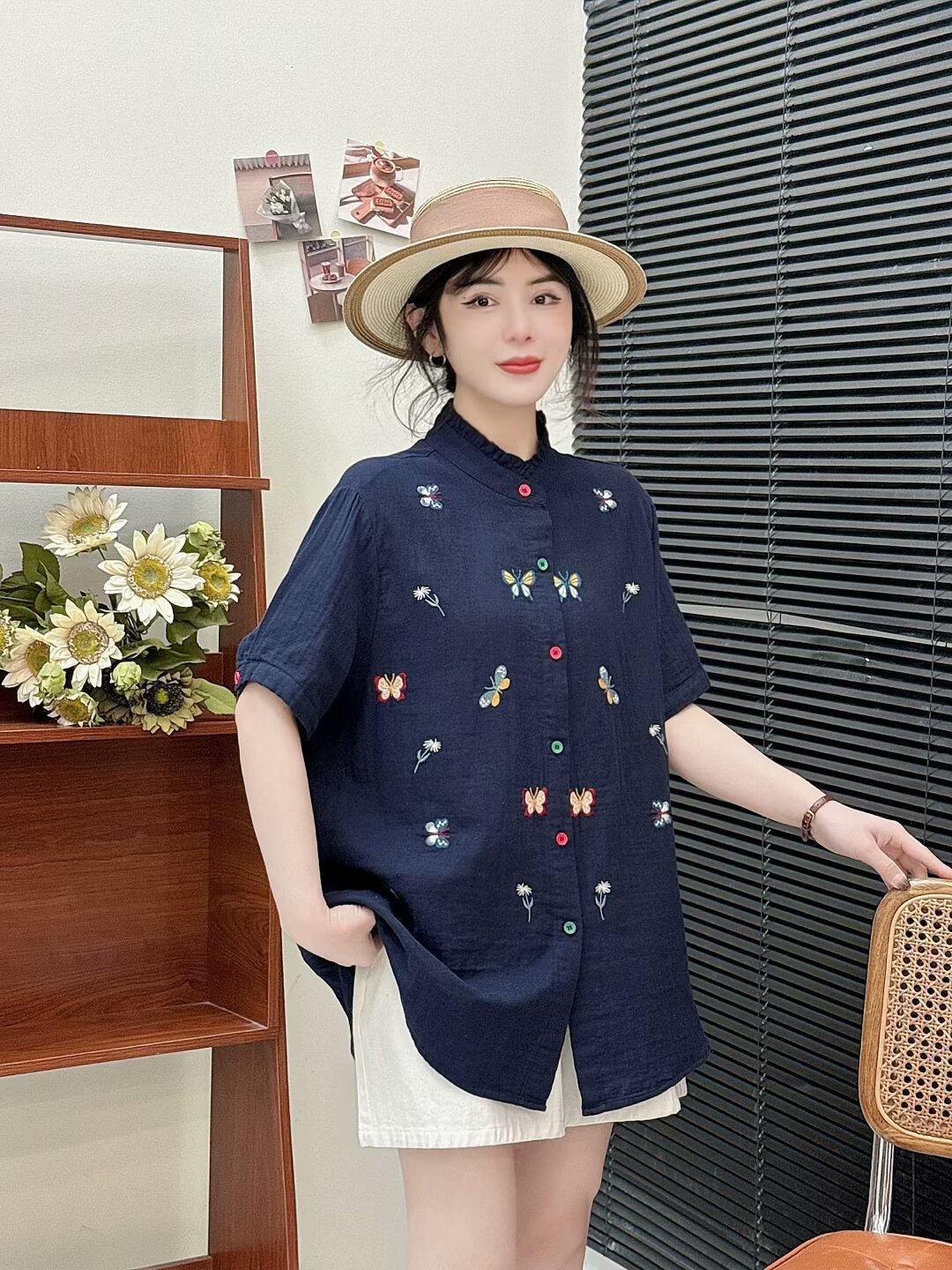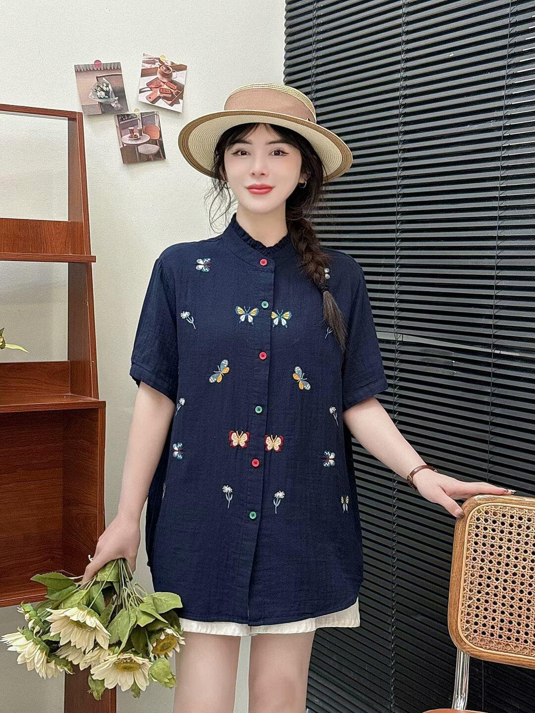 Verano 2025 Nueva Camisa Artística Estampada con Cuello Holgada Adelgazante Casual Combinable Manga Corta Top Cárdigan de Mujer