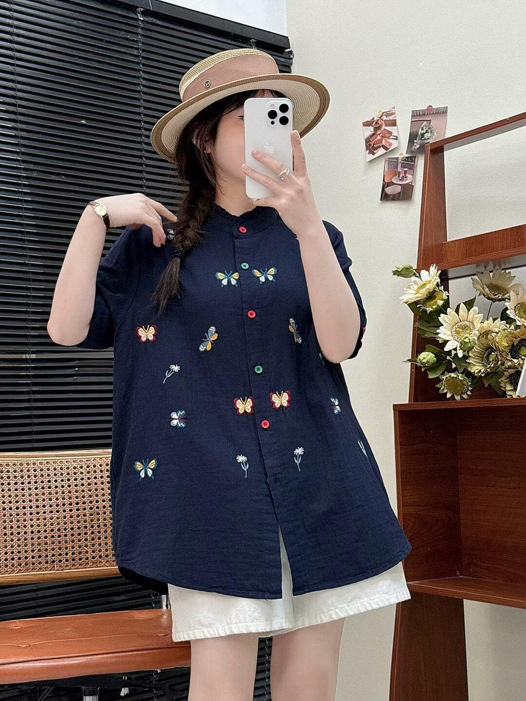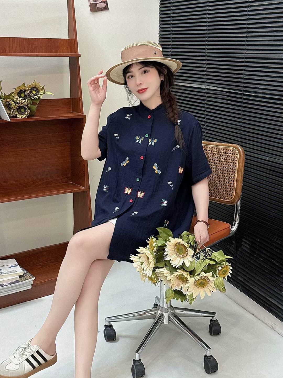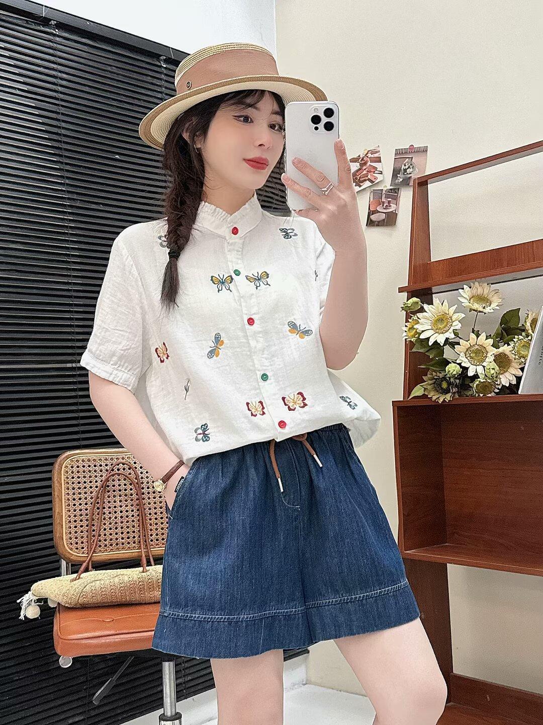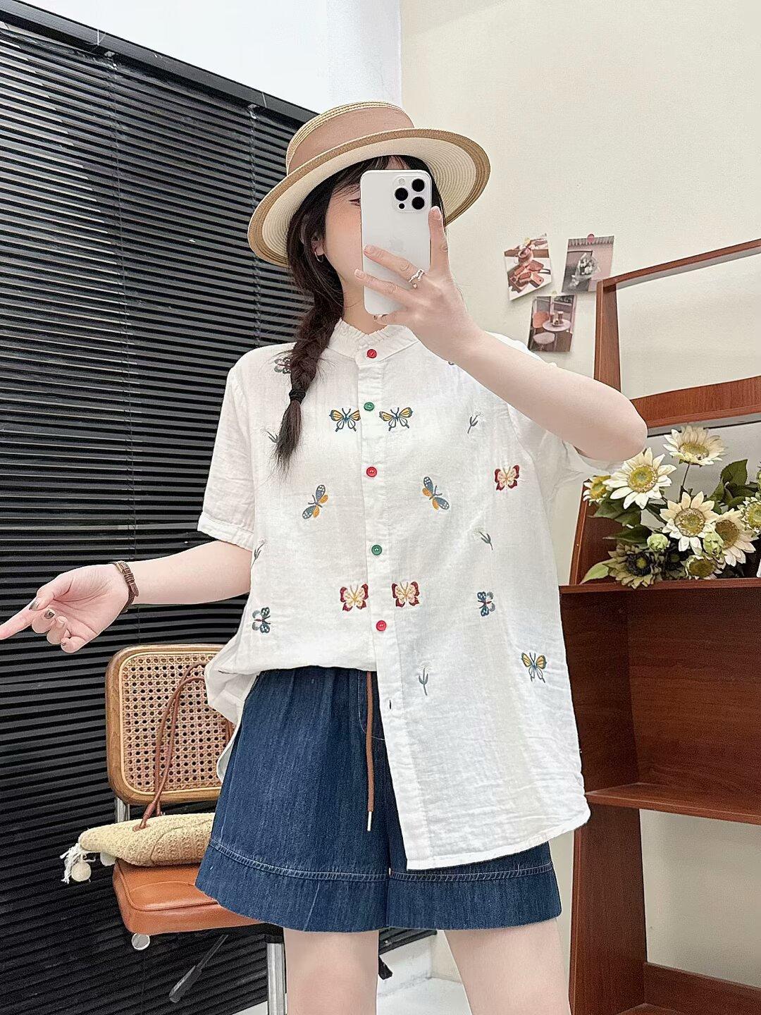Verano 2025 Nueva Camisa Artística Estampada con Cuello Holgada Adelgazante Casual Combinable Manga Corta Top Cárdigan de Mujer