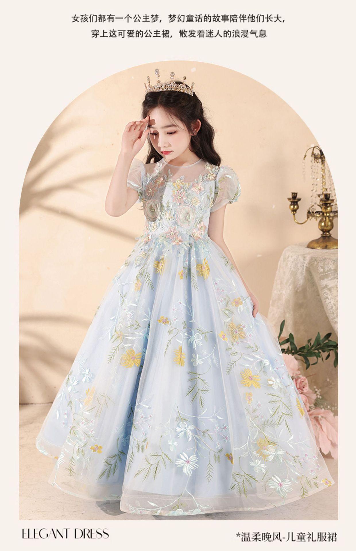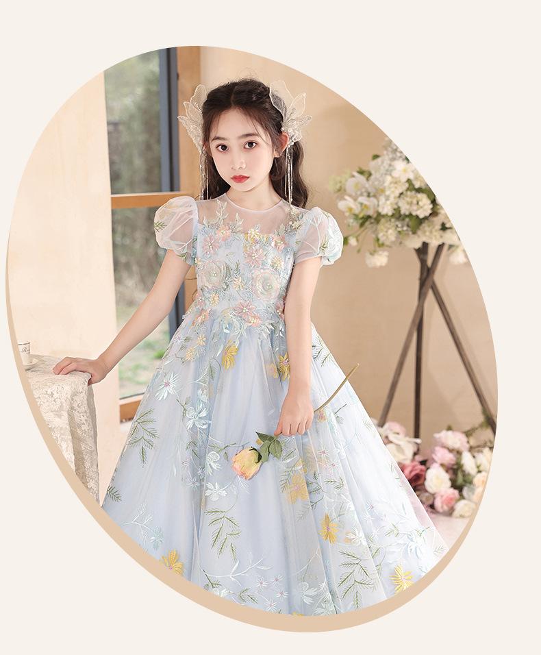 Vestido de Noche para Niñas 2025 Nuevo Día del Niño Hada de las Flores Ropa para Actuación de Piano Anfitrión Malla Vestido de Princesa para Niñas