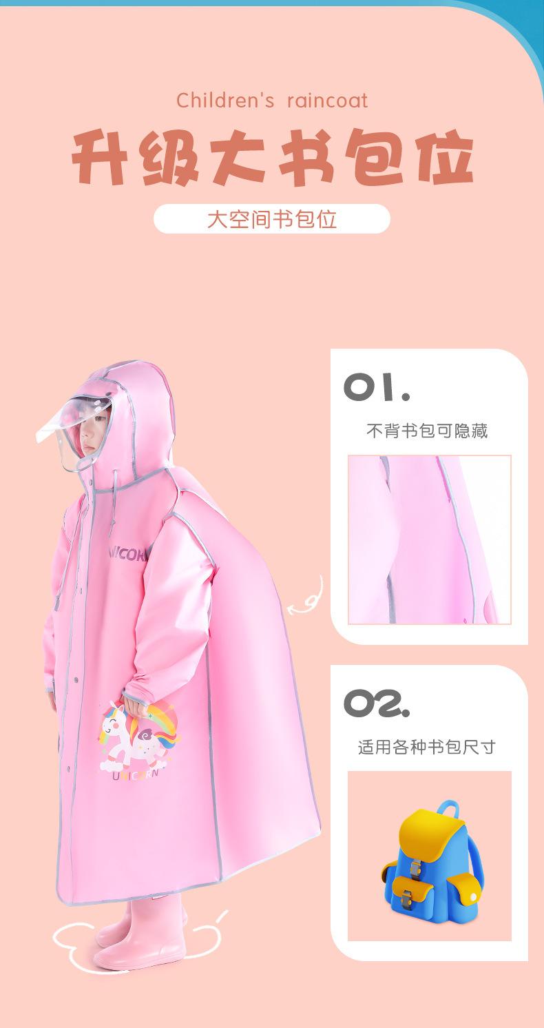 Chubasquero para niños, guardería, bebés, niños de primaria, niños y niñas, con mochila escolar, poncho con cremallera de doble ala