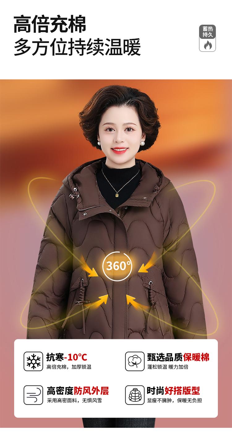 Chaqueta de Invierno para Madre Acolchada de Algodón con Plumón Más Fertilizante Nuevo Estilo Estilo Occidental Abrigo para Mujeres de Mediana Edad y Ancianas Mediana-larga Chaqueta Acolchada de Algodón para Mediana Edad