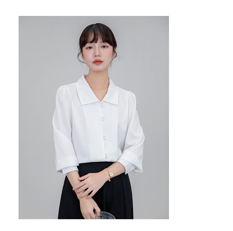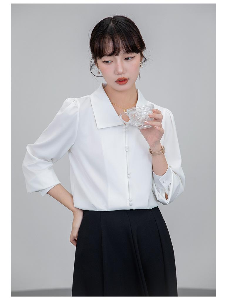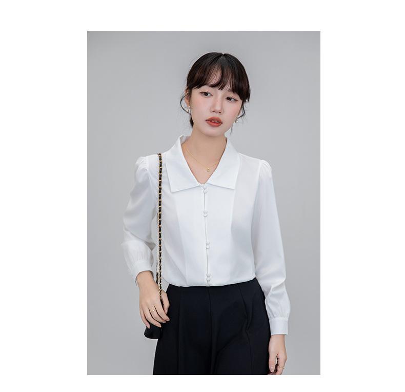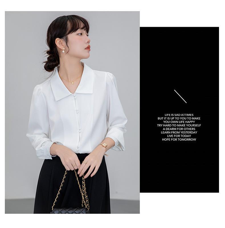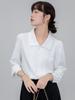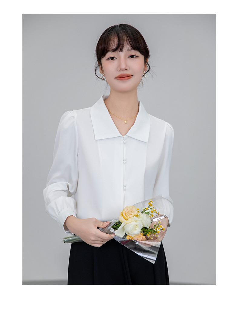 Camisa de satén elegante de estilo extranjero de Real Shot para mujer, nuevo diseño, estilo nicho, informal, holgada, combinable, de manga larga
