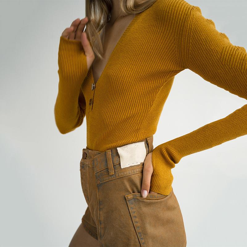 Mono básico de manga larga ajustado con botones y temperamento de color sólido de estilo informal europeo y americano de primavera 2025, venta al por mayor