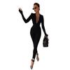 Estilo Americano Sexy Hueco Cuello en V Ajustado Moderno Tirantes Cruzados Manga Larga Color Sólido Simple Chica Caliente Ajustado Pantalones para Mujer