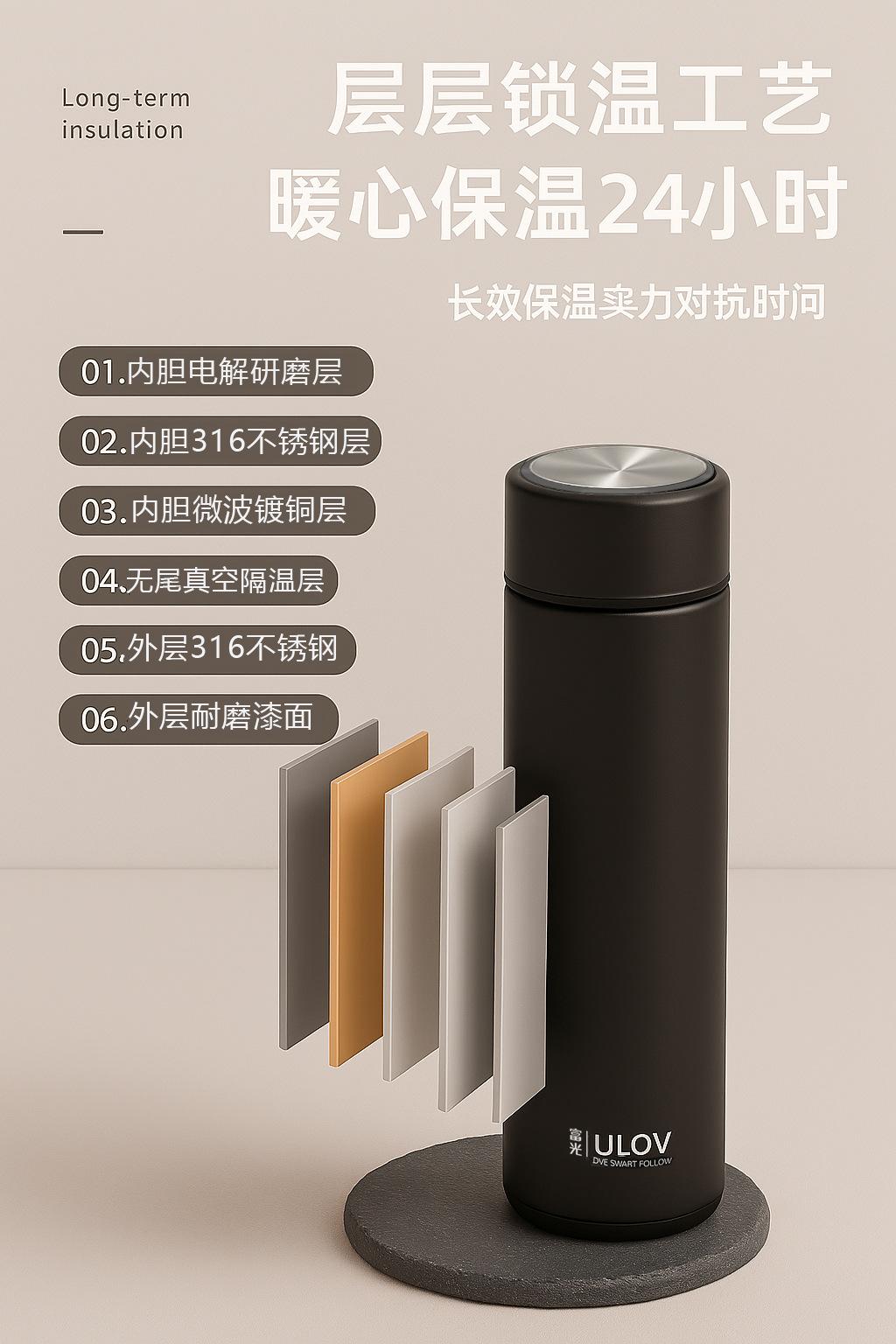 Routine, Household, Portable, Vacuum, Insulation, Customizable, Anti-fall, Temperature measurement, Tea water separation