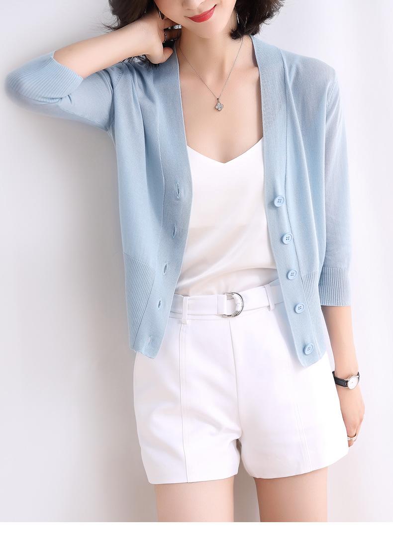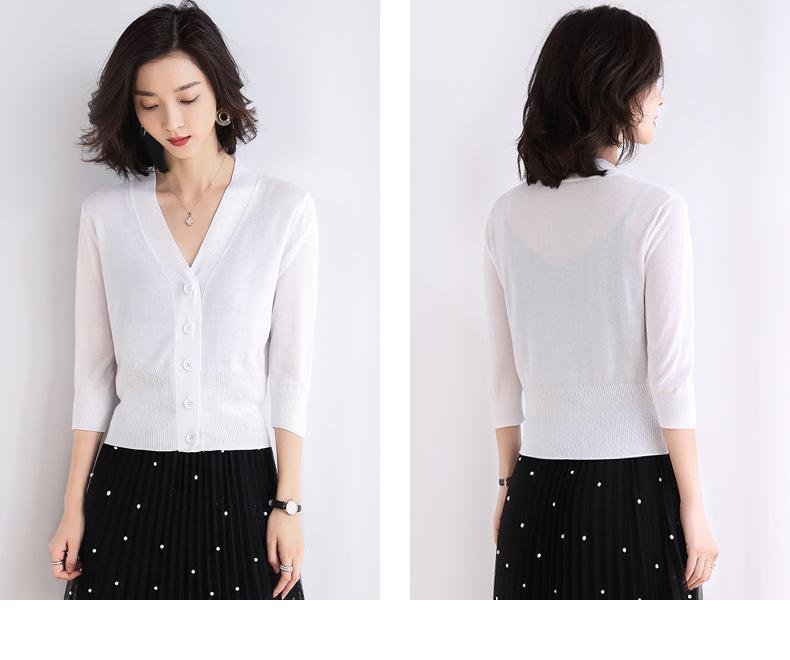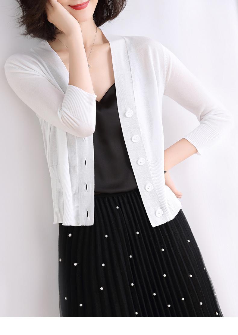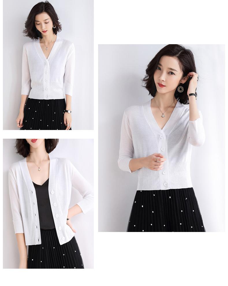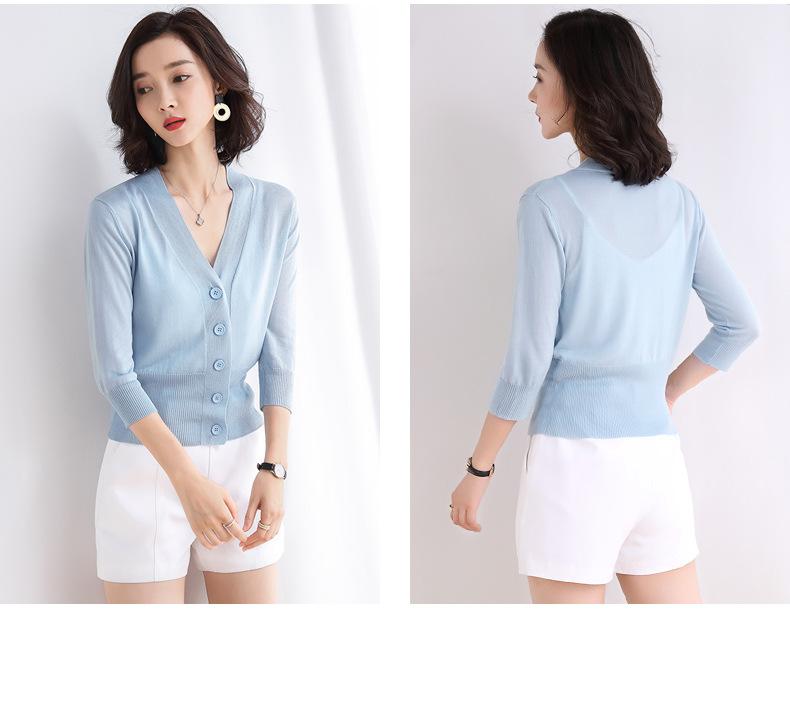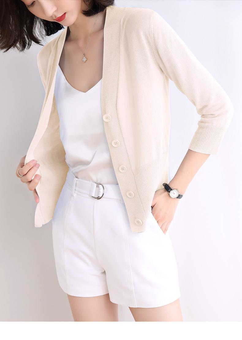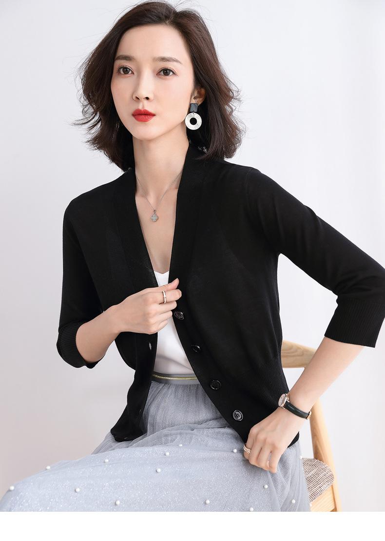 Cárdigan de Punto de Seda de Hielo para Mujer, Chal Exterior Delgado de Verano, Falda a Juego, Nuevo Cuello en V, Abrigo Corto Pequeño