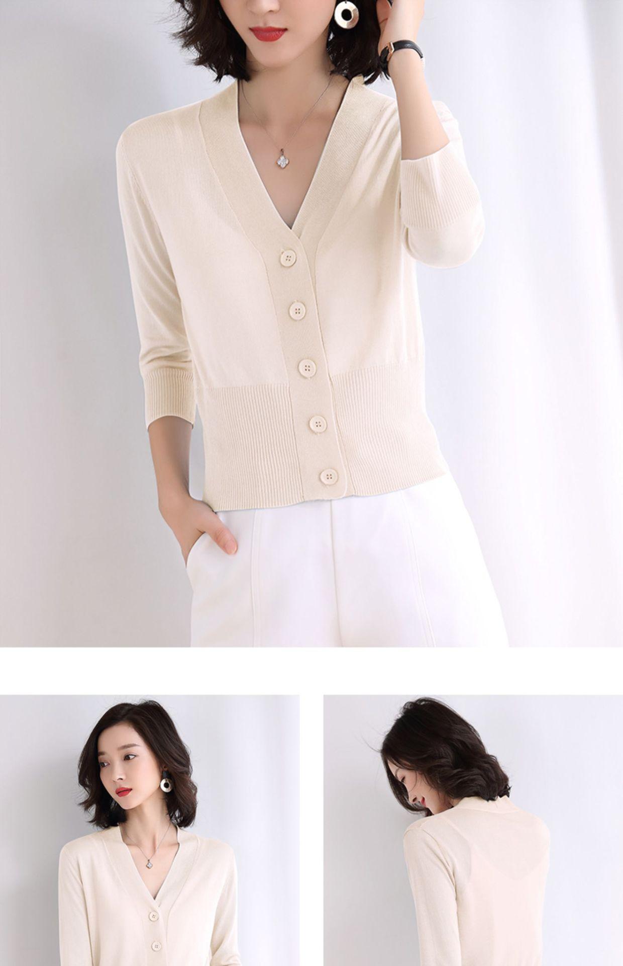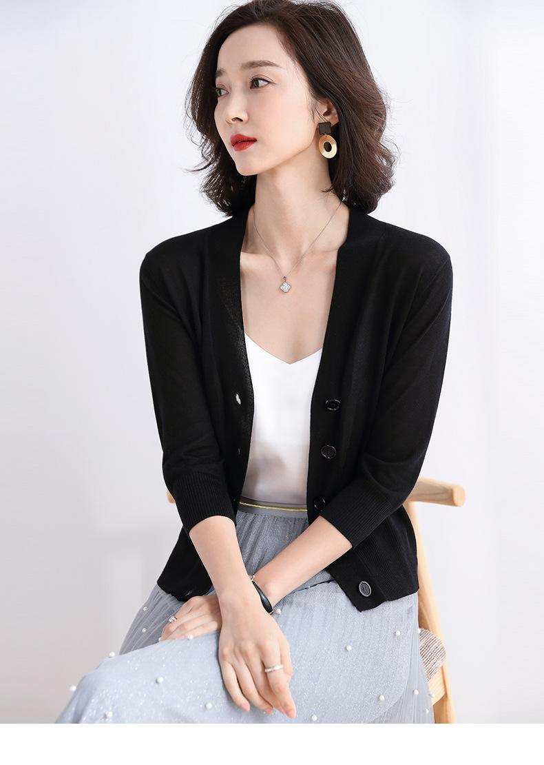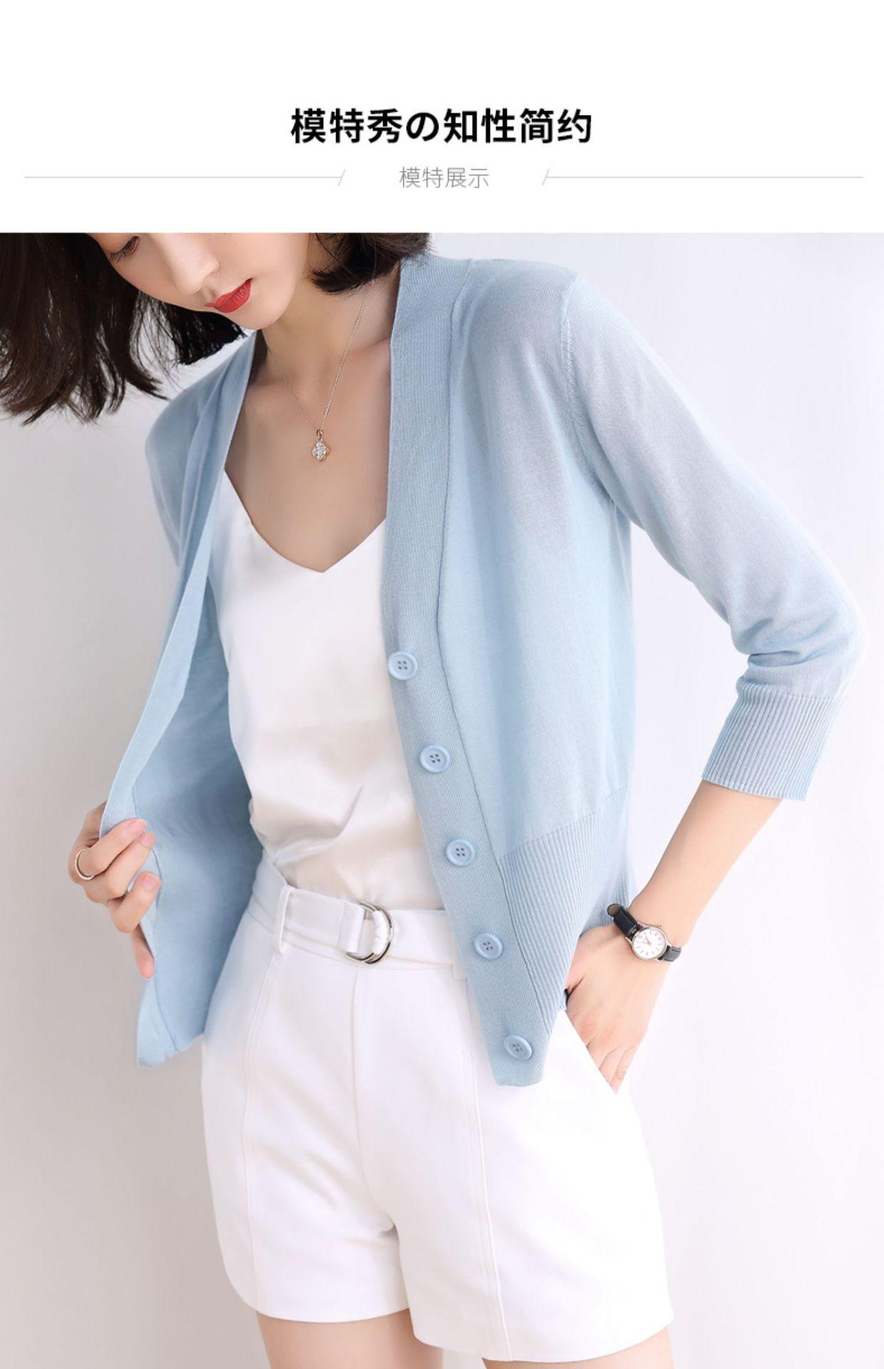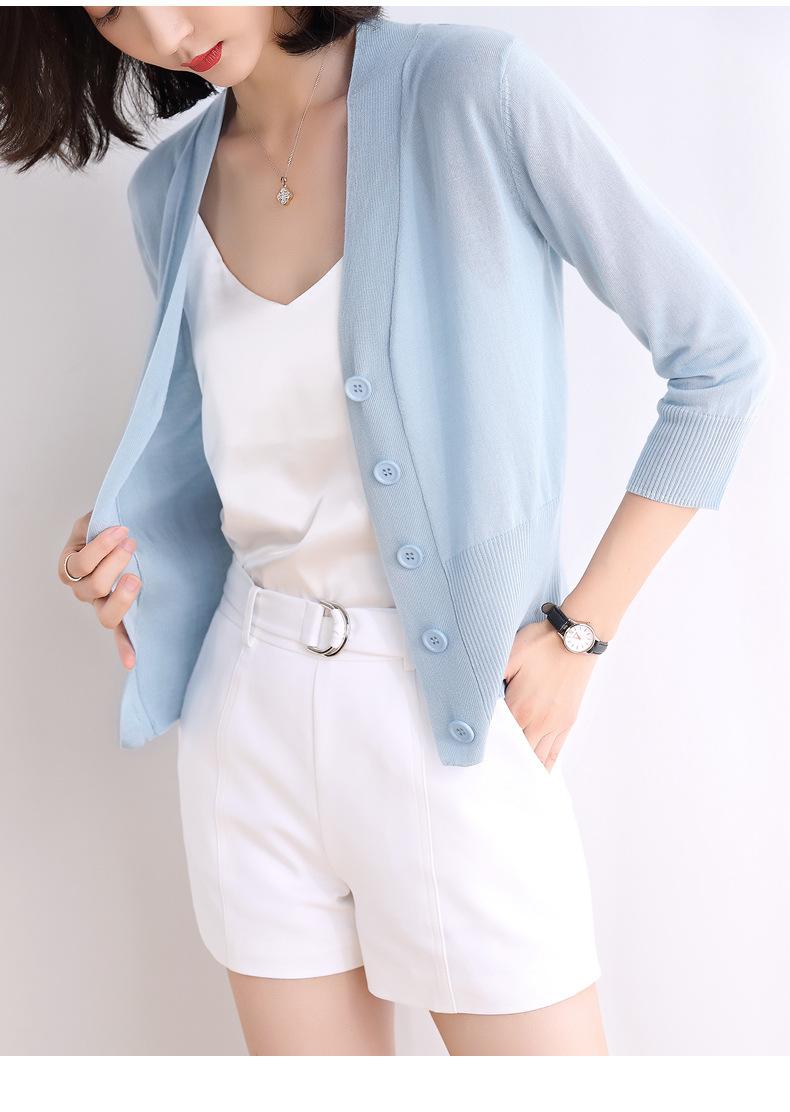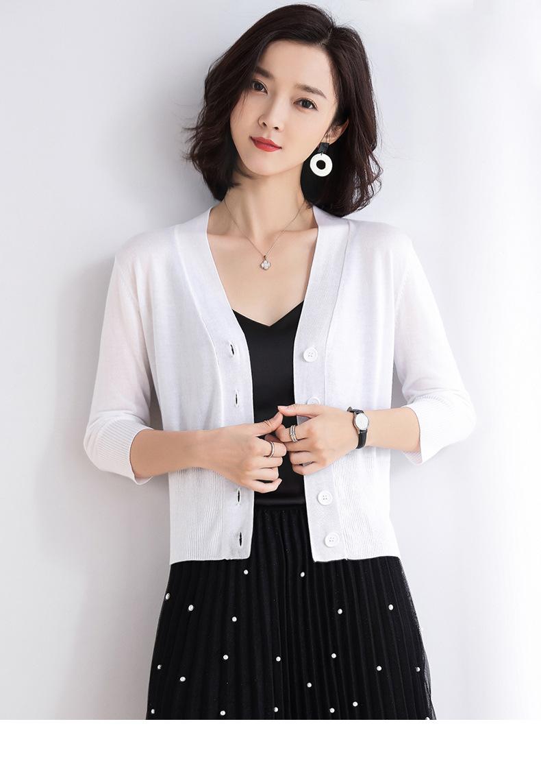 Cárdigan de Punto de Seda de Hielo para Mujer, Chal Exterior Delgado de Verano, Falda a Juego, Nuevo Cuello en V, Abrigo Corto Pequeño