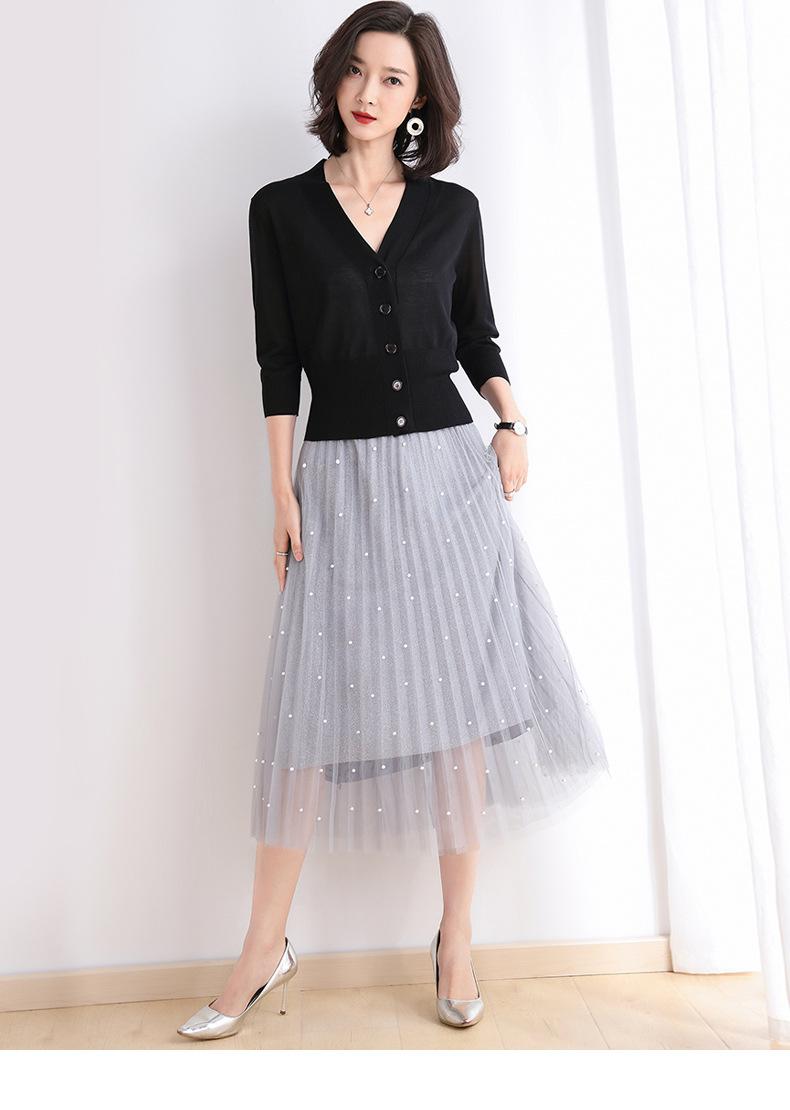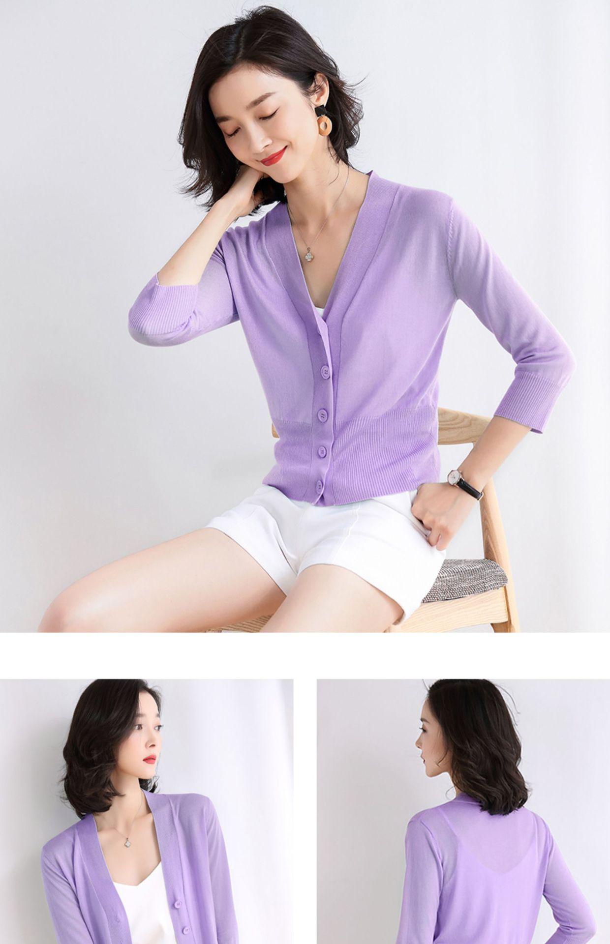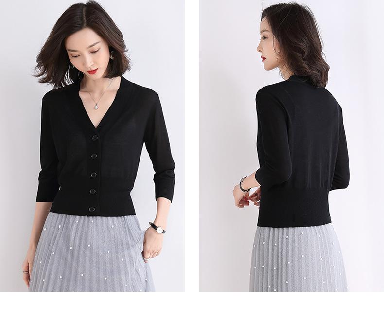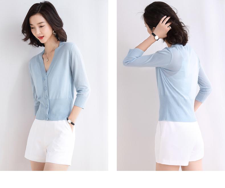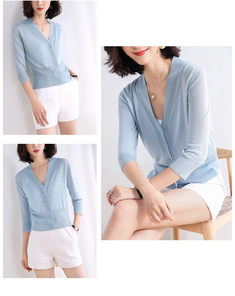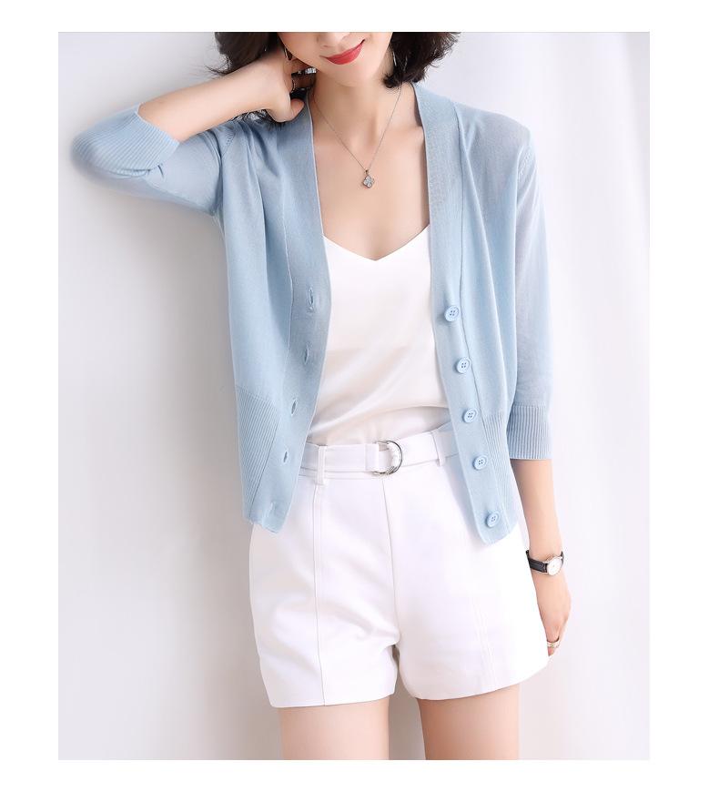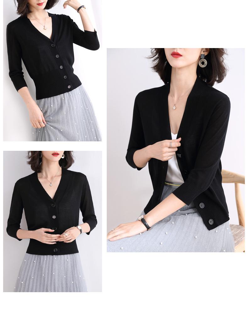 Cárdigan de Punto de Seda de Hielo para Mujer, Chal Exterior Delgado de Verano, Falda a Juego, Nuevo Cuello en V, Abrigo Corto Pequeño
