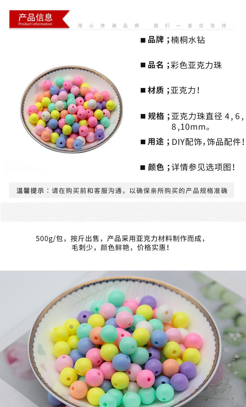 Cuentas acrílicas joyería hecha a mano cuentas de color sólido cuentas redondas agujero recto caramelo diy cuentas de plástico accesorios de joyería