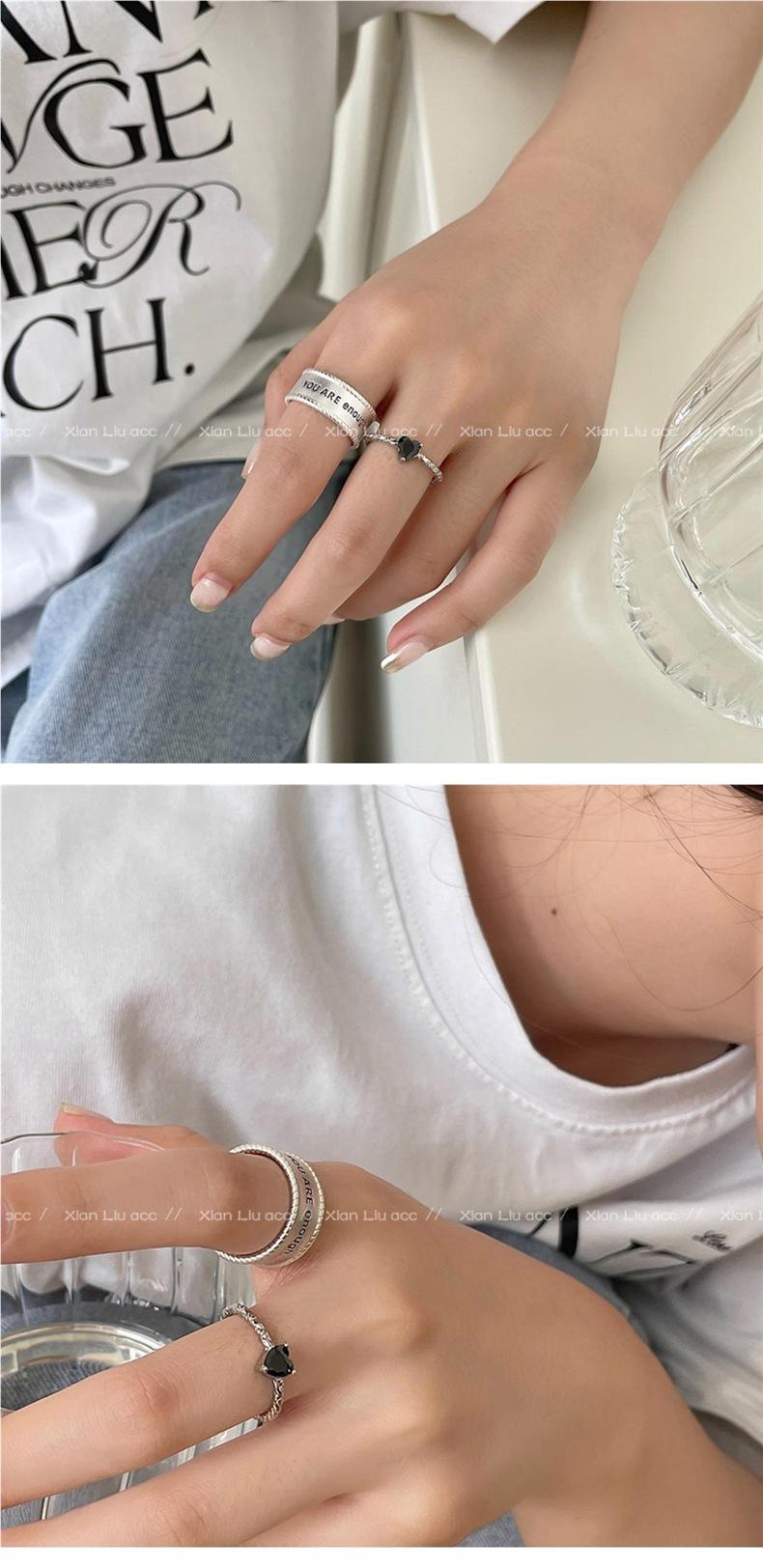 Anillos de Corazón Minimalistas en Capas para Mujer Estilo Coreano Elegante Letra Corazón de Durazno Anillo Abierto Ins Mejor Amigo Nicho Anillo para Dedo Índice