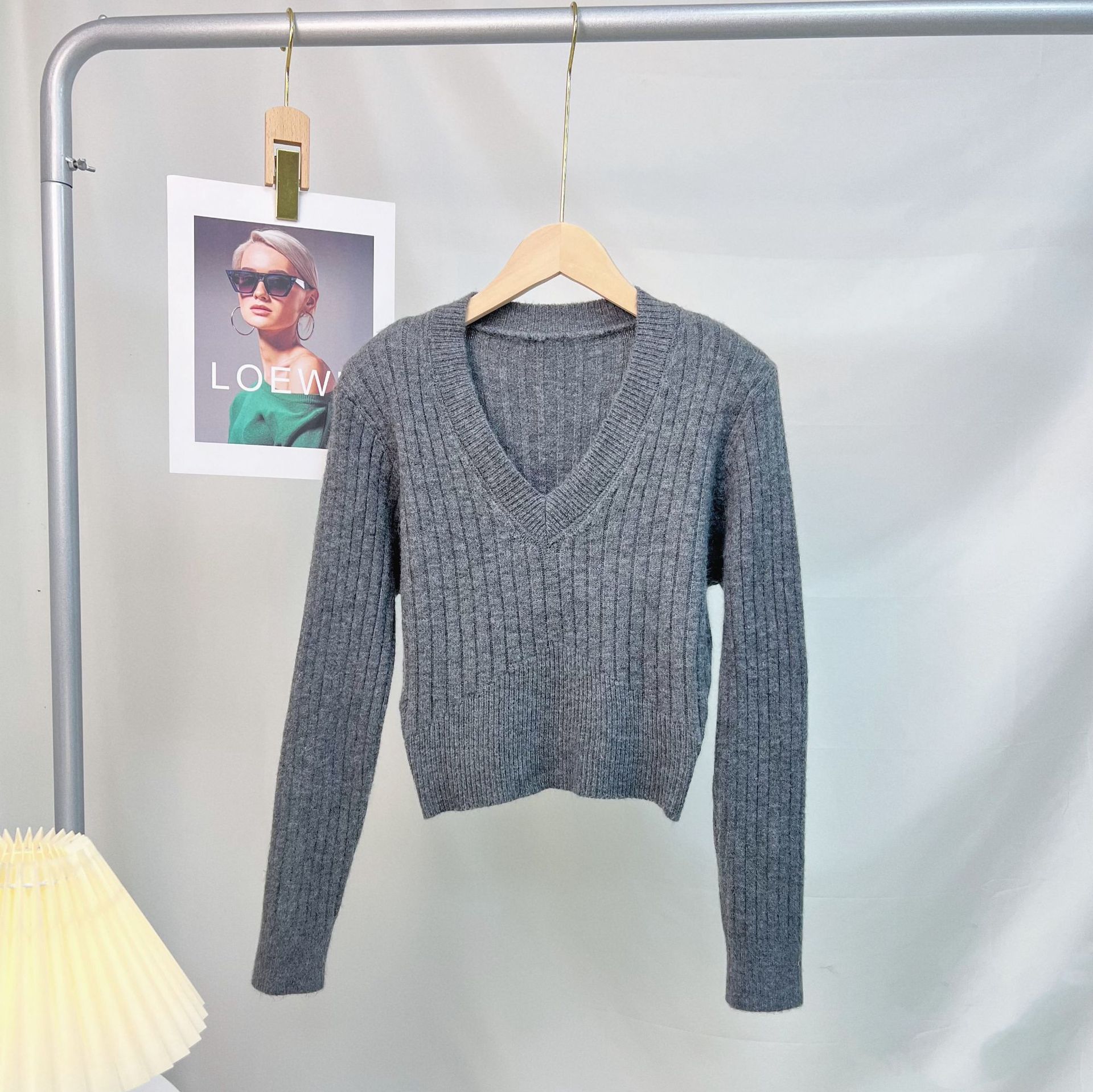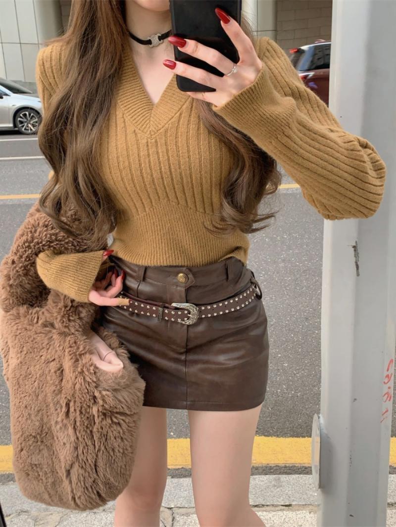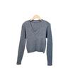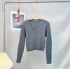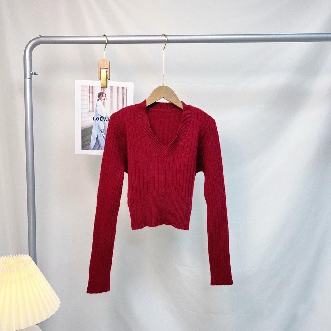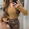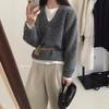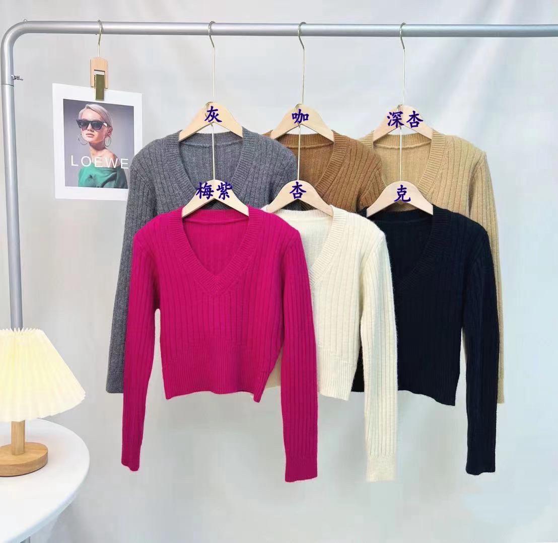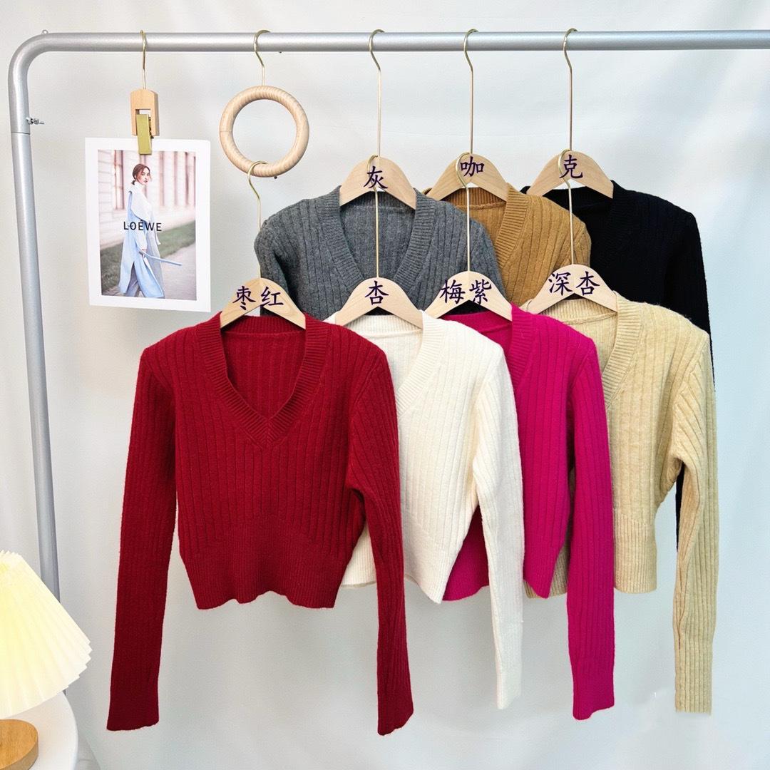 Suéter de mujer estilo coreano 2024 otoño e invierno Nuevo cuello en V color sólido suéter corto versátil casual retro punto manga larga
