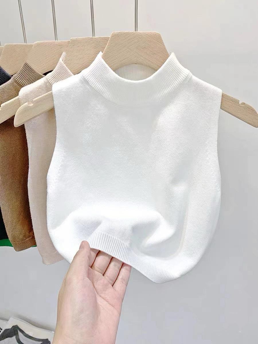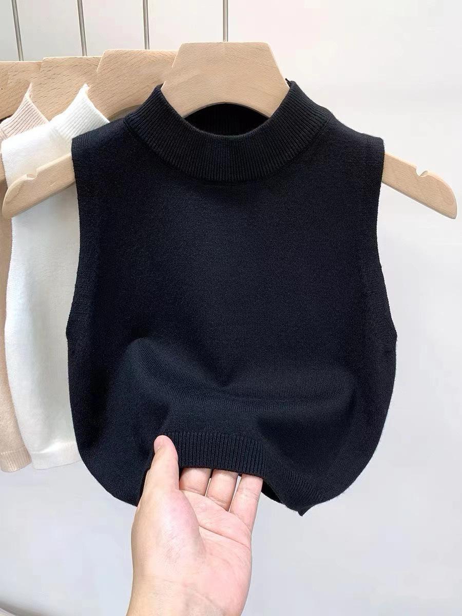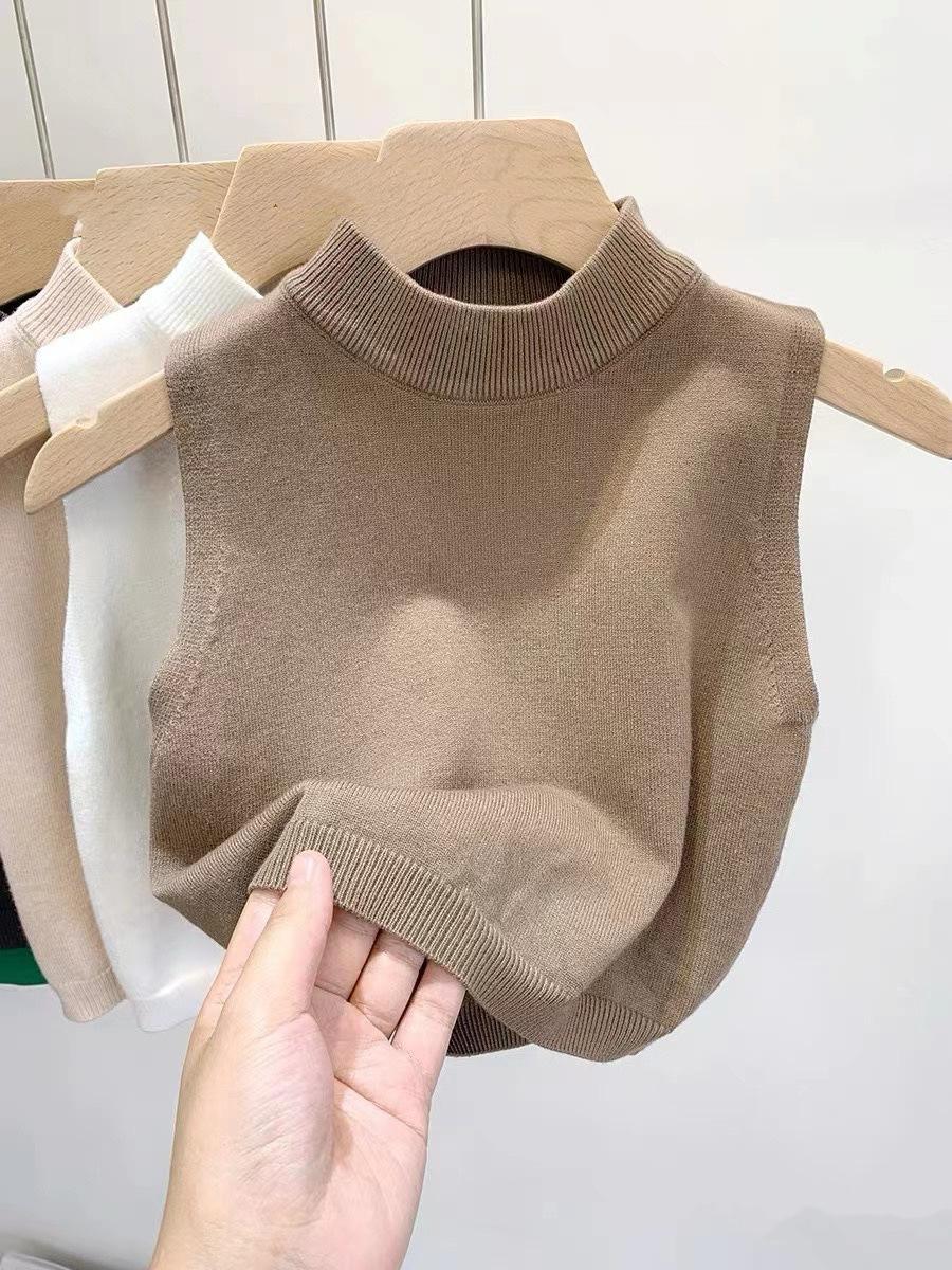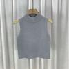 Chaleco suéter de punto elegante de estilo francés para combinar con todo, camisola, camisa básica, cuello alto corto, para usar en las cuatro estaciones, sin mangas, prenda exterior
