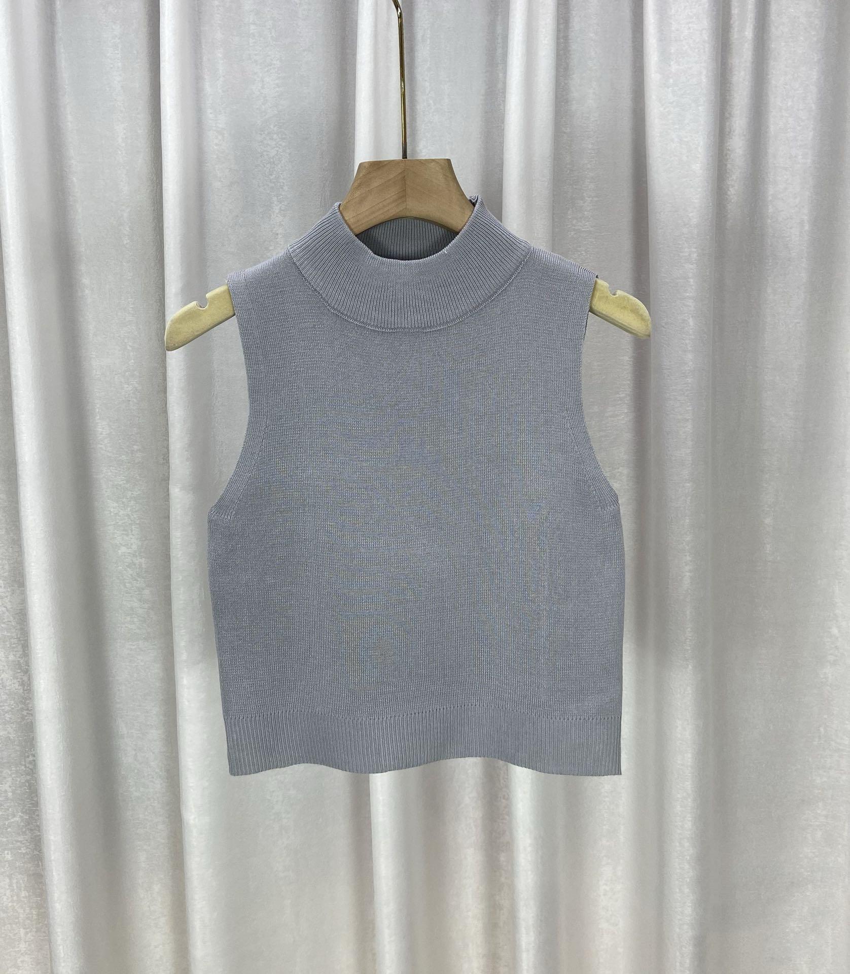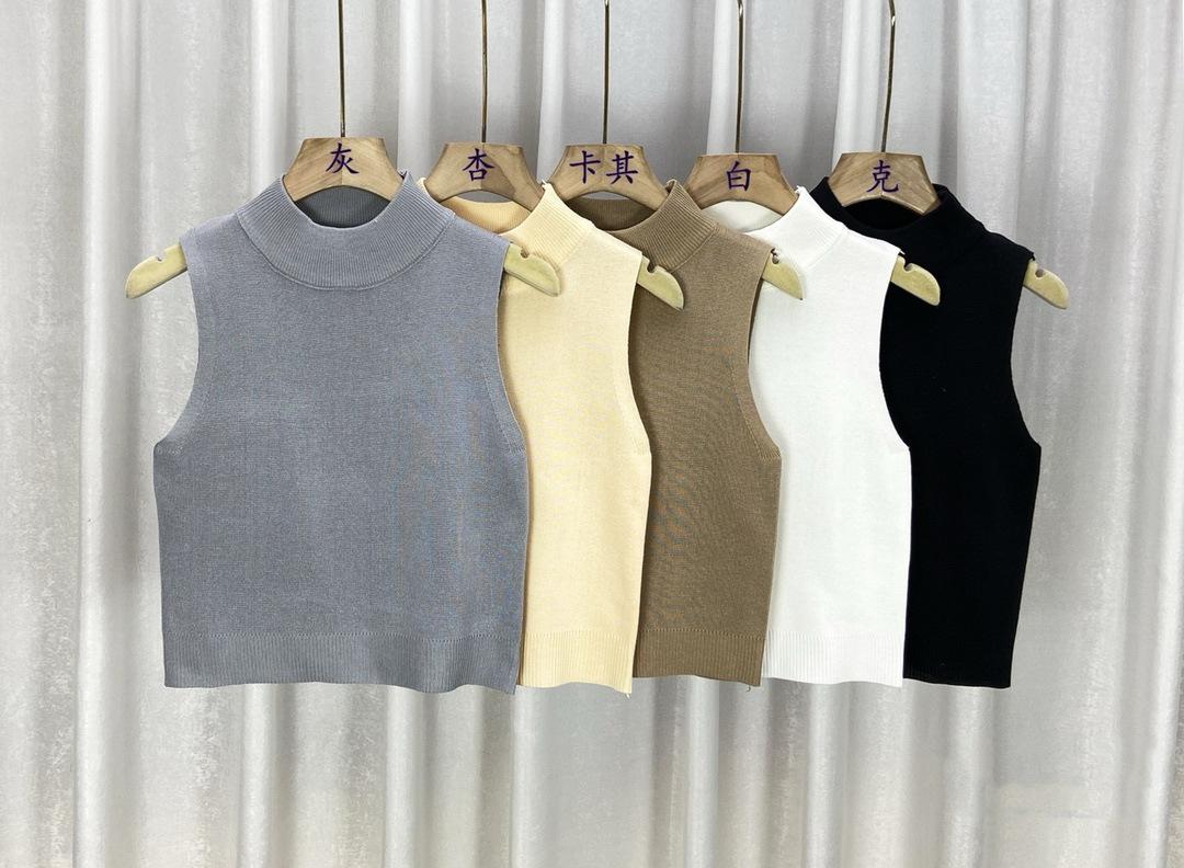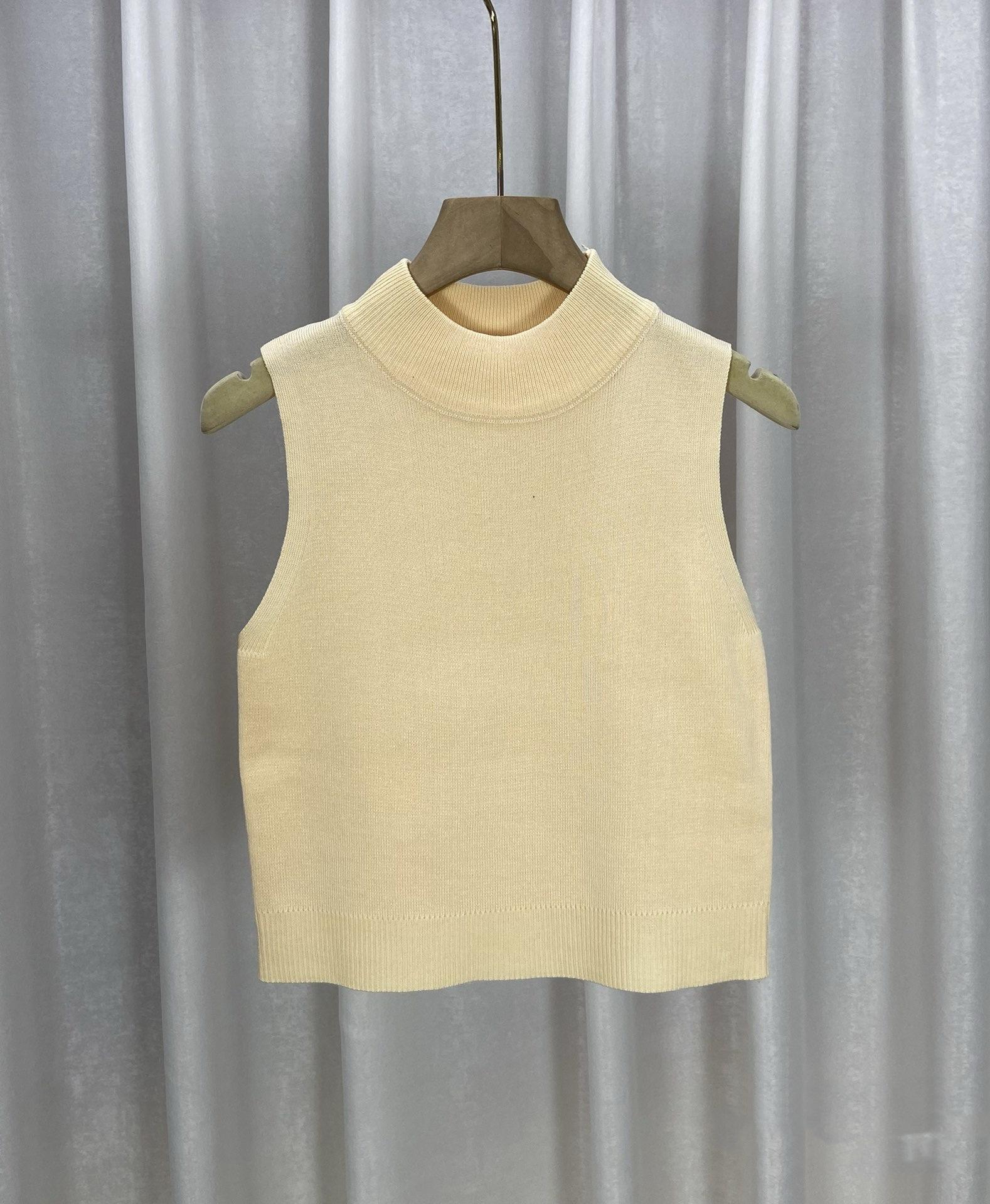 Chaleco suéter de punto elegante de estilo francés para combinar con todo, camisola, camisa básica, cuello alto corto, para usar en las cuatro estaciones, sin mangas, prenda exterior