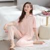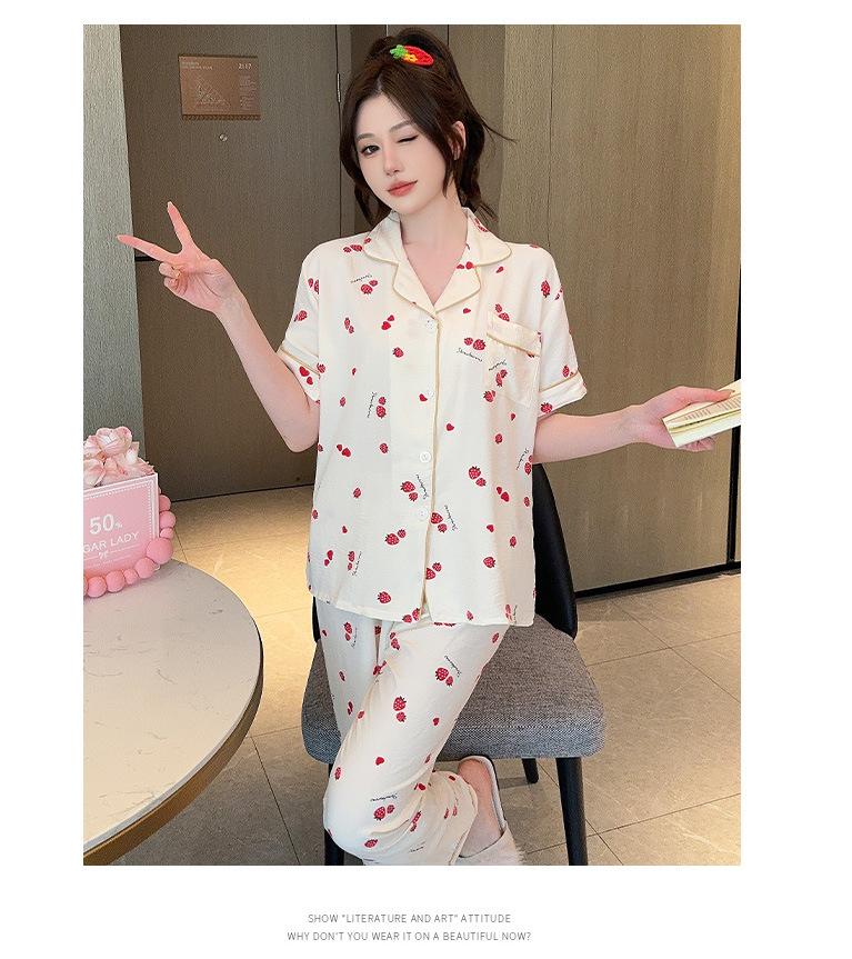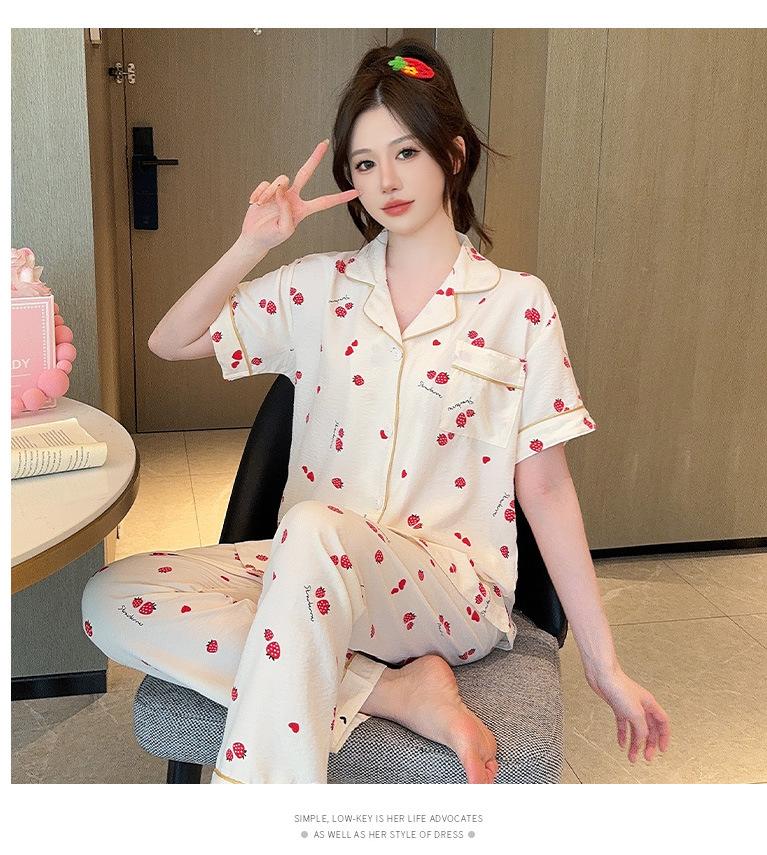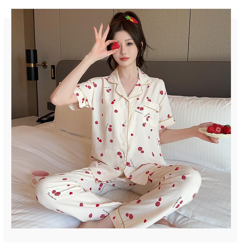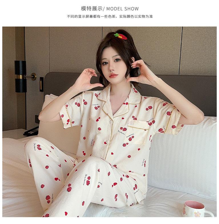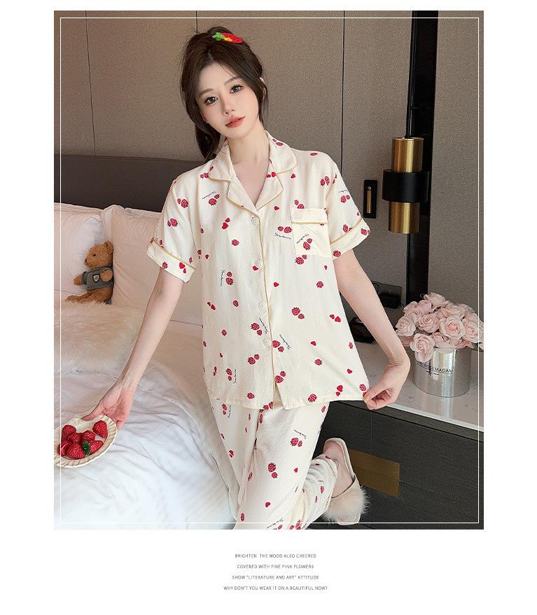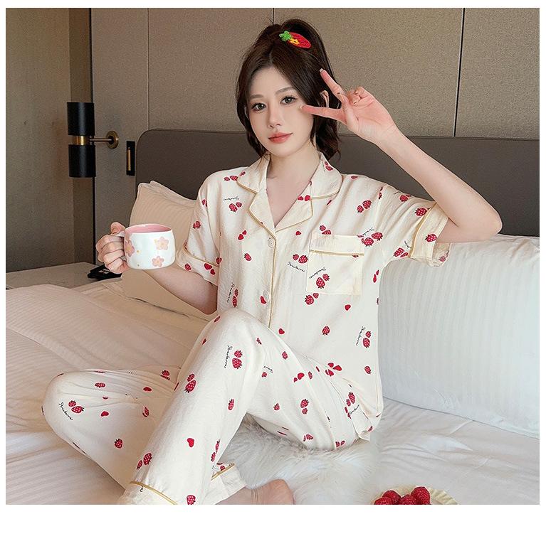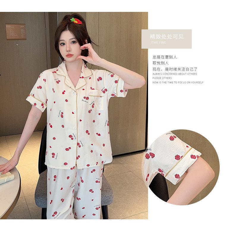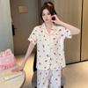 2024 Verano nuevos pijamas de mujer estilo princesa dulce cárdigan de manga corta pantalones de dos piezas ropa para el hogar se puede usar afuera