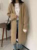 Abrigo suéter de lana gruesa de longitud media estilo coreano de otoño e invierno para mujer, cárdigan de punto holgado de manga larga, grueso