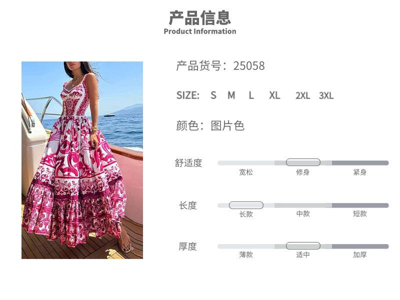 Nuevo vestido elegante, ligero y lujoso de estilo bohemio para mujer, de estilo europeo y americano, con estampado de longitud media.