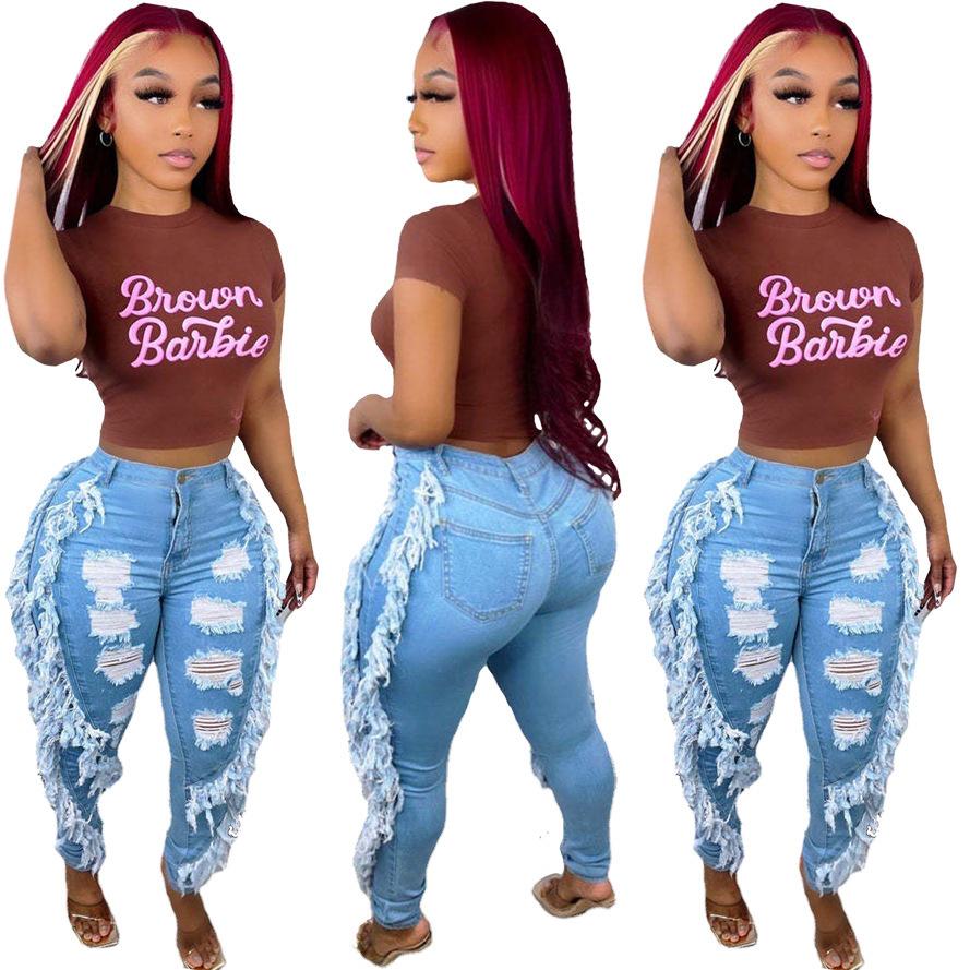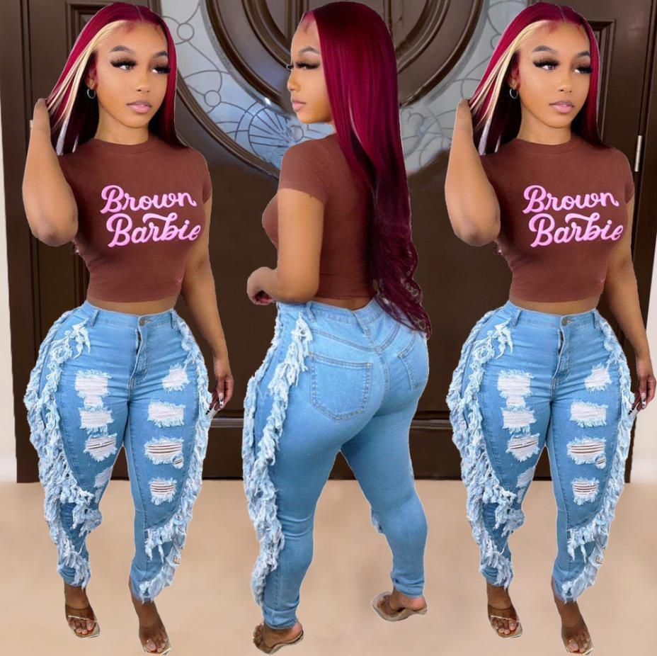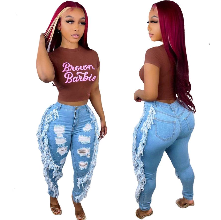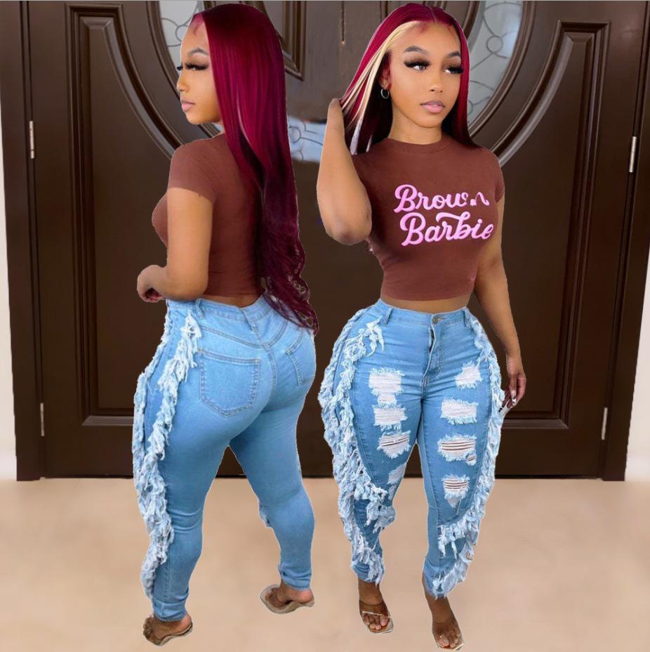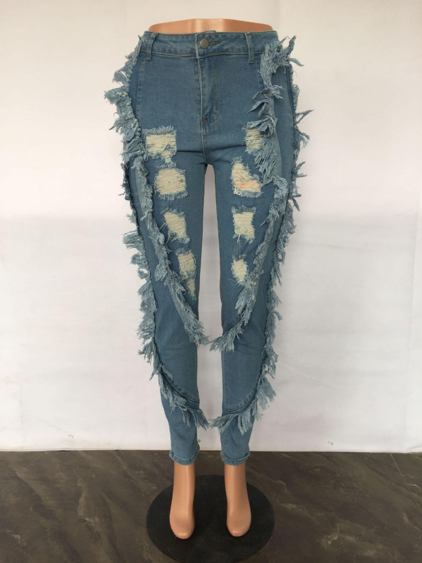 Jeans ajustados sexys con borlas y rotos de Amazon, ropa europea y americana nueva, disponible transfronterizamente.