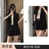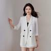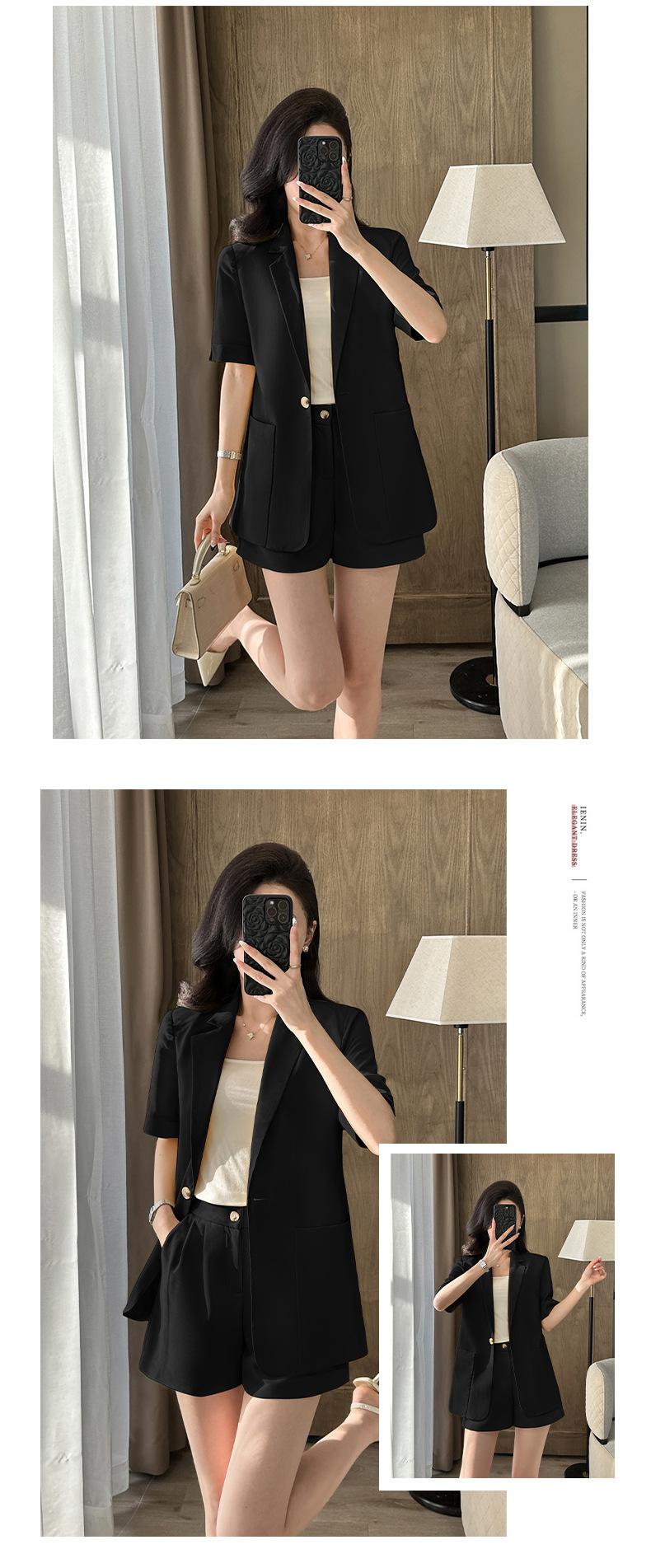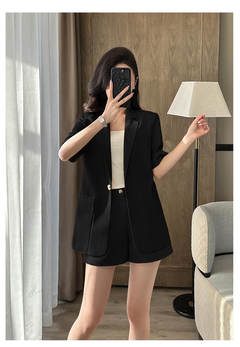 Chaqueta de Traje Negra para Mujer Verano Delgada 2025 Nueva Ropa de Negocios Moda Suelta Elegante Manga Corta Traje