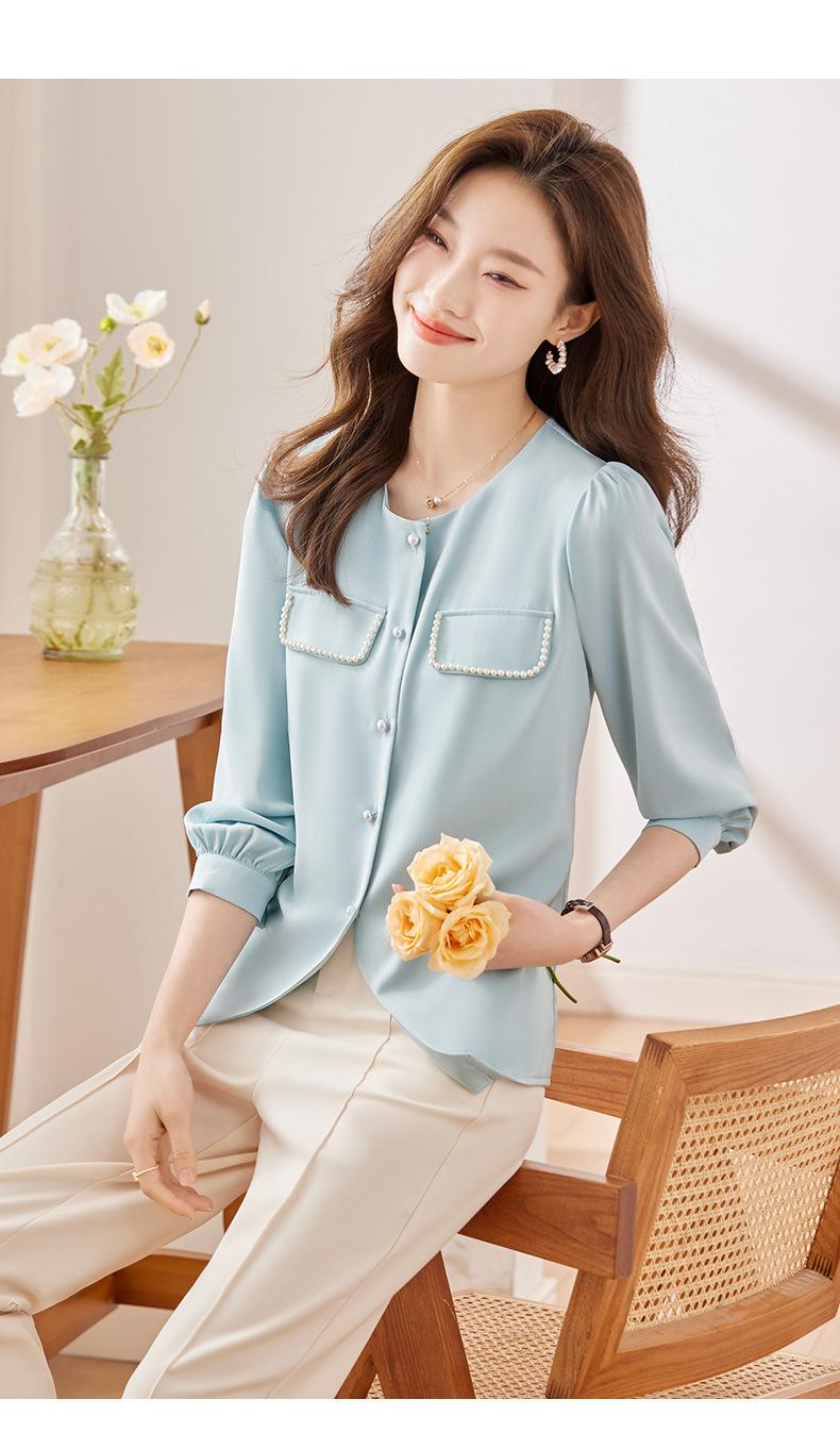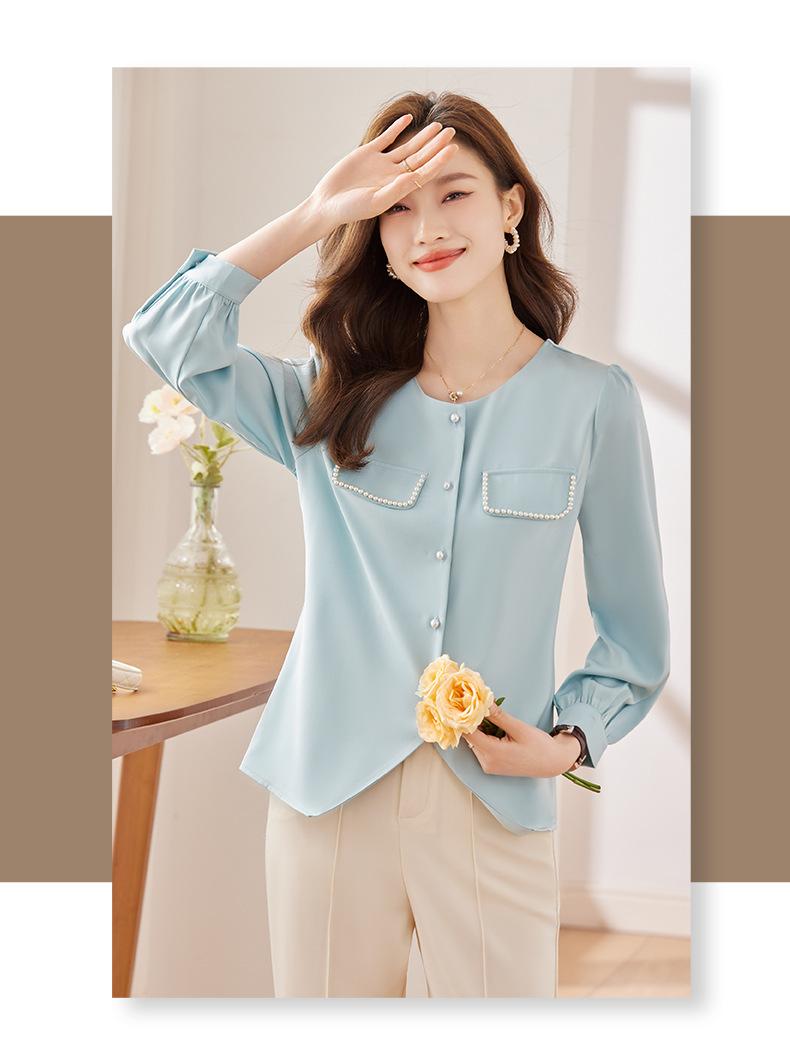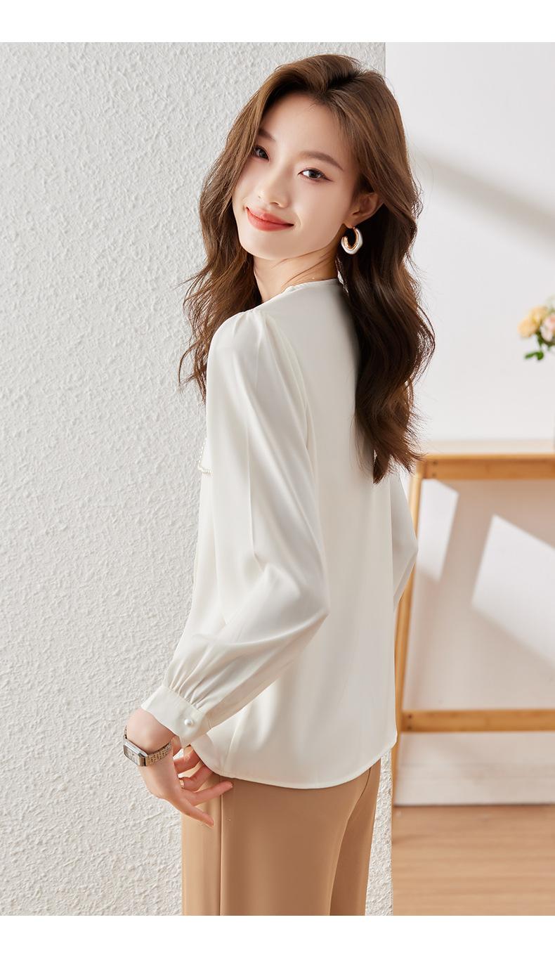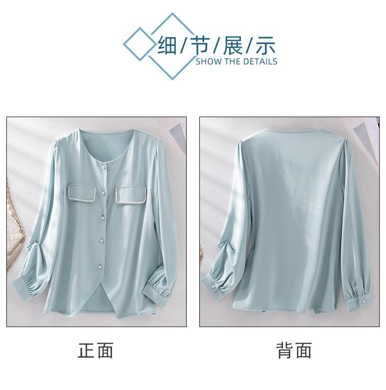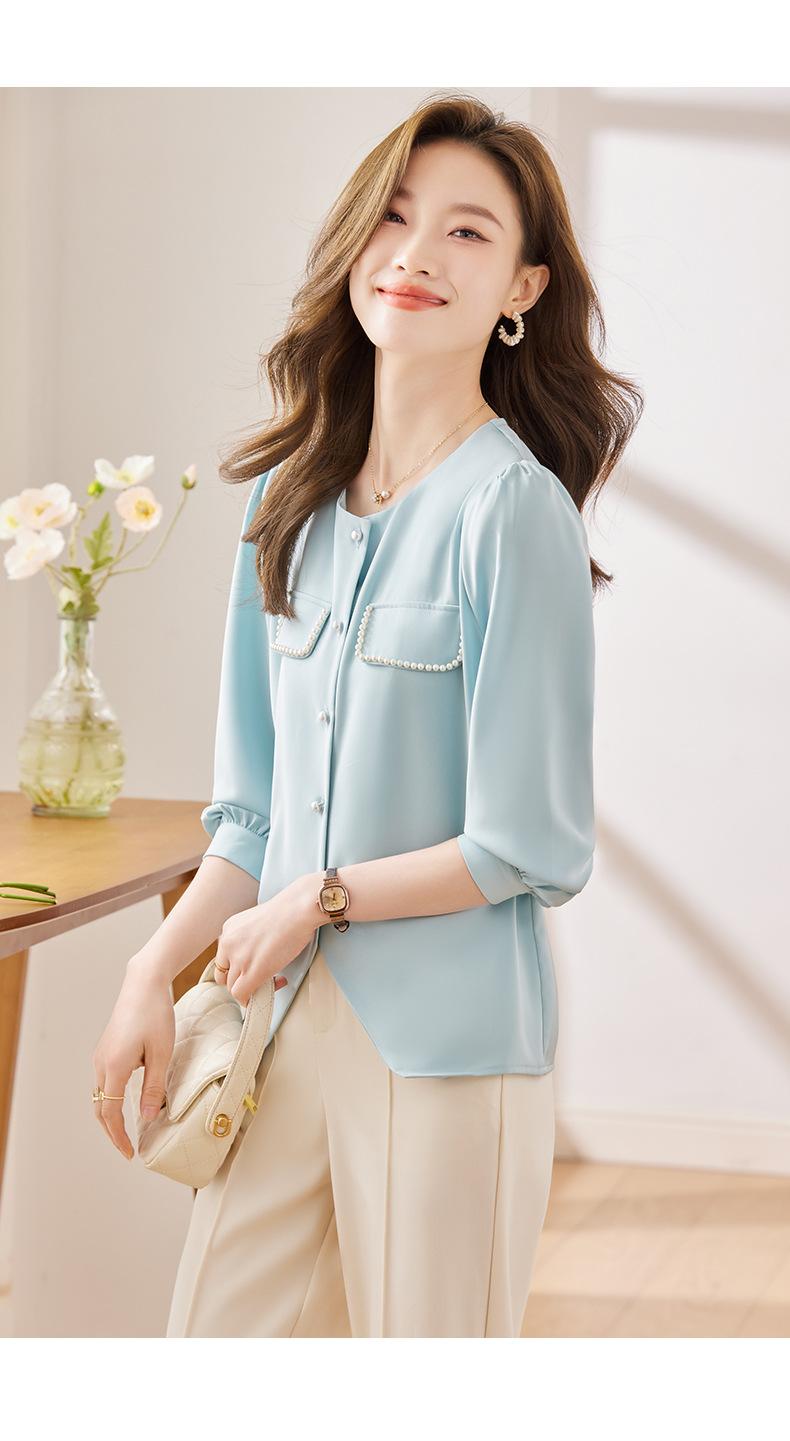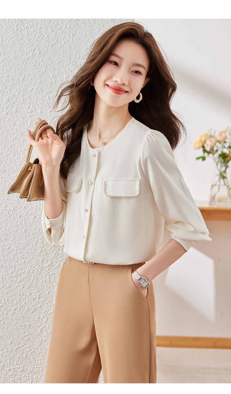 Camisa de Mujer Primavera y Otoño Nueva Estilo Celebridad Madura Ligera Elegante Camisa con Cuentas a la Moda Versátil Manga Larga Camisa Pequeña Elegante Top