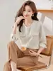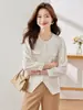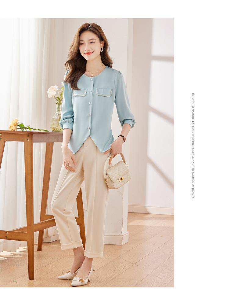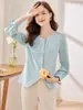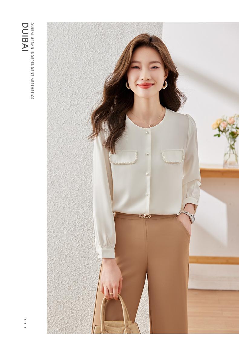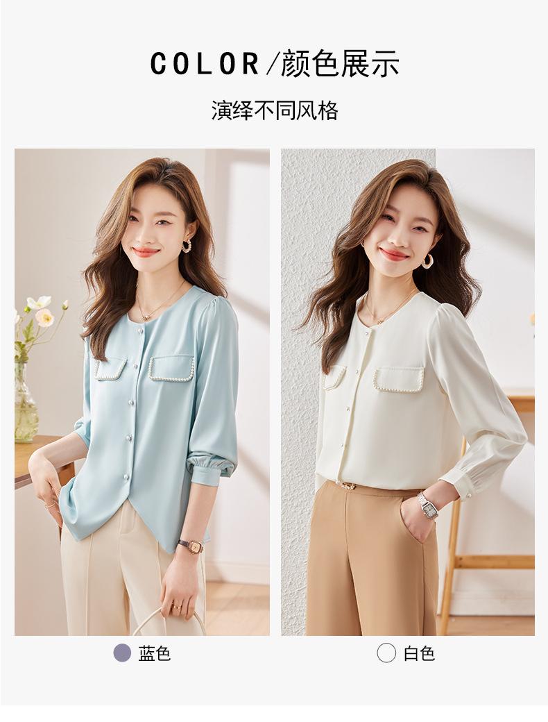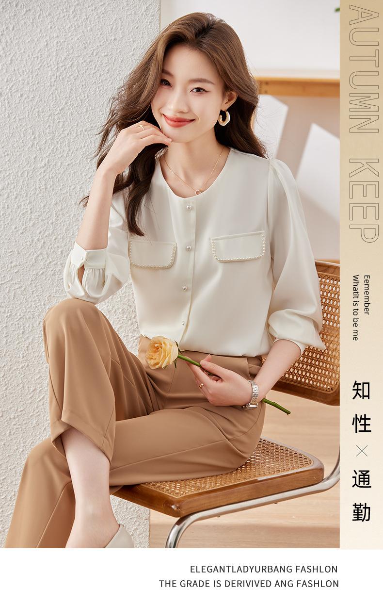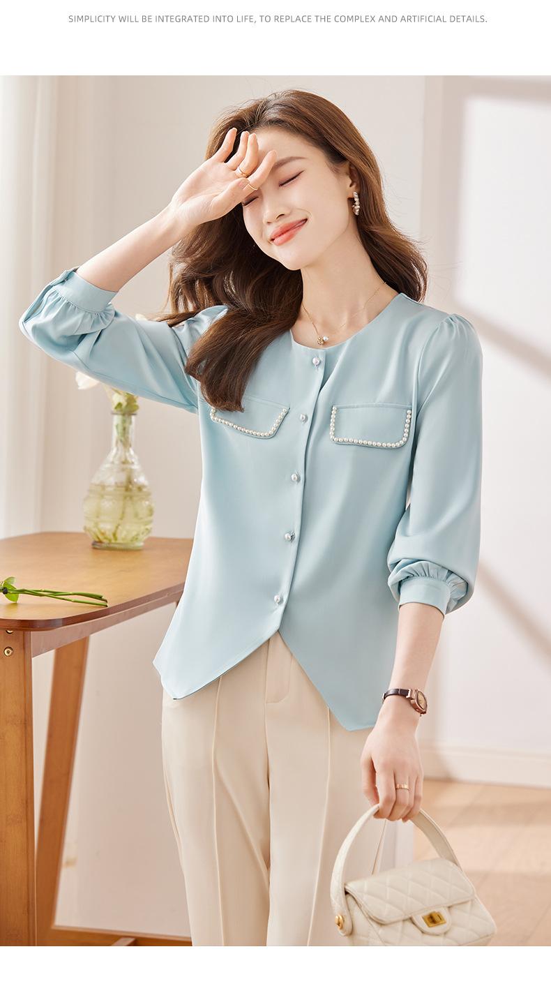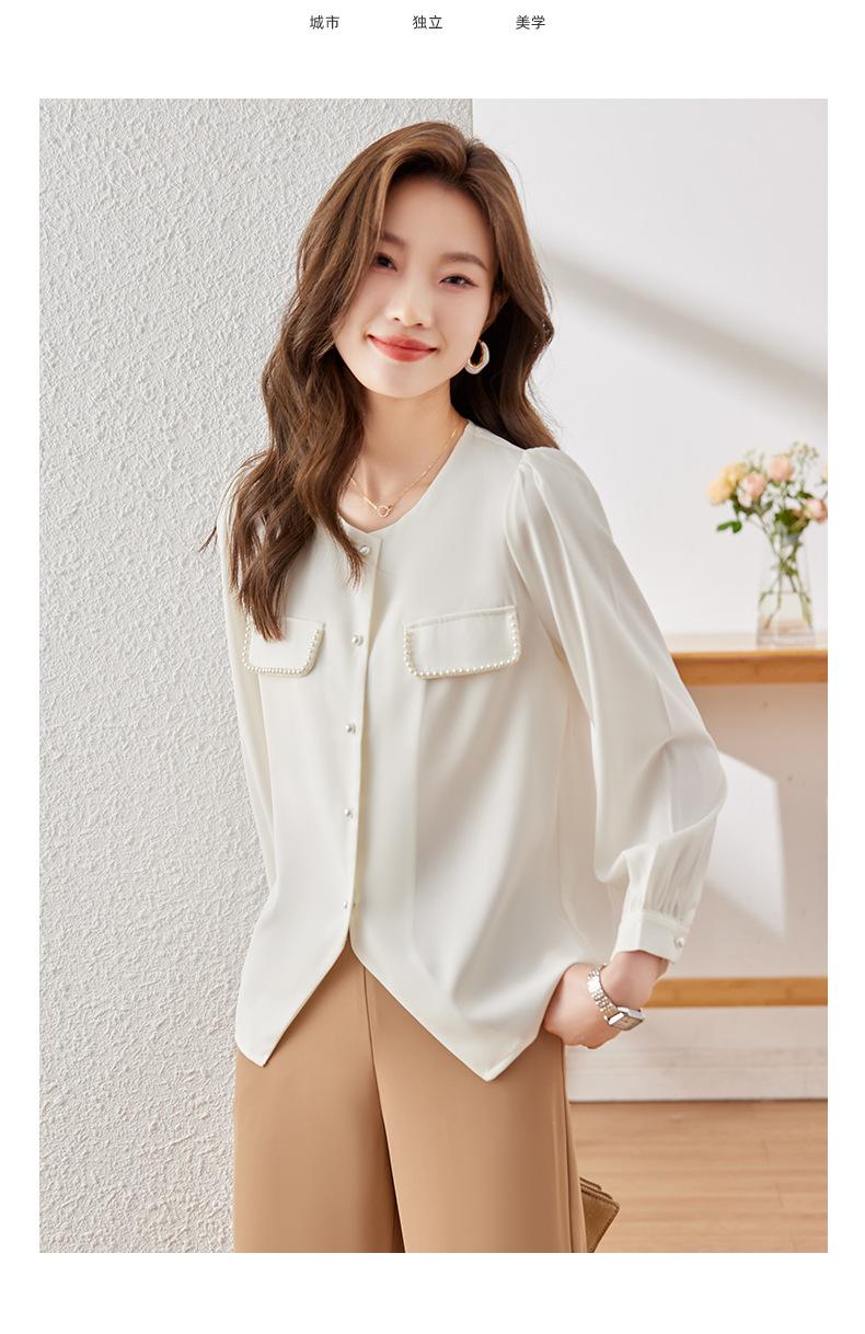 Camisa de Mujer Primavera y Otoño Nueva Estilo Celebridad Madura Ligera Elegante Camisa con Cuentas a la Moda Versátil Manga Larga Camisa Pequeña Elegante Top
