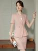 Traje pequeño de verano rosa de manga corta para mujer, pantalón, falda, verano 25 años nuevo, moda profesional, traje de dos piezas