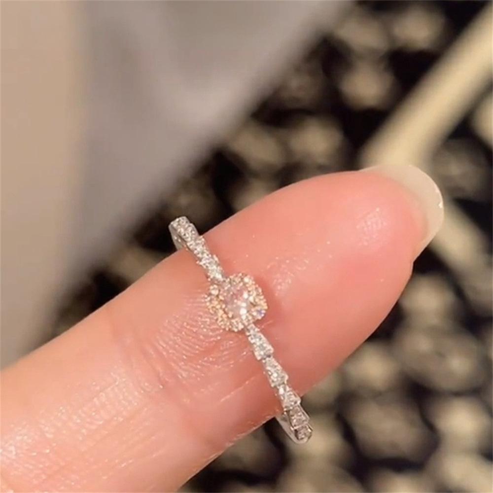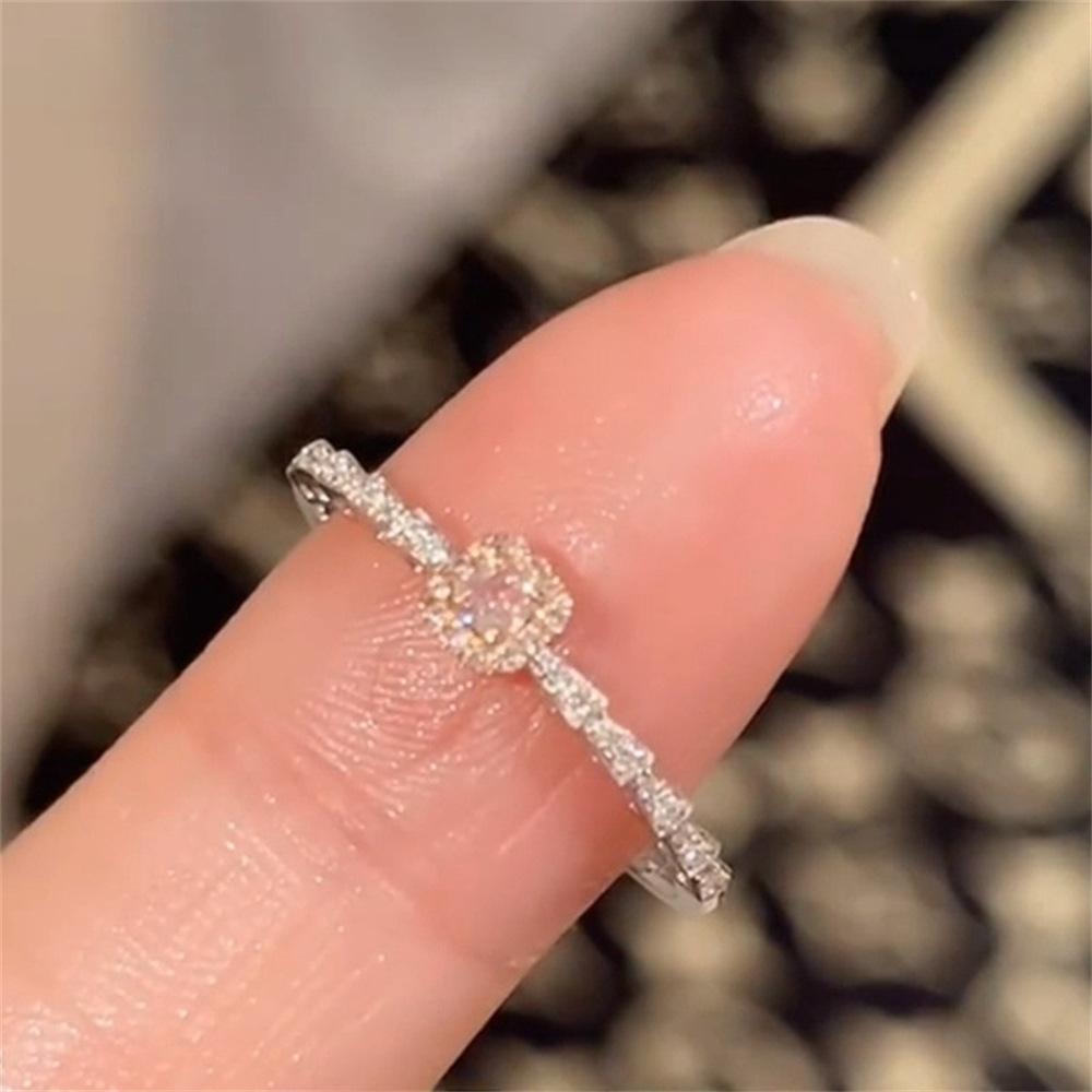 Nuevo Flash Anillo Pequeño de Diamante Rosa Zircón para Mujer Diseño Nicho Anillo de Dedo Elegante Moda Personalidad Alto Sentido Anillo de Cola