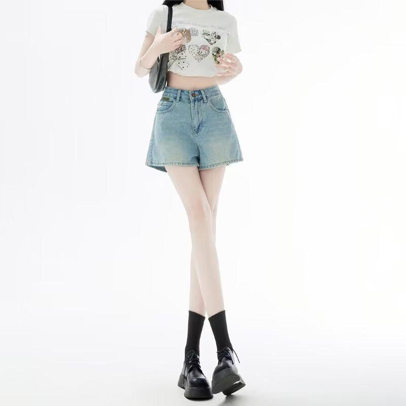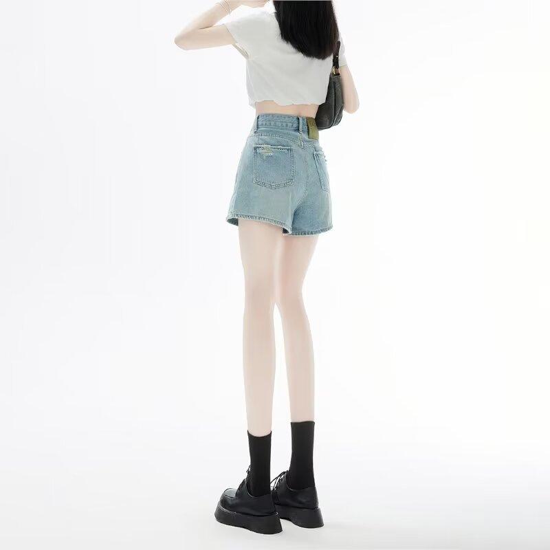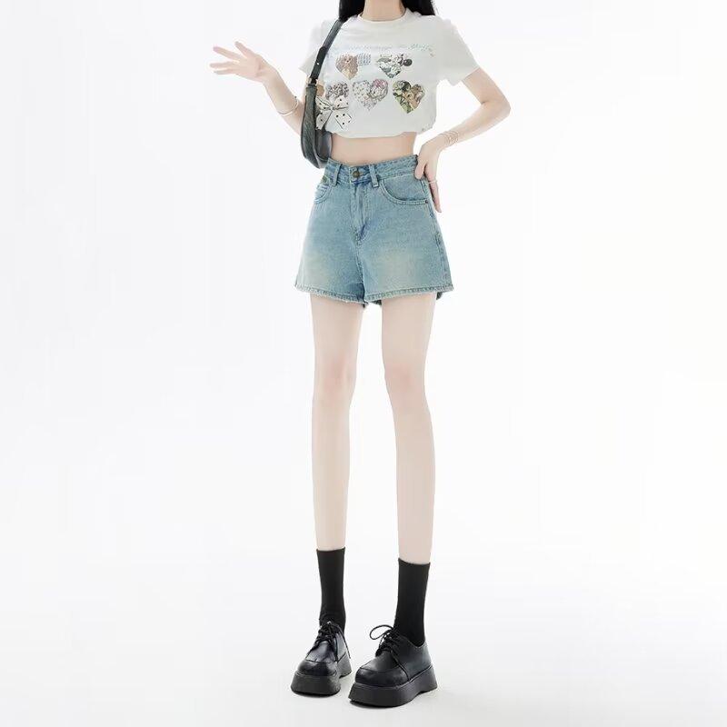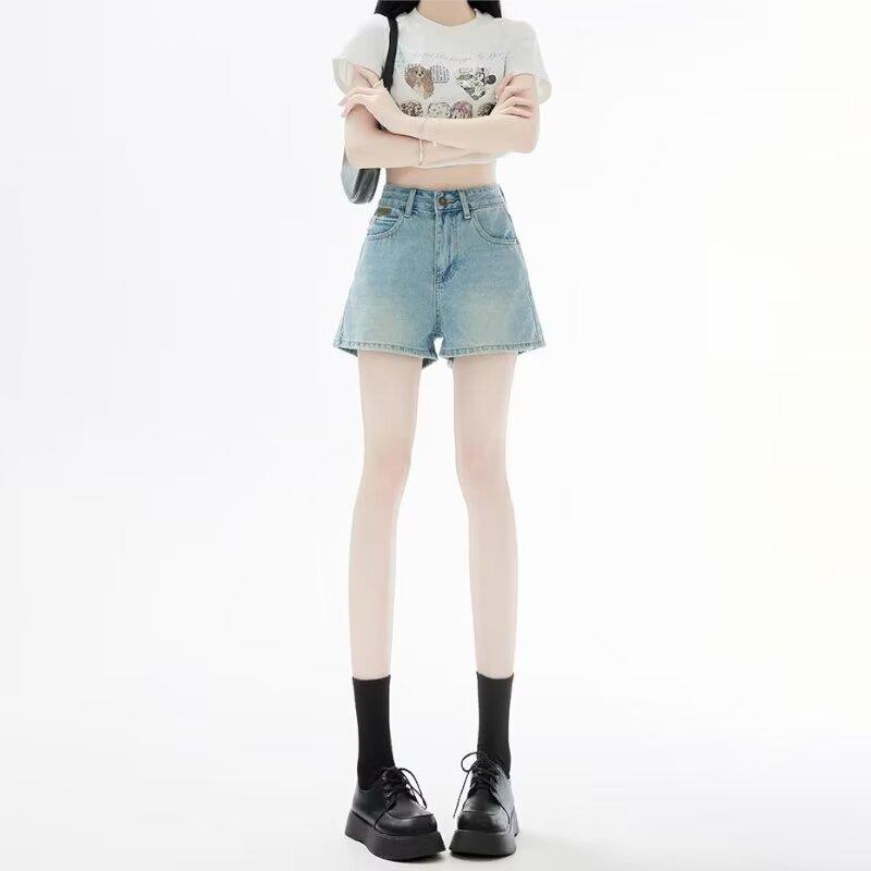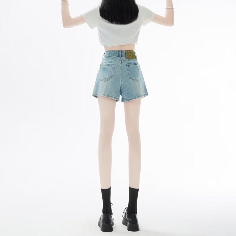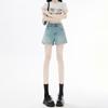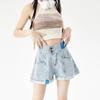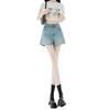 Shorts de mezclilla acampanados azul claro para mujer 2024 verano nuevo cintura alta slim más fáciles de combinar hot girl pierna ancha pantalones cortos