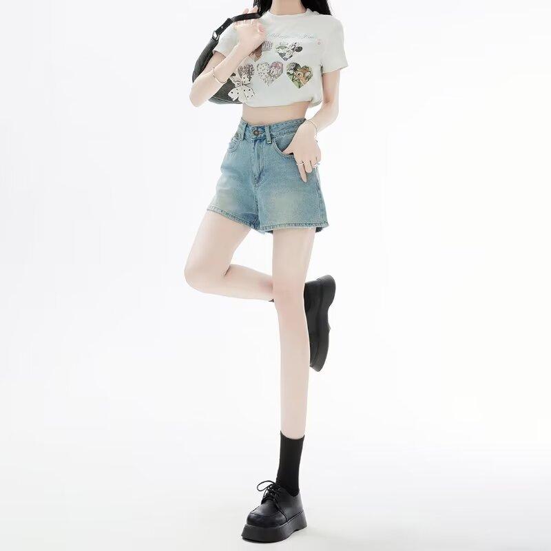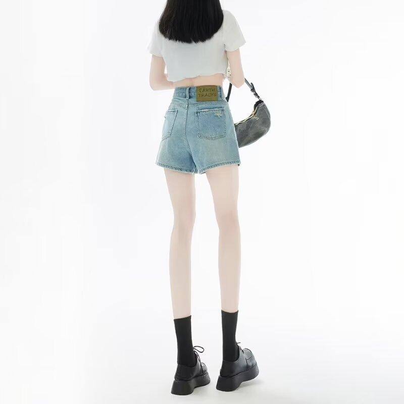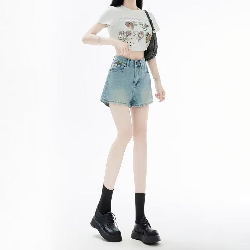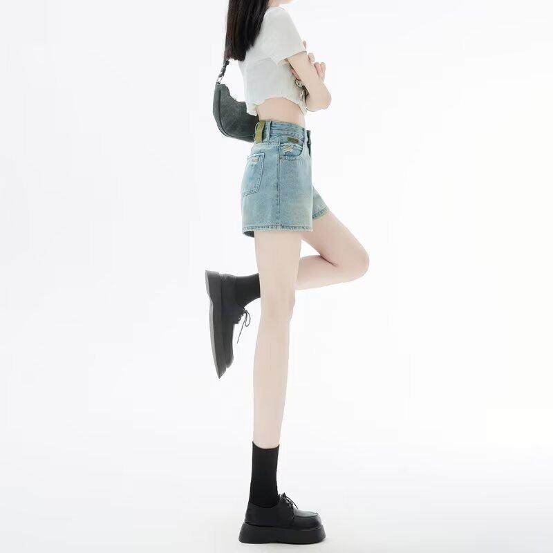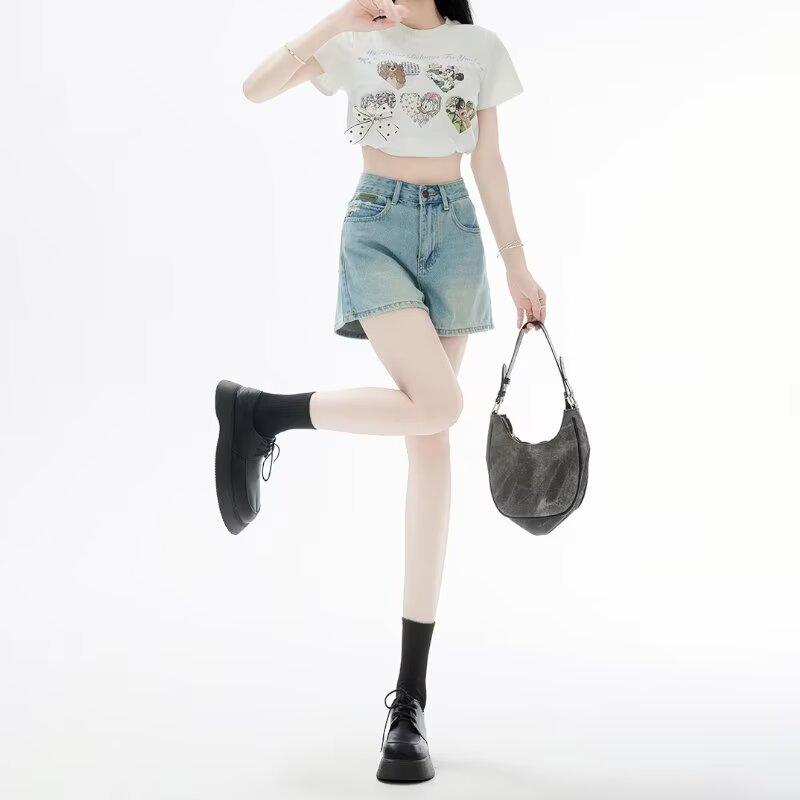 Shorts de mezclilla acampanados azul claro para mujer 2024 verano nuevo cintura alta slim más fáciles de combinar hot girl pierna ancha pantalones cortos